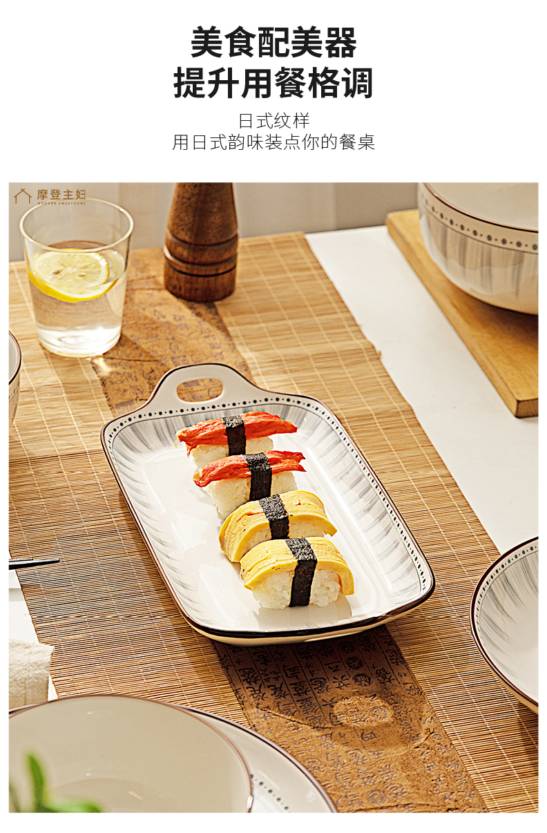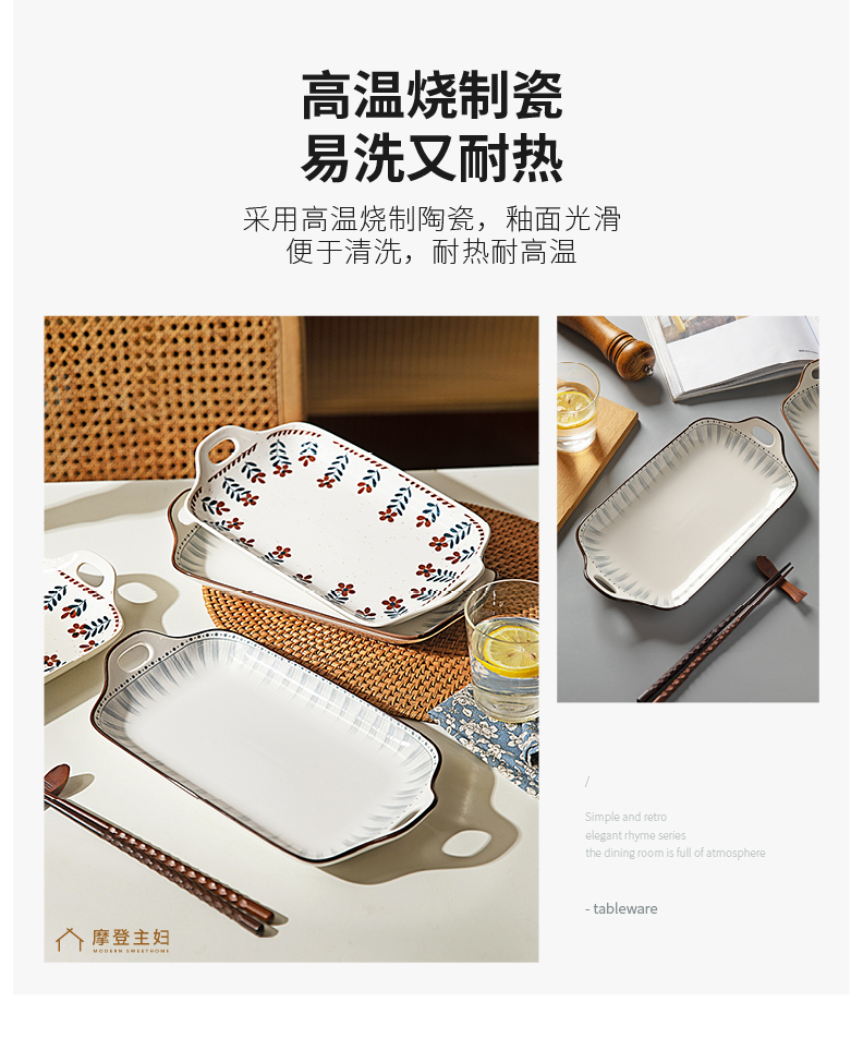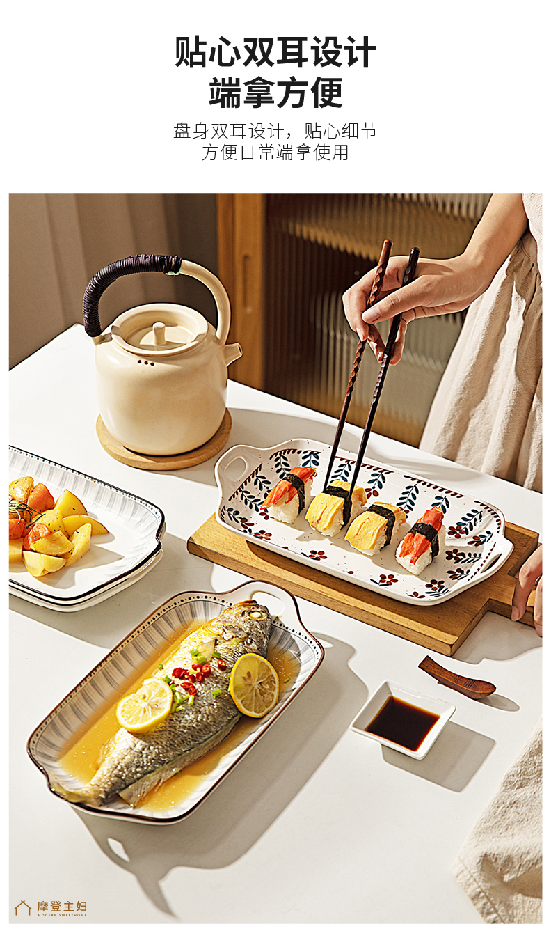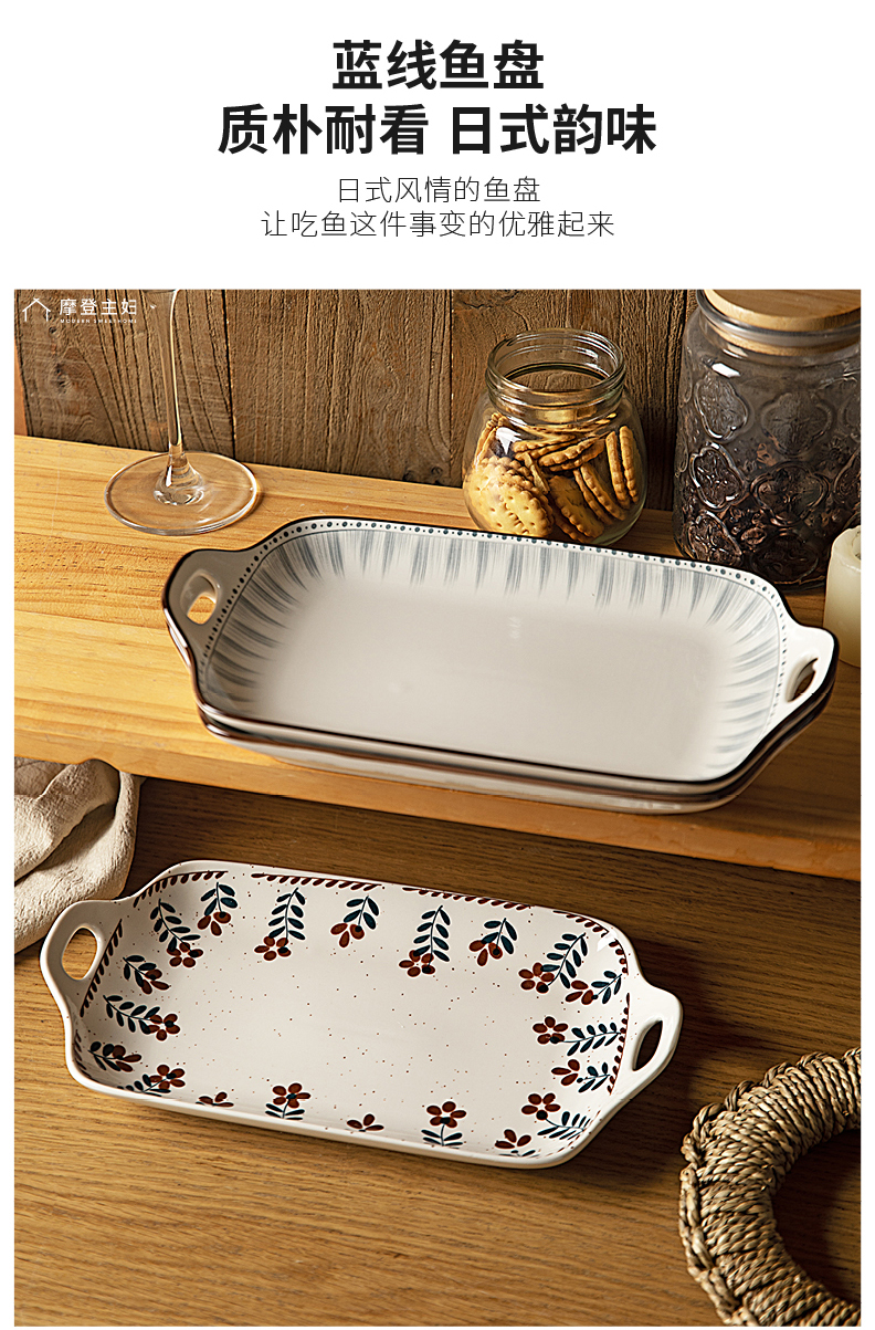 摩登主妇双耳鱼盘家用2023新款装蒸鱼碗盘碟子高级感长方形大菜盘
