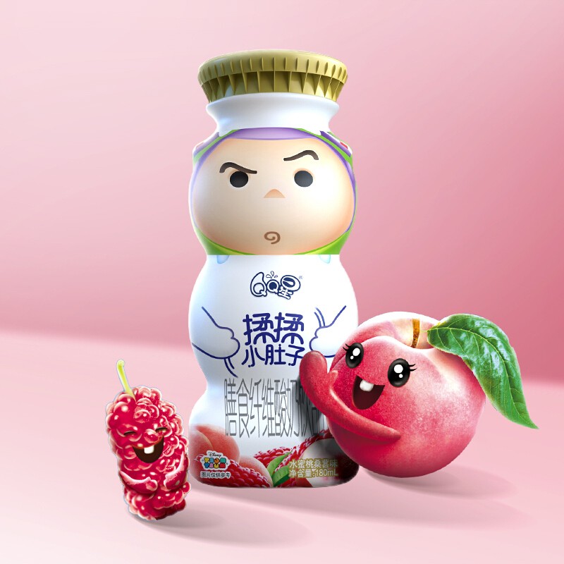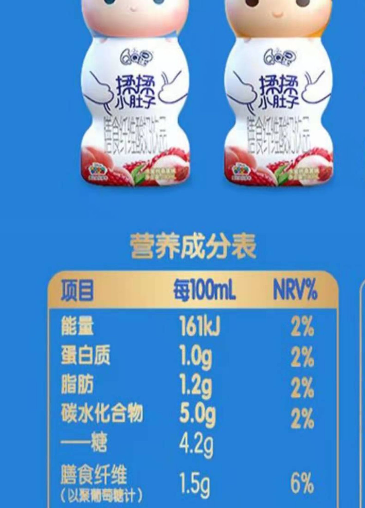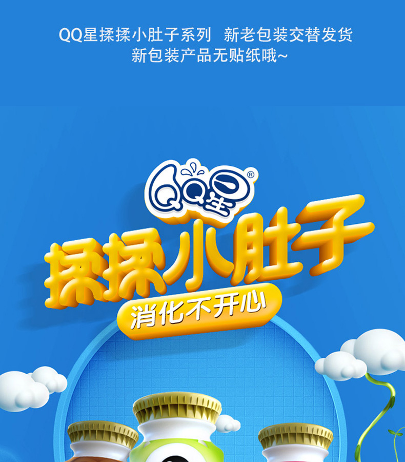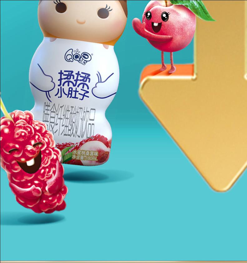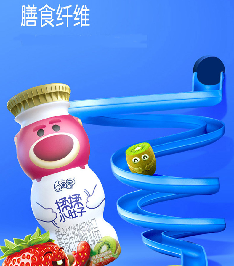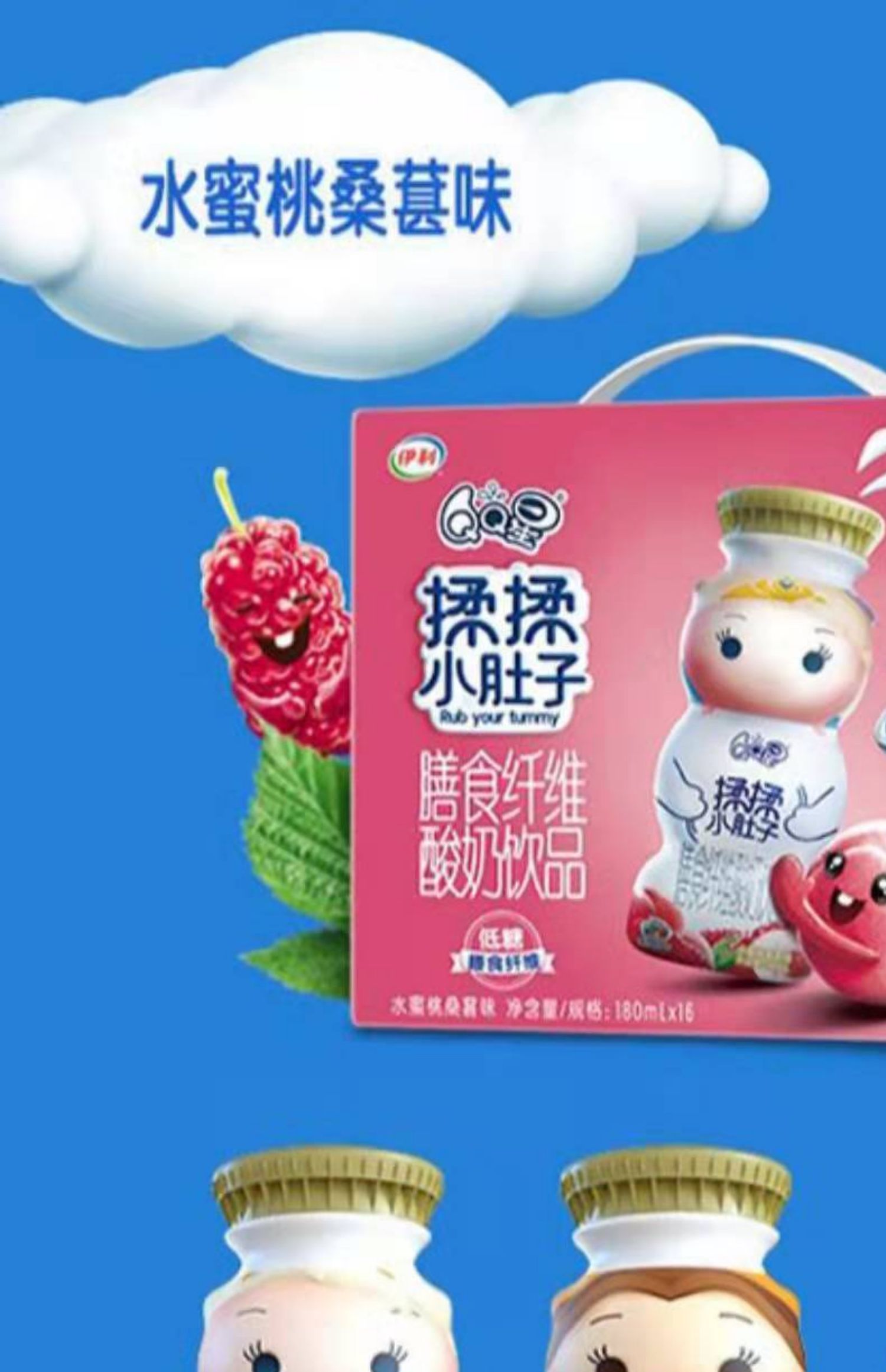 伊利QQ星揉揉小肚子180ml*16瓶膳食纤维儿童酸奶水蜜桃桑葚