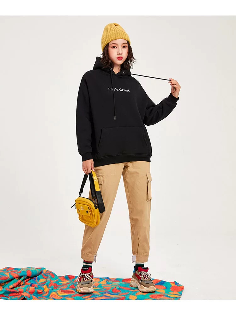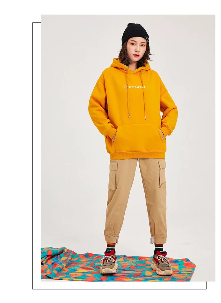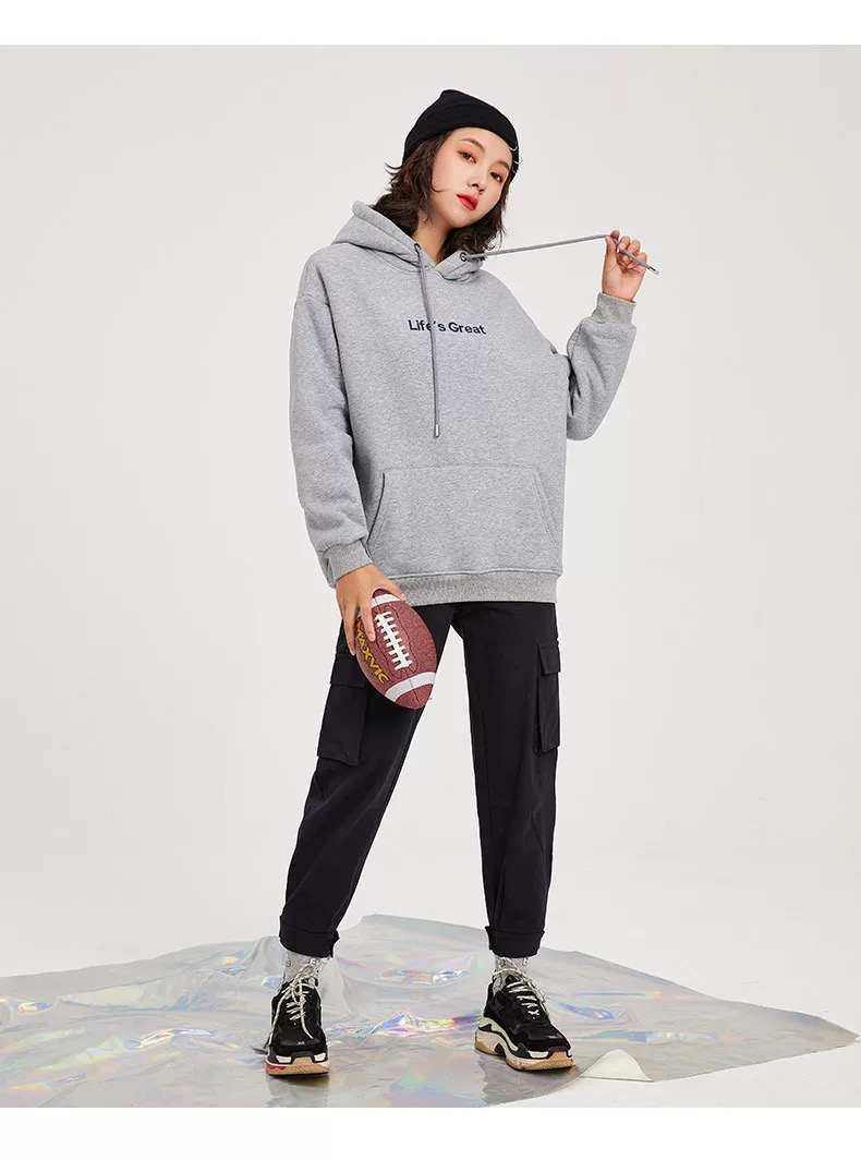 丁摩 大码连帽卫衣不加绒女士棉卫衣新款外套连帽潮流女士上衣ZF009