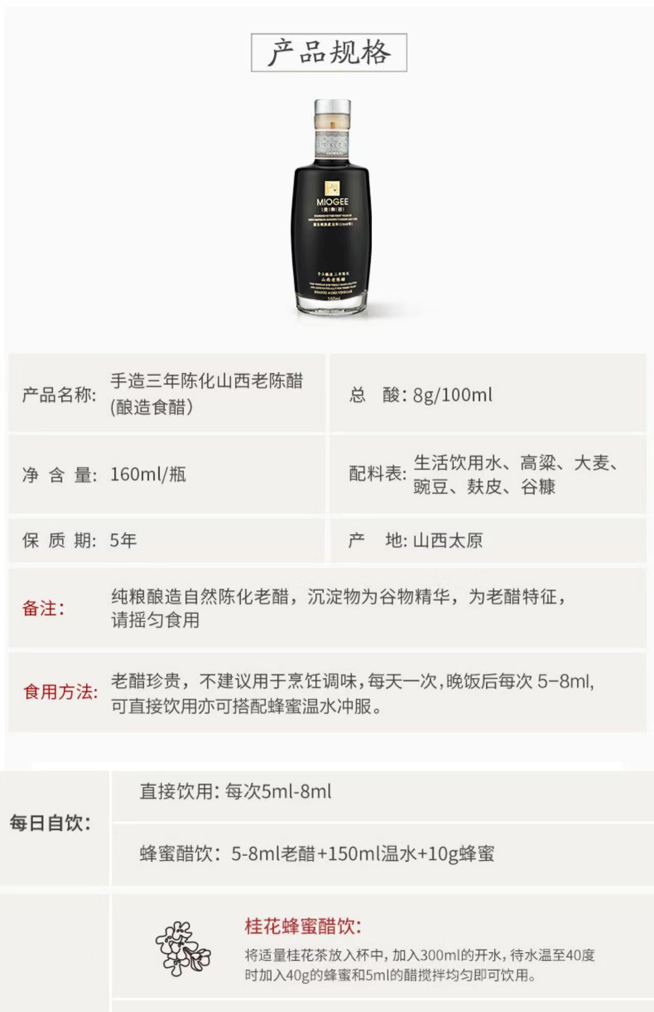 【山西陈醋-直接喝的醋】三年陈酿山西特产手工老陈醋纯粮酿造160ml