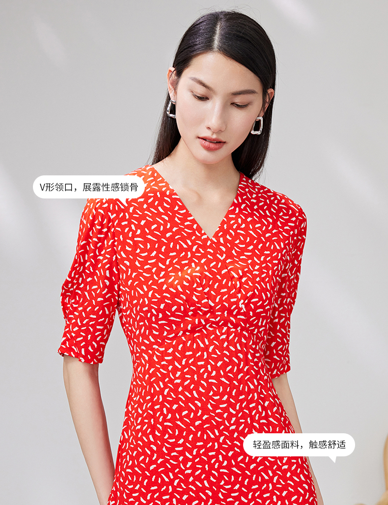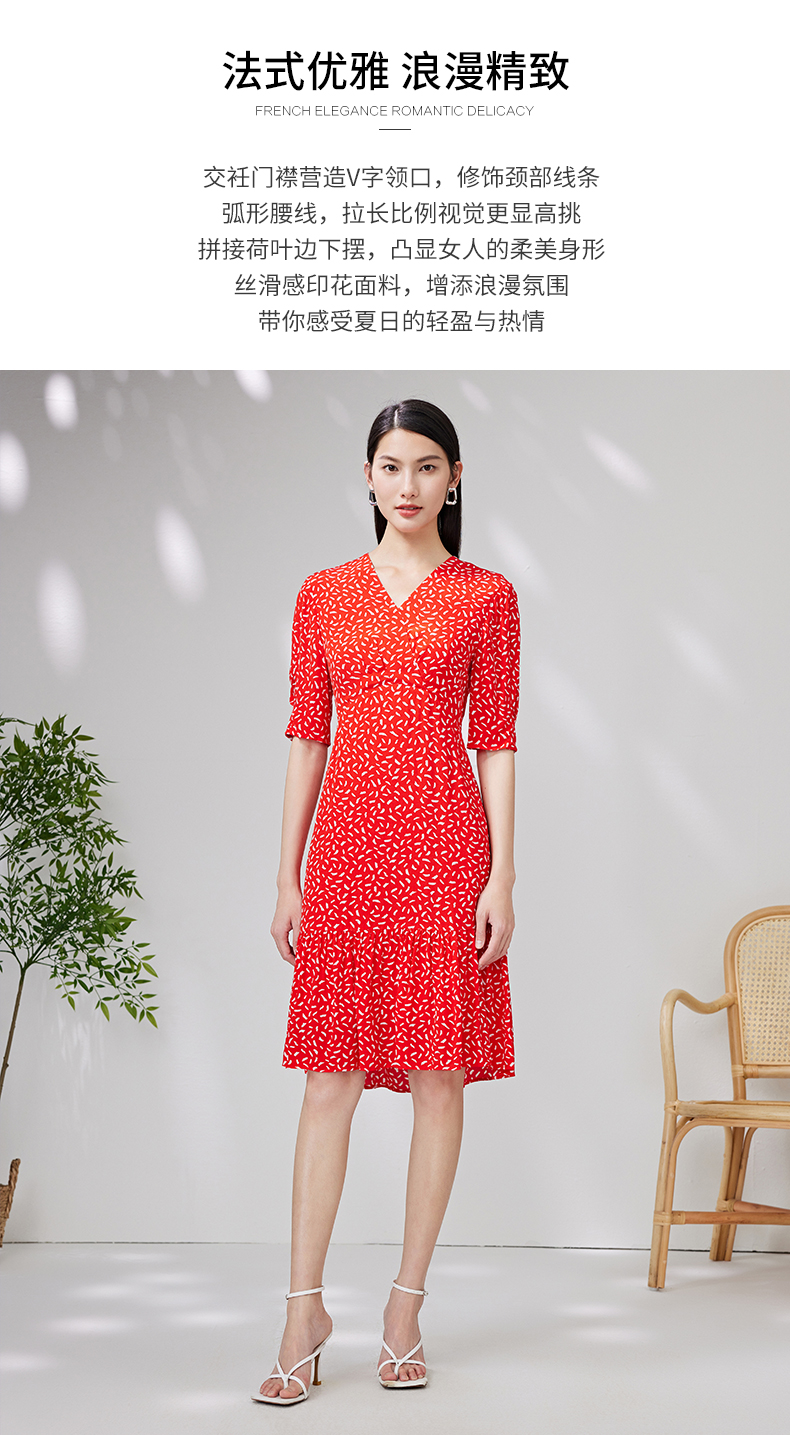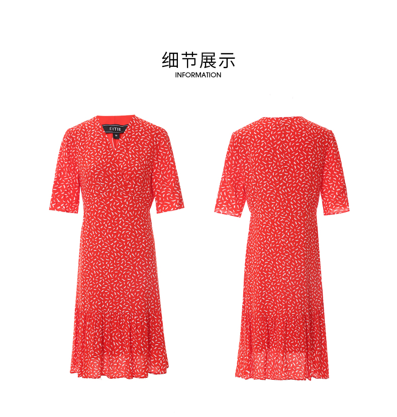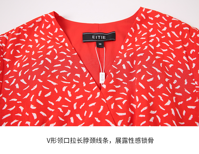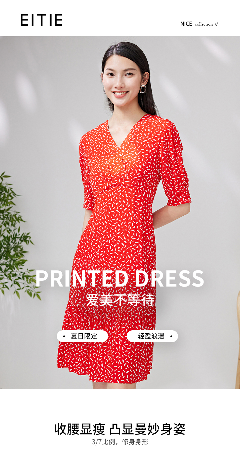 EITIE爱特爱夏季新款修身显瘦优雅V领印花连衣裙7007742