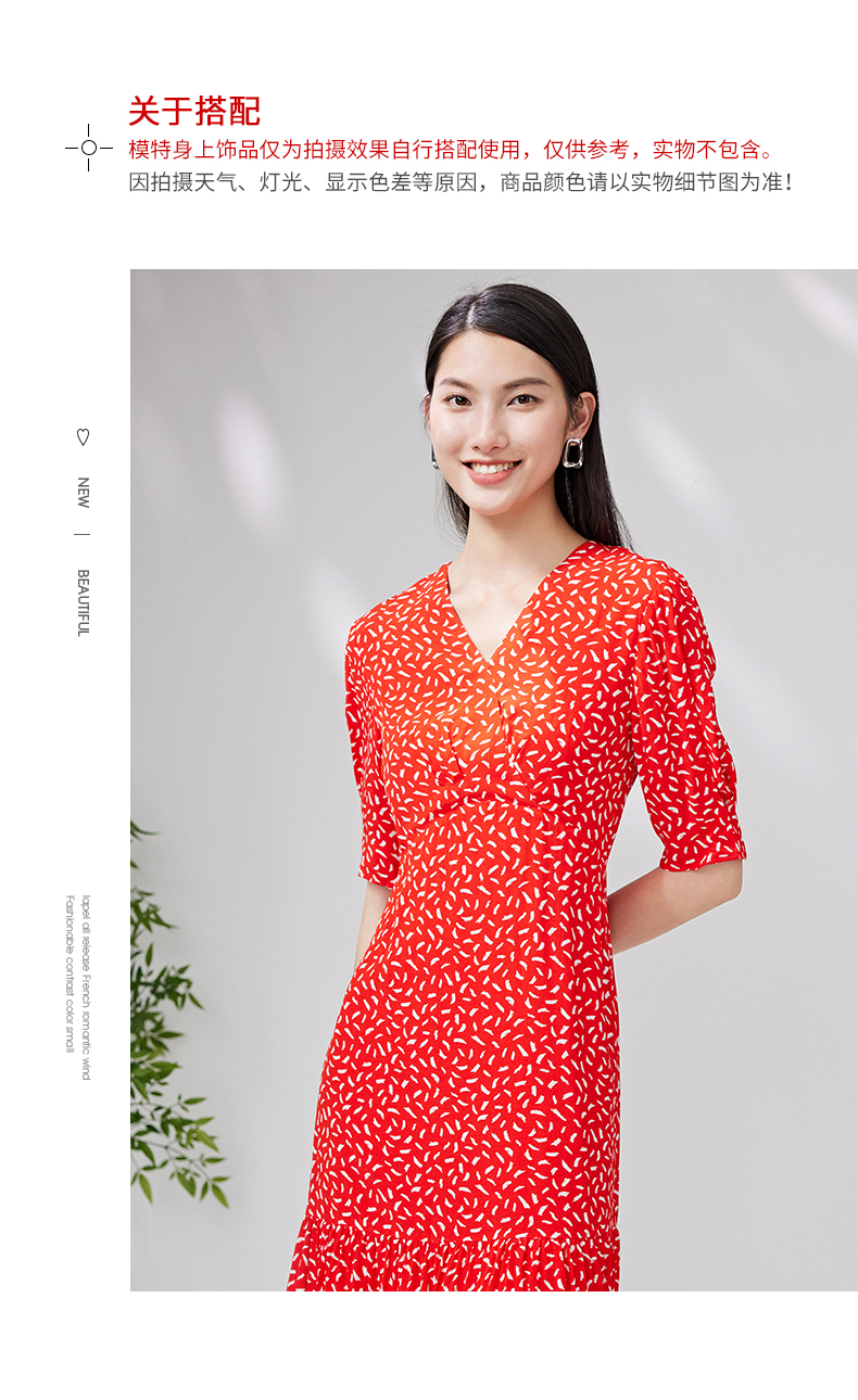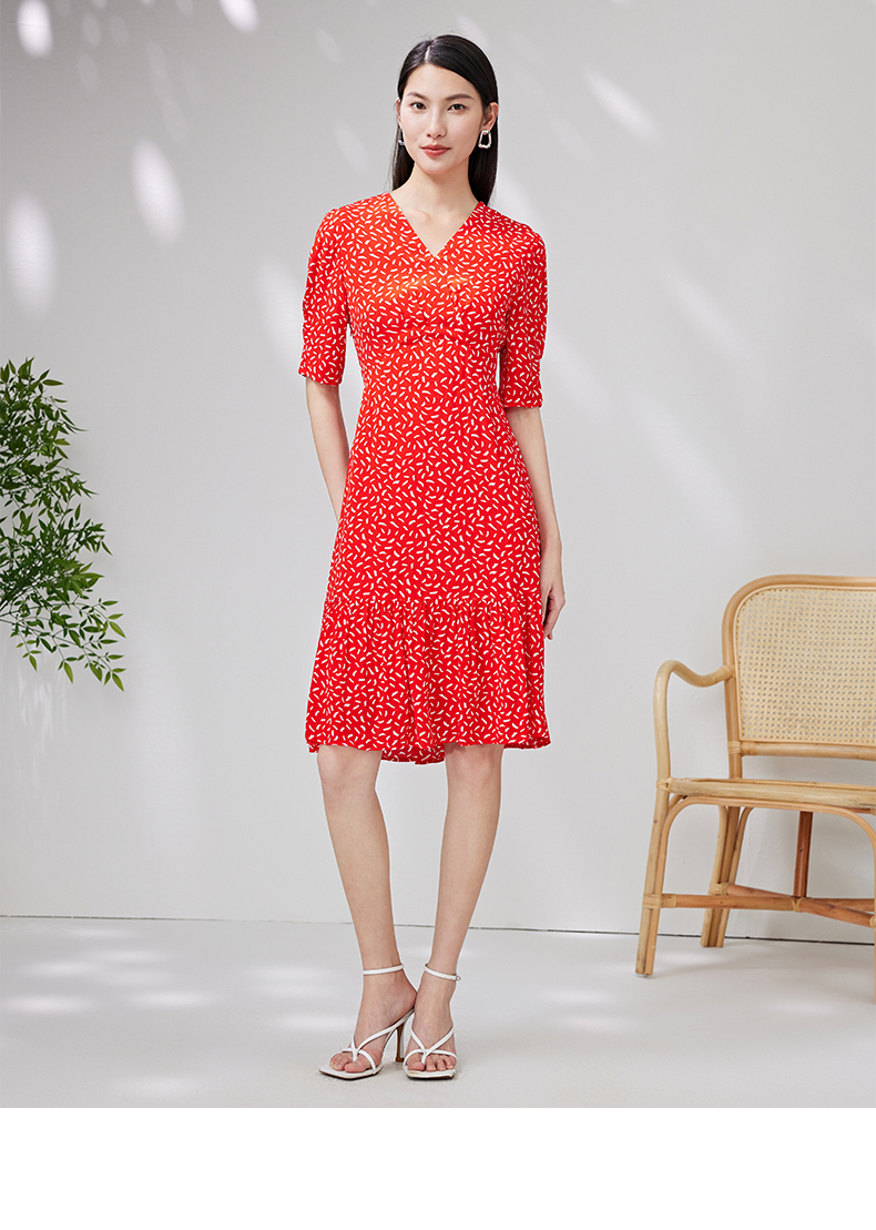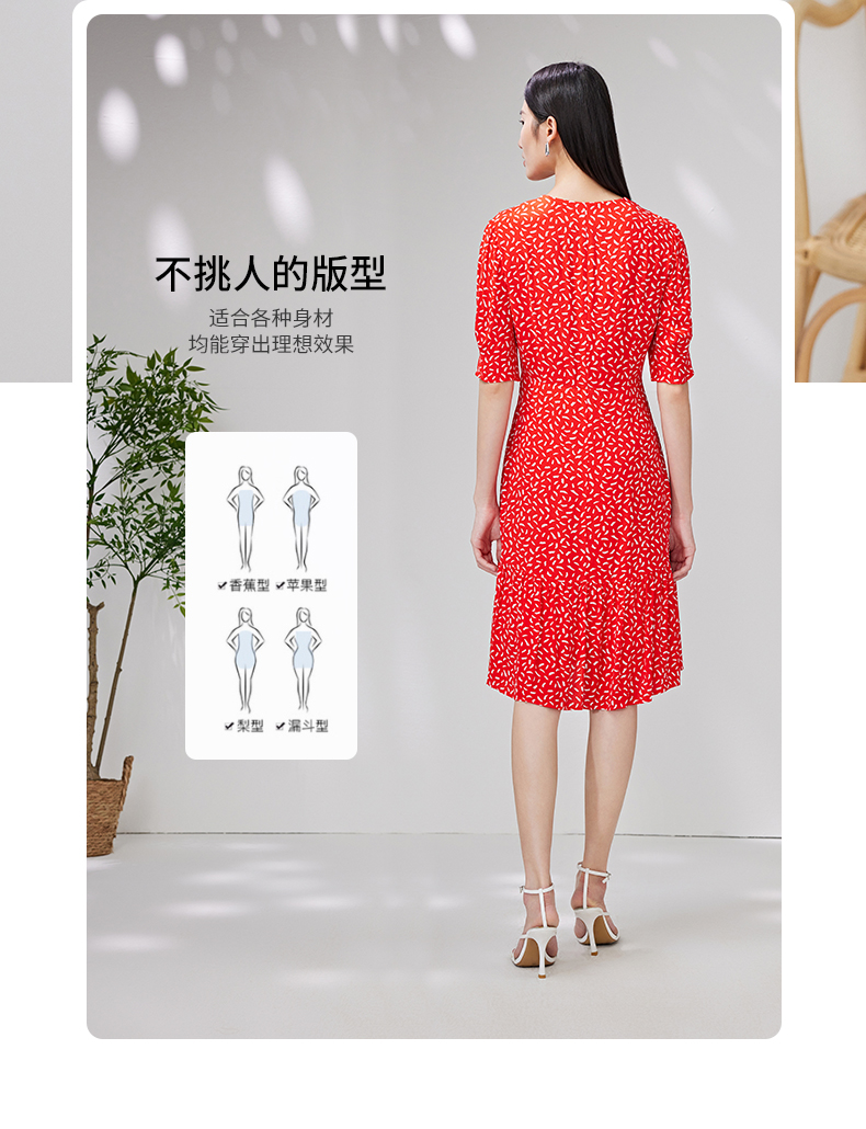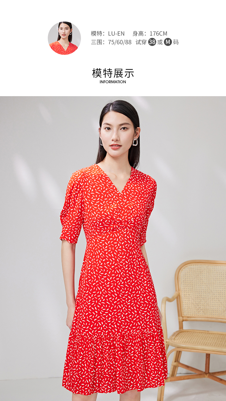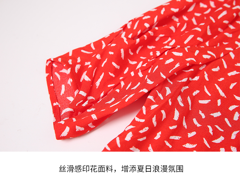 EITIE爱特爱夏季新款修身显瘦优雅V领印花连衣裙7007742