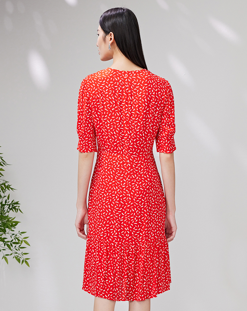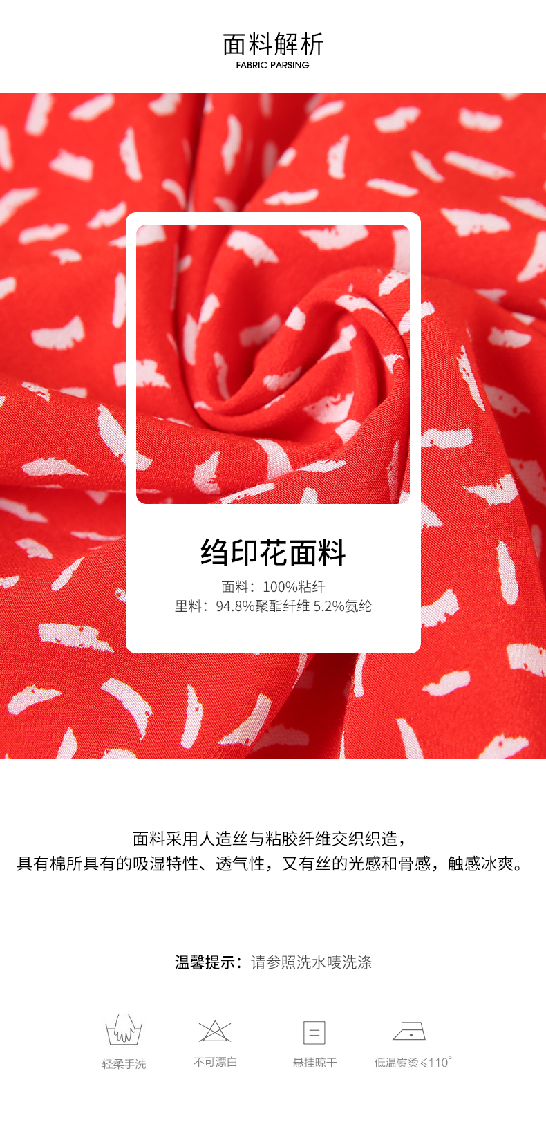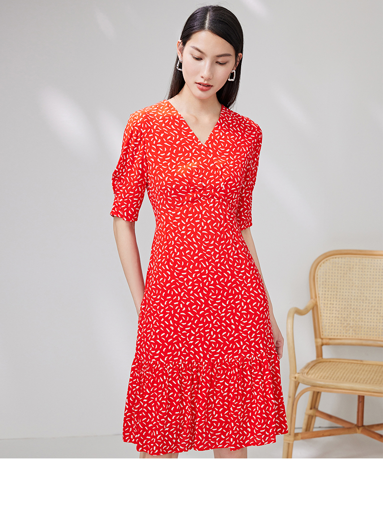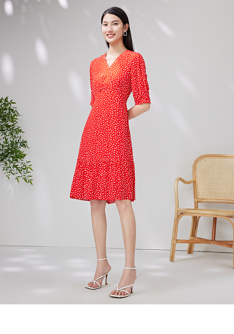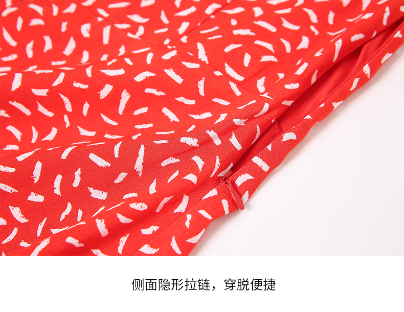 EITIE爱特爱夏季新款修身显瘦优雅V领印花连衣裙7007742