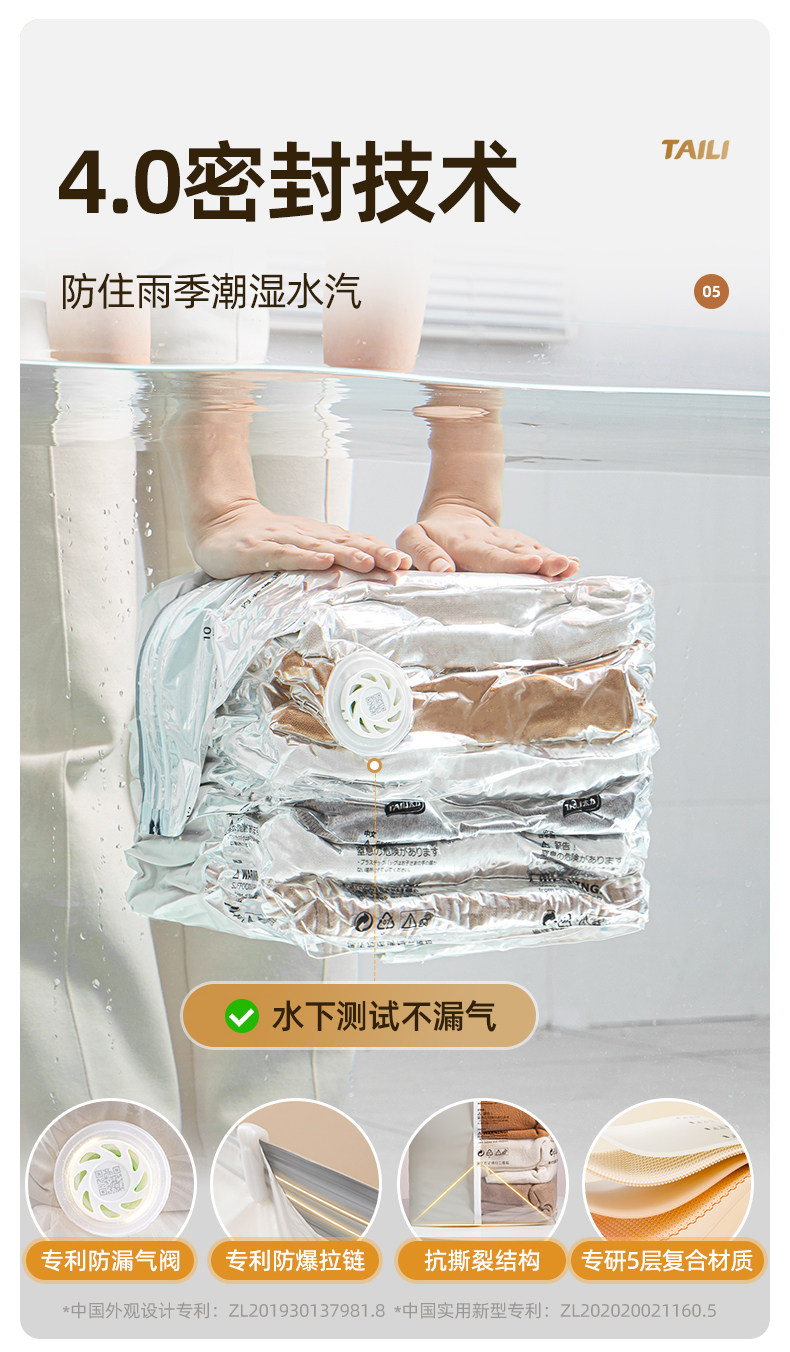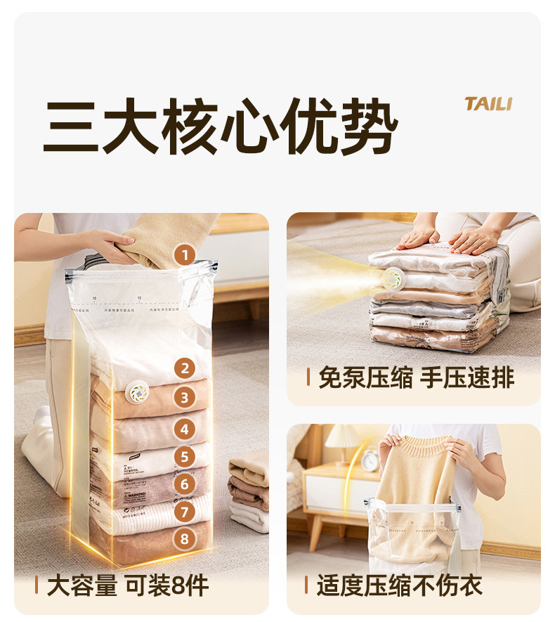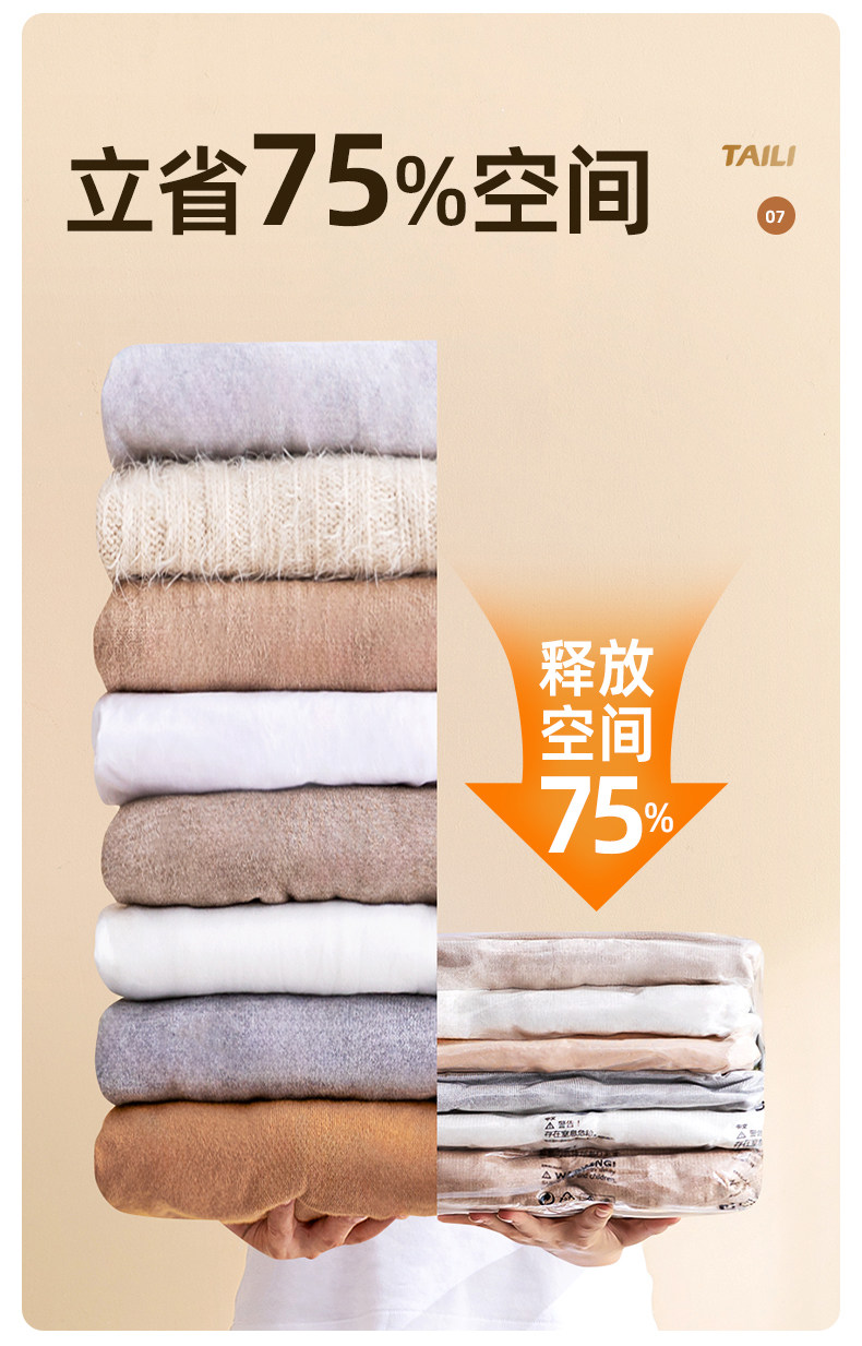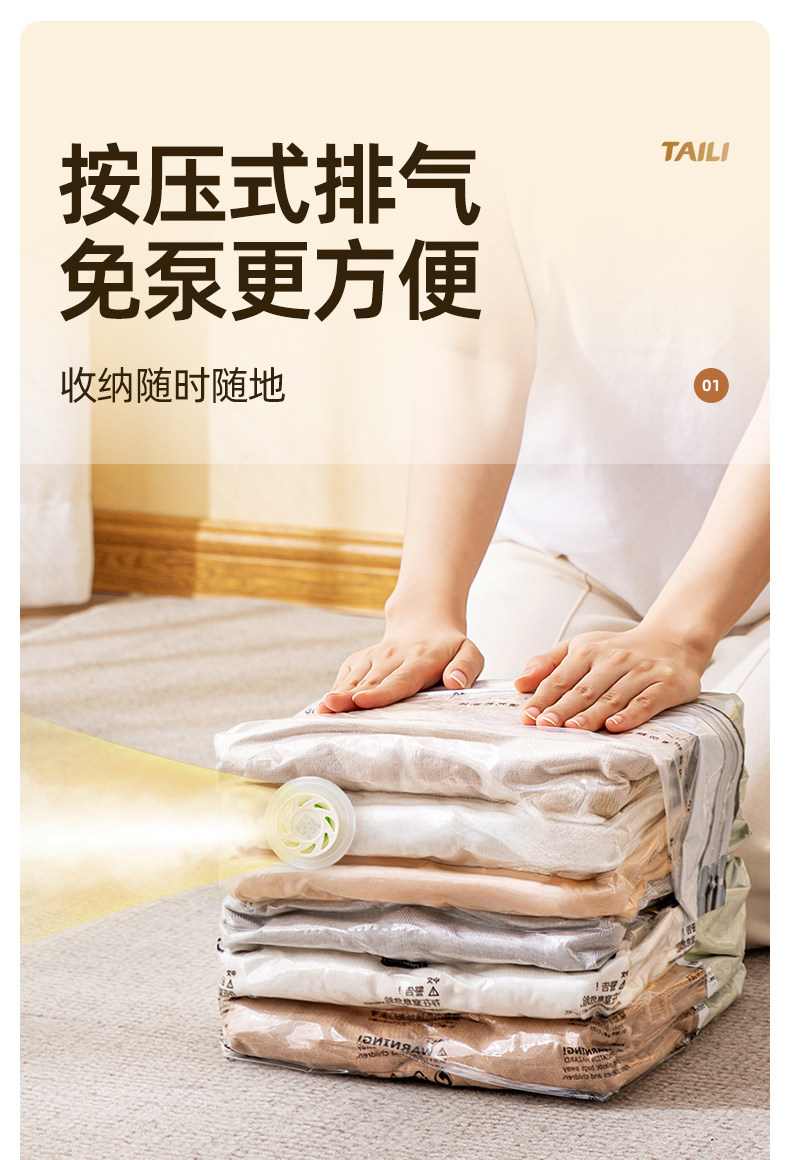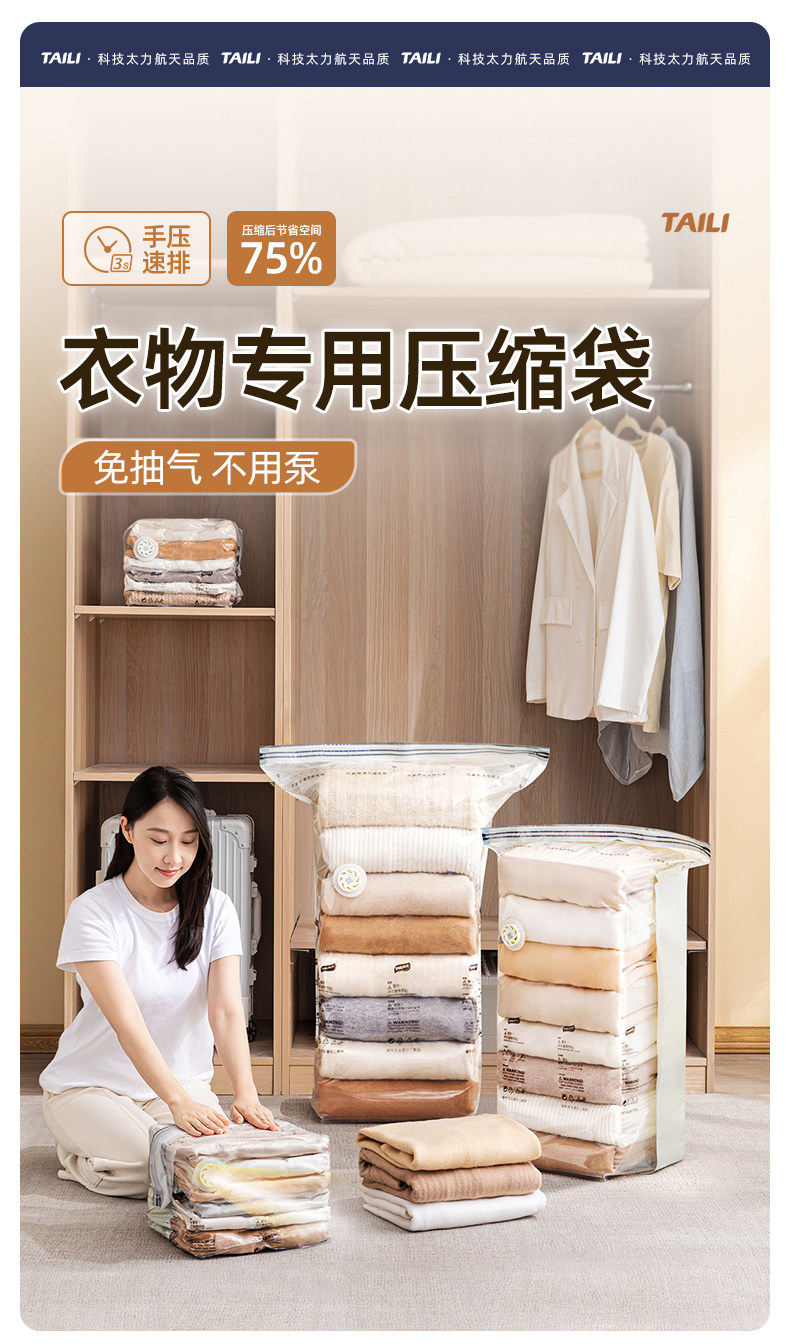 太力 维纳斯系列 真空压缩袋衣服被子羽绒服可折叠,免抽气整理袋搬家打包密封袋