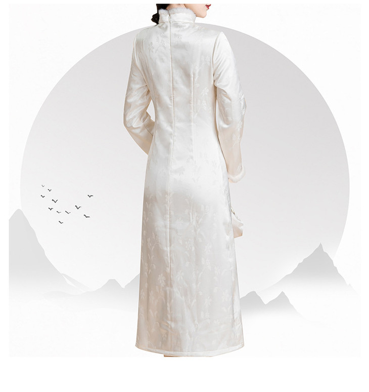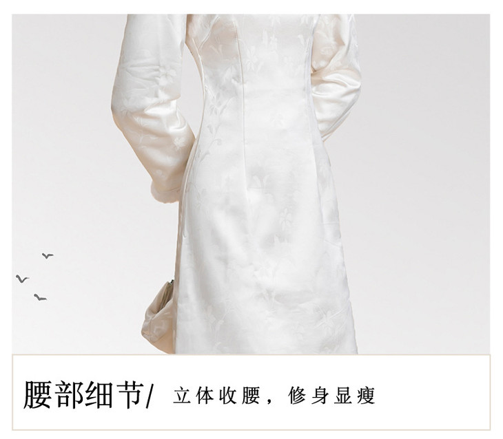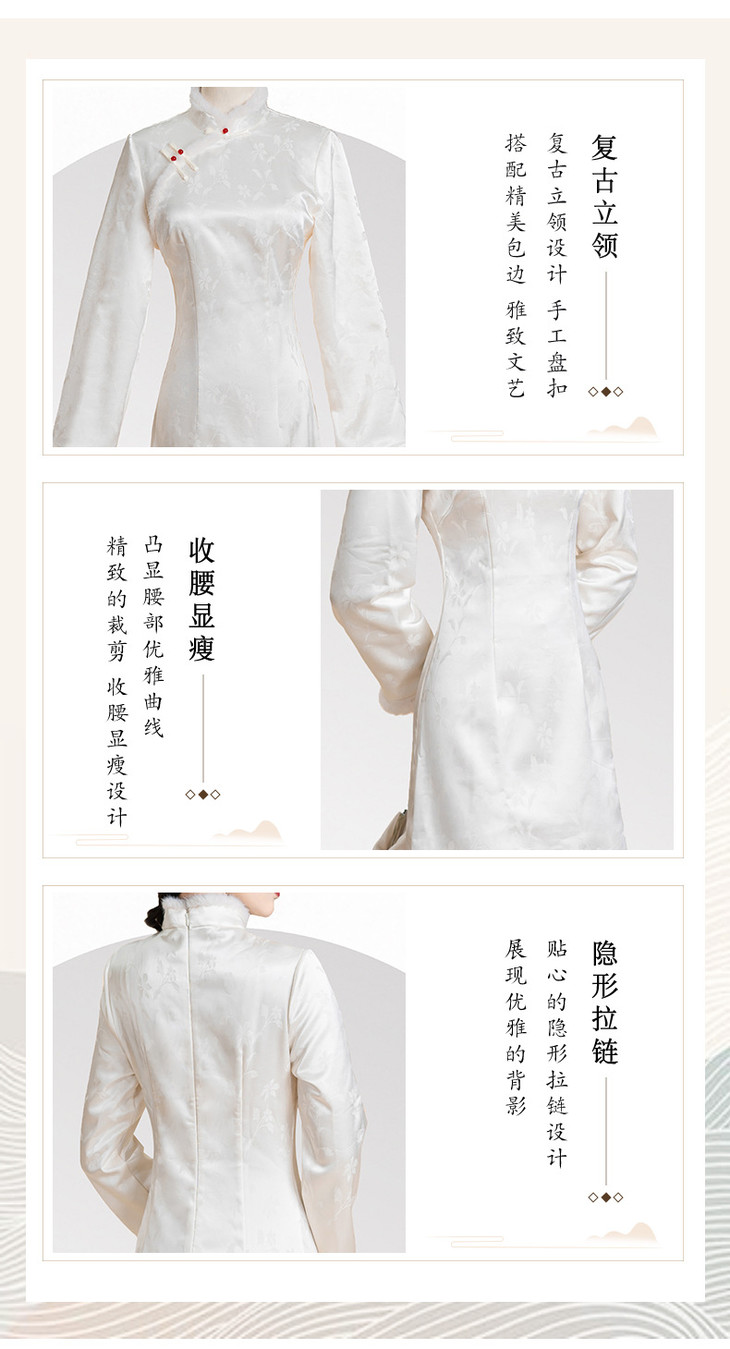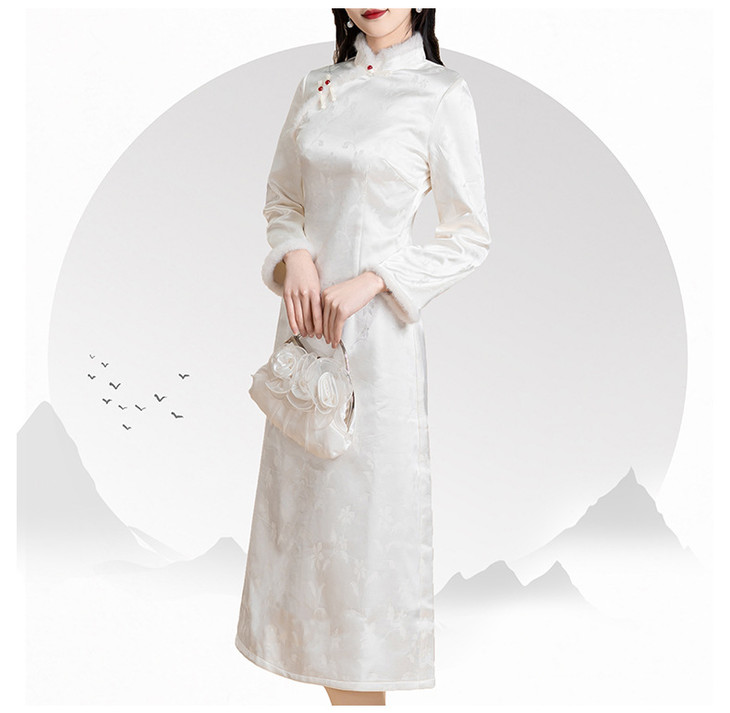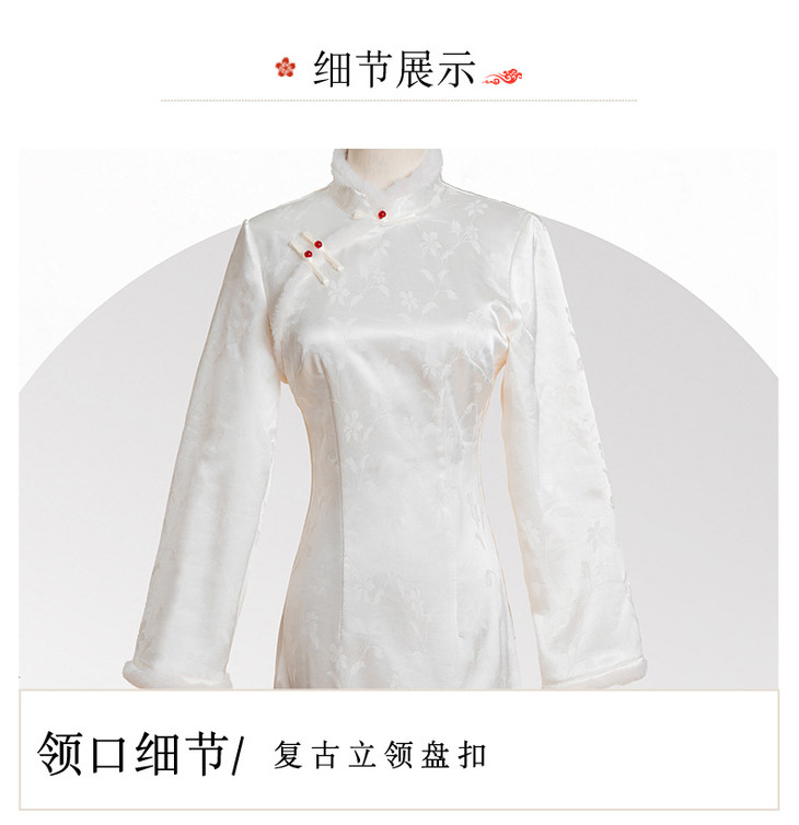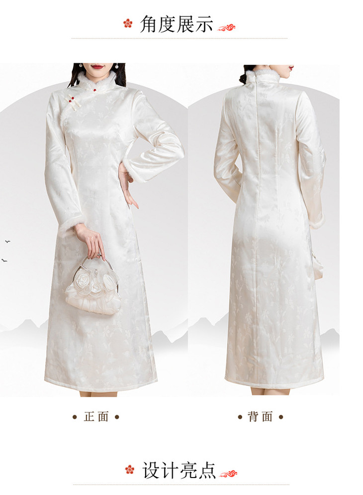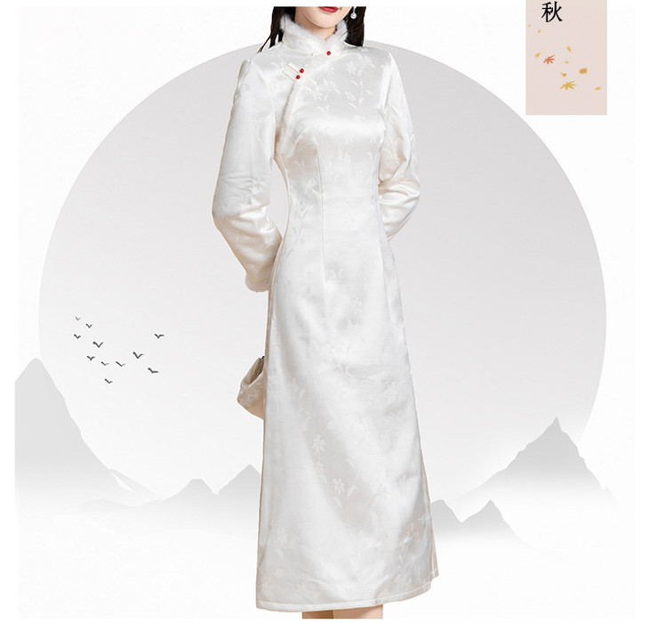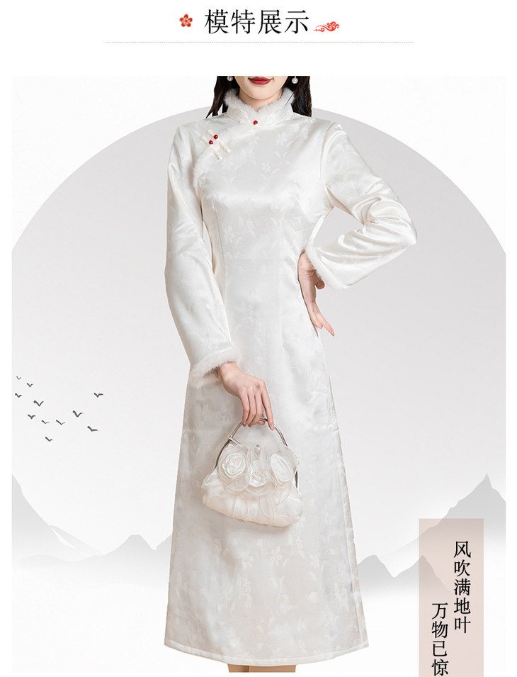 新中式旗袍2024秋冬新款年轻款缎面提花加绒修身小个子改良版旗袍KK2509