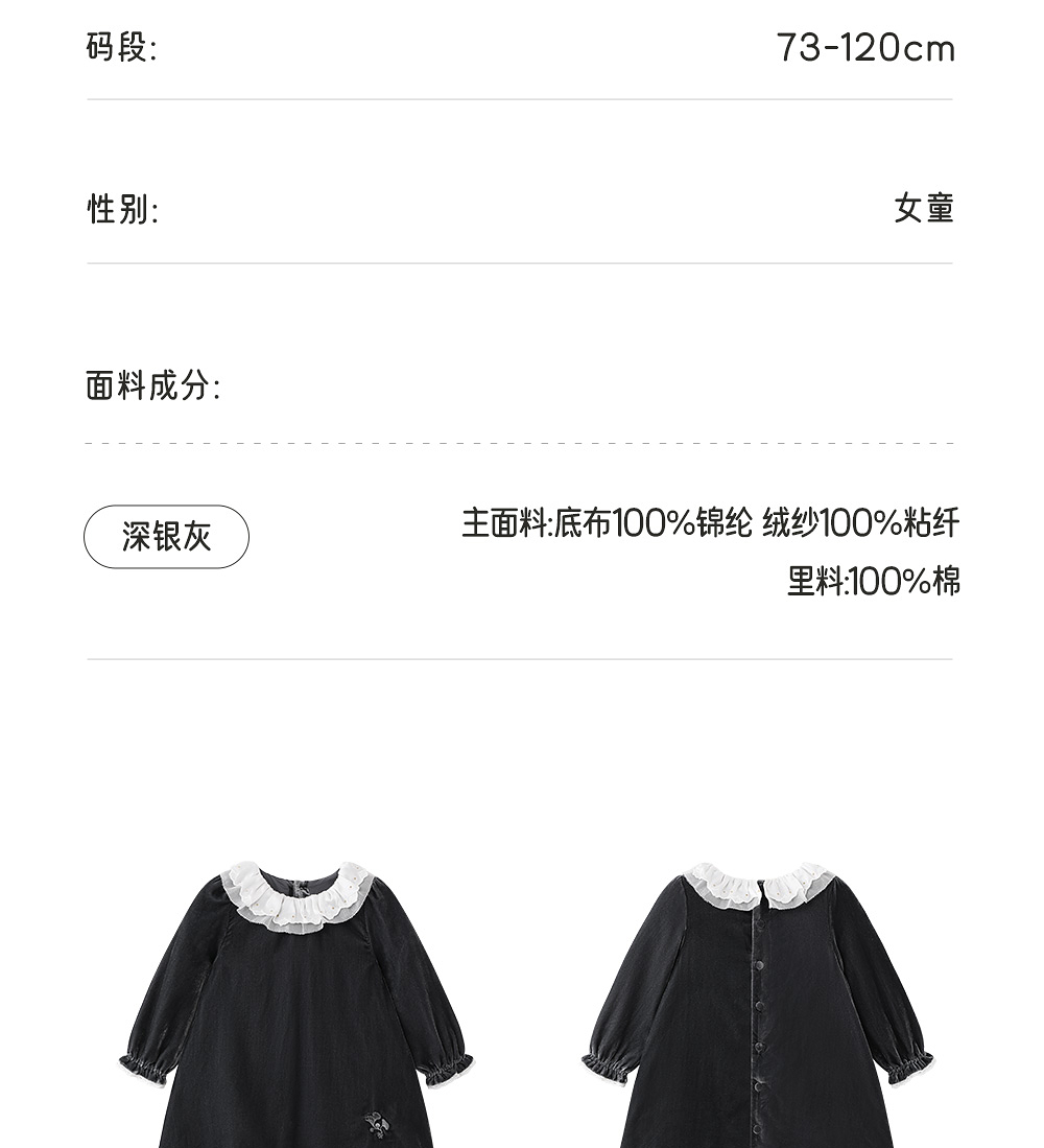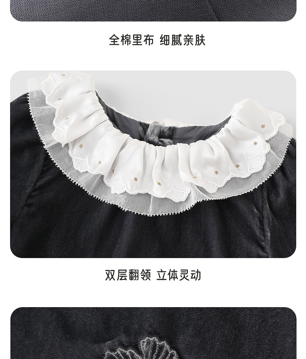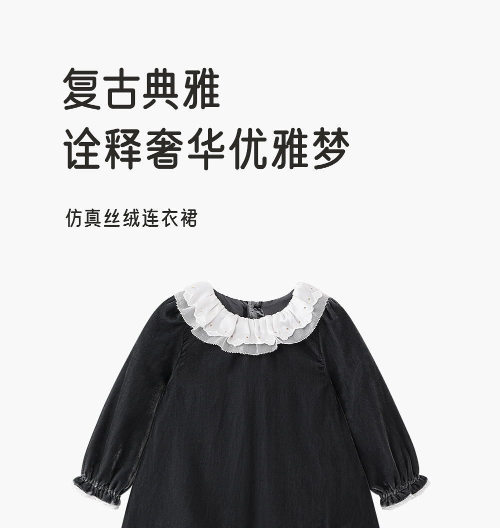 【高定系列】英氏女童裙子秋季长袖女童轻奢丝绒裙子优雅女生裙子
