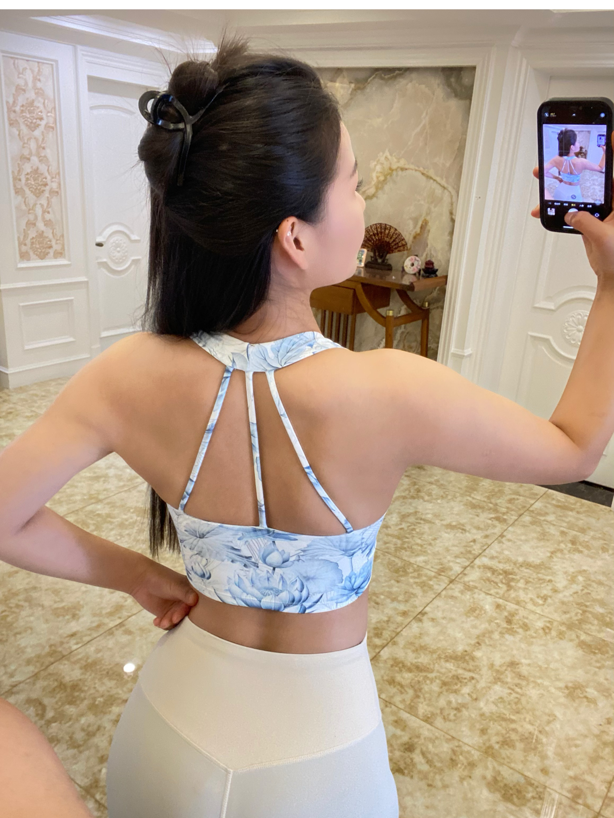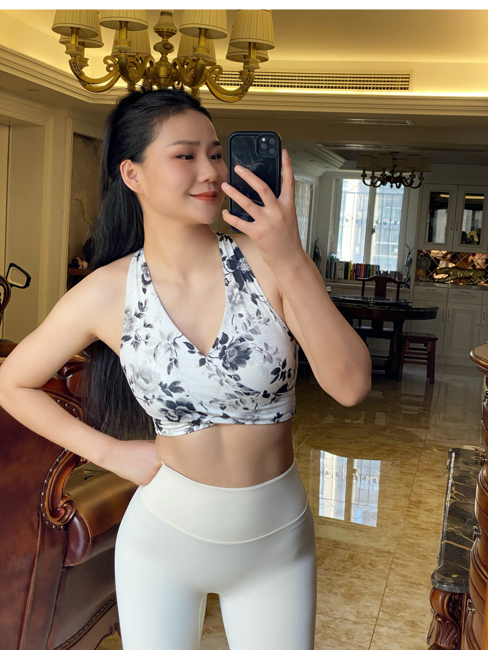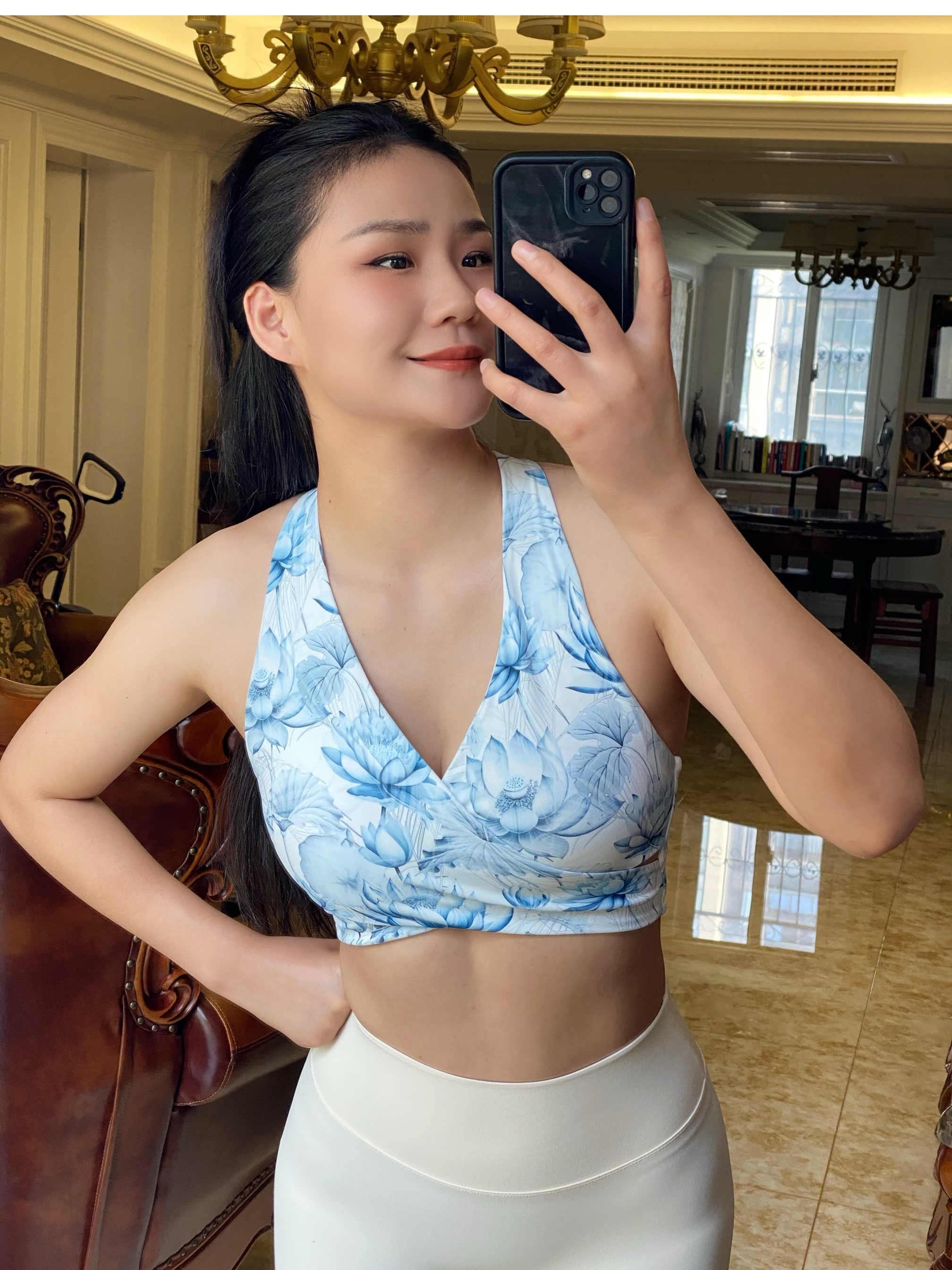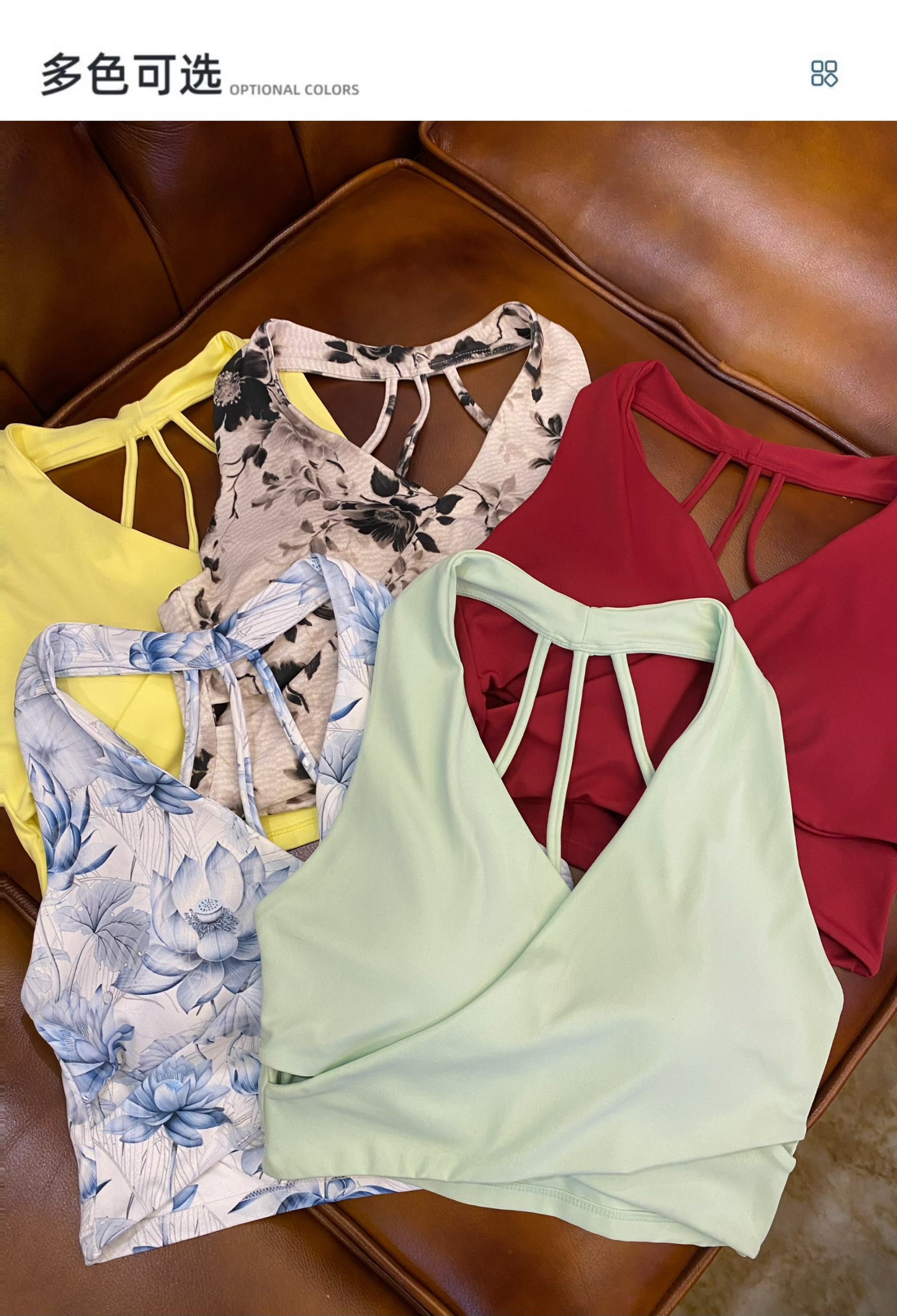 跃牌【海听系列】新款印花运动内衣女气质时尚瑜伽服挂脖美背背心上衣XC79