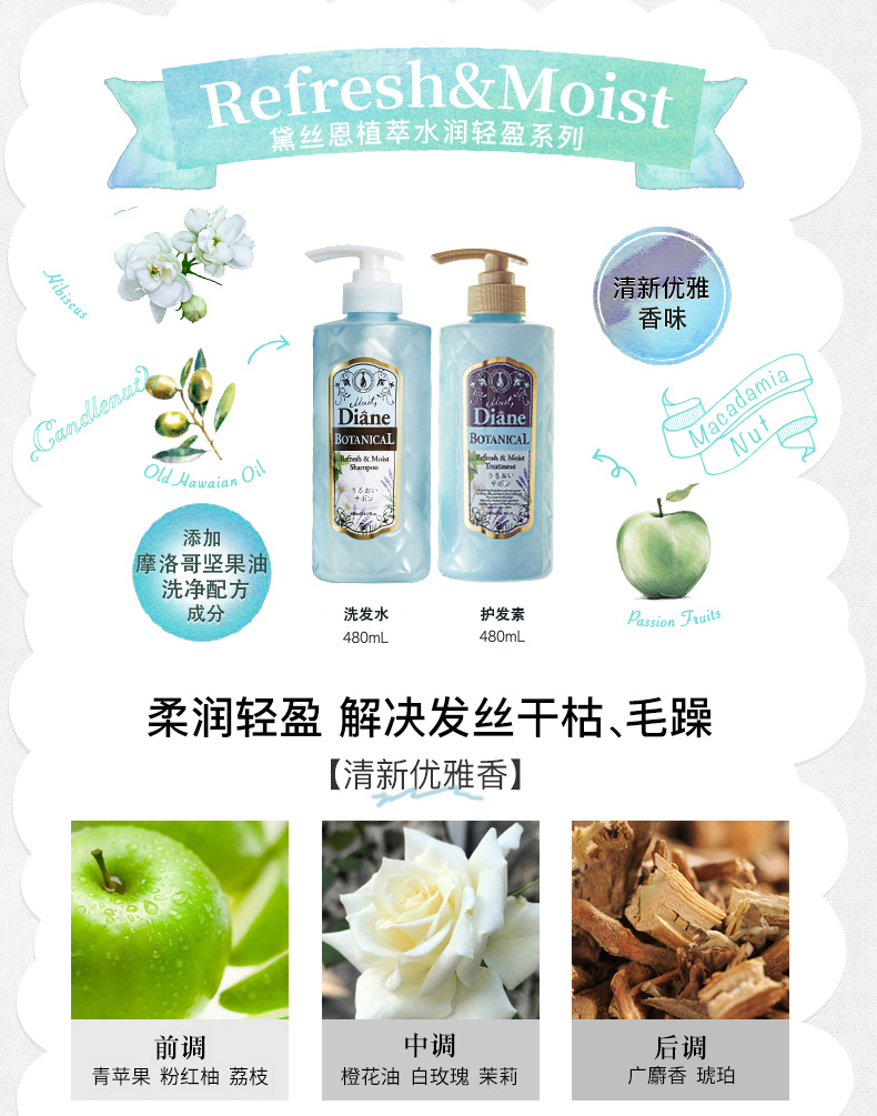 【黛丝恩】植萃洗发水 滋润亮泽型480ml