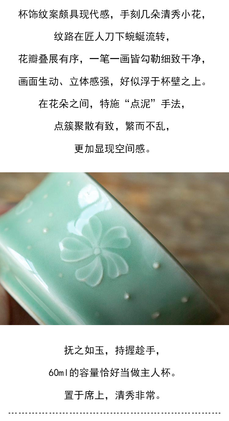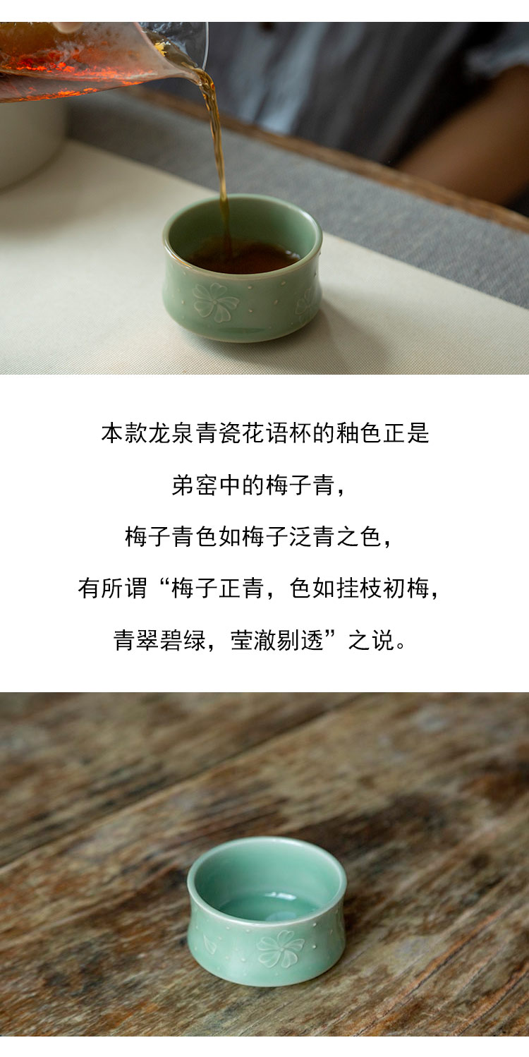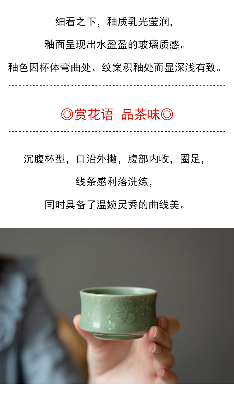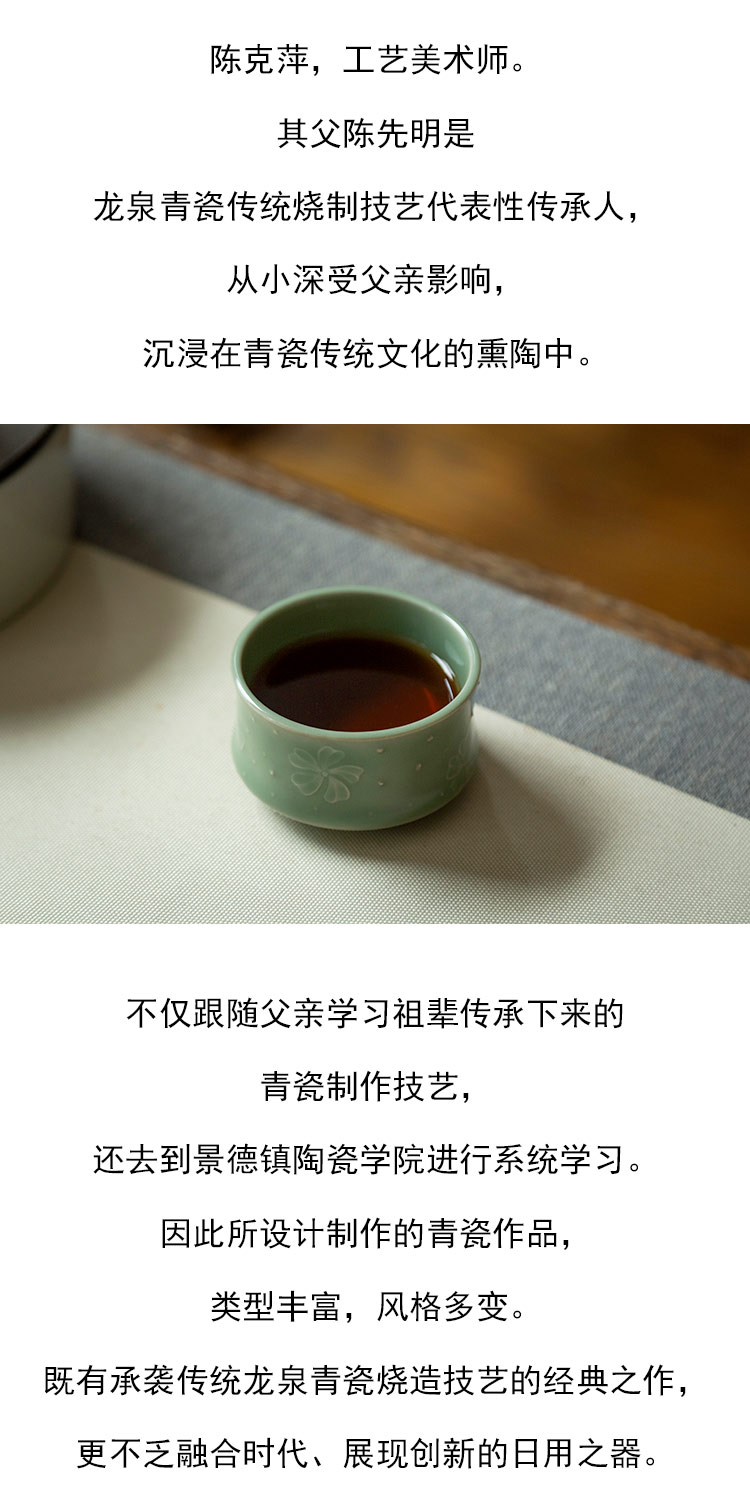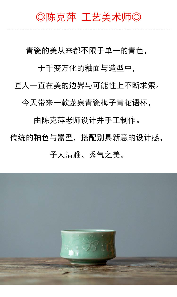 茶香记 陈克萍 梅子青花语杯 釉色青翠 抚之如玉 刻绘精细