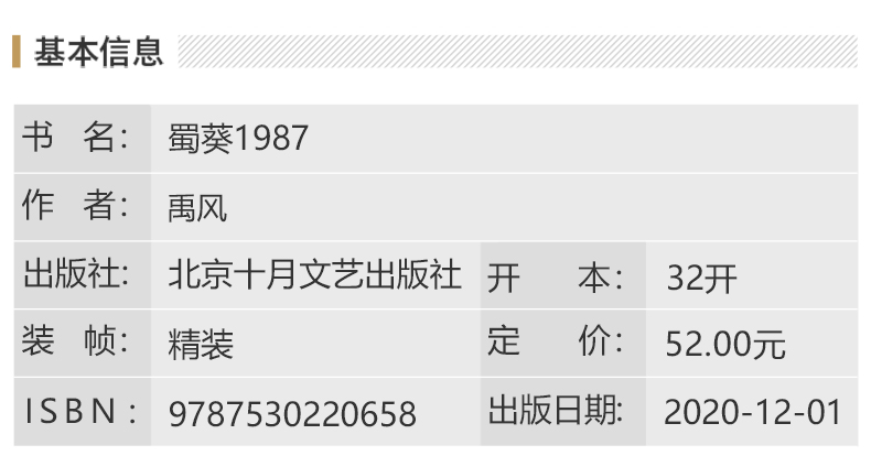 禹风长篇小说《蜀葵1987》是对八十年代上海的一次文学回溯与重构,是时光沉淀后折射的青春成长。小说借由一位男生踏入高等学府时与不同家庭背景的上海女性所发生的感情纠葛,巧妙地编织了富有时代气息的上海八十年代画卷,笔墨席卷八十年代上海知识分子、技术工人阶层、商界人士、海外背景家庭及公务员等,以逼真的质感及丰富细节,展现充满希望的八十年代各界人士的心灵状态及其社会生态,记录了一个夹在运动的七十年代与经济腾飞的九十年代之间的特殊历史时期。小说描写上海八十年代,却与八十年代"伤痕文学"迥异,展示了八十年代处于青春成长尔后在九十年代走向世界那一代"成功者"上海人的城市记忆。作品以特殊的回溯式结构以今映昨并借昨喻今,造成文学结构上光影变幻的丰富层次,并以深刻的过来者的感悟在淡淡哀伤的笔调中为真挚的爱情吟唱,带引读者渐入时间透明并深邃的陷阱,构成别具一格的美学效*果,令人耳目一新地描绘出"大转折时期"上海的精神纹理。小说语言富有特色,长句短句嵌套自如,如水似乐,流畅回旋。