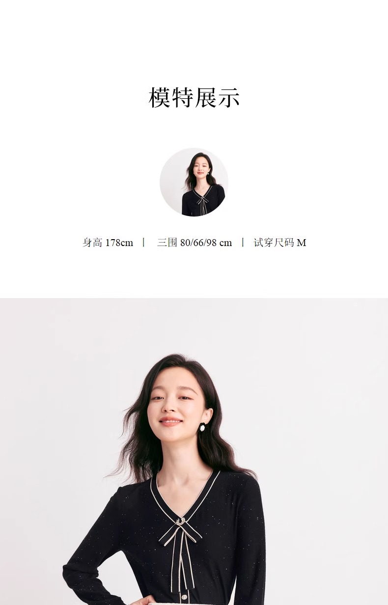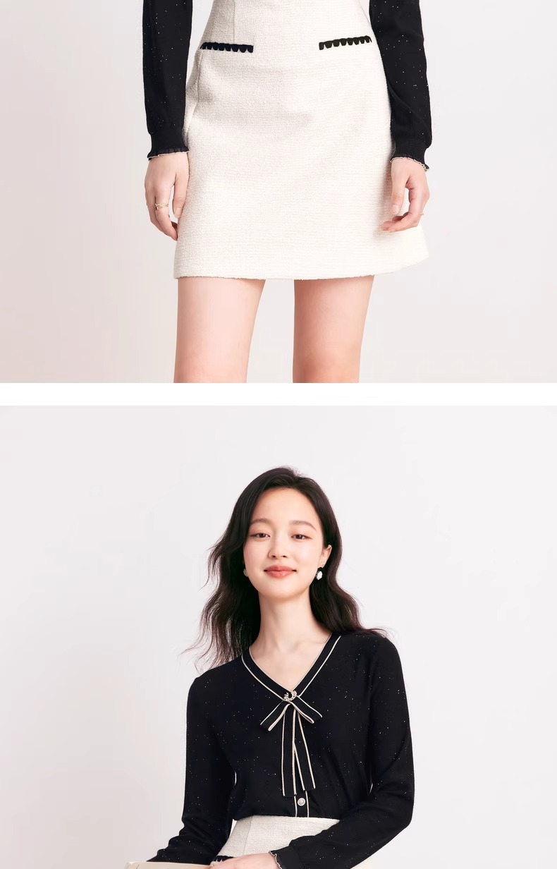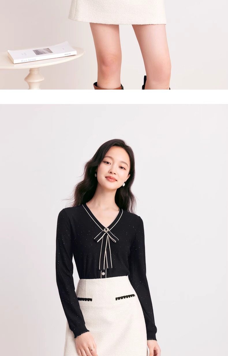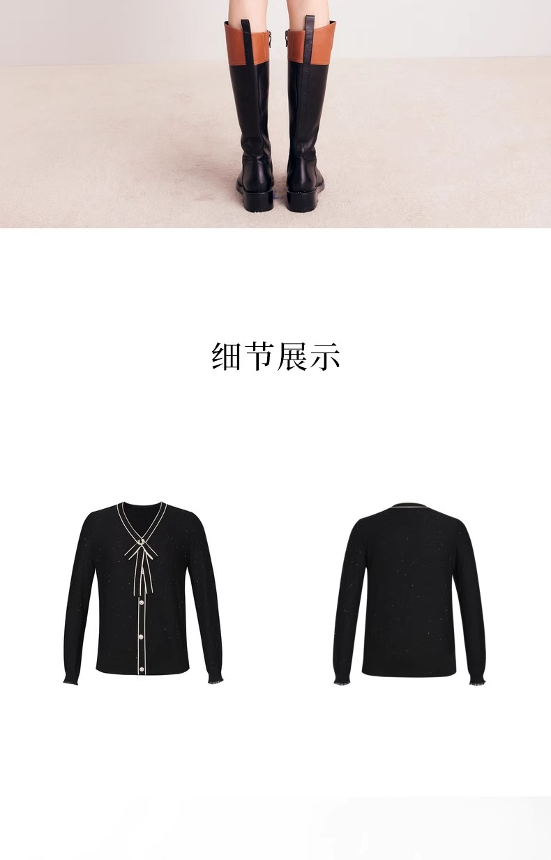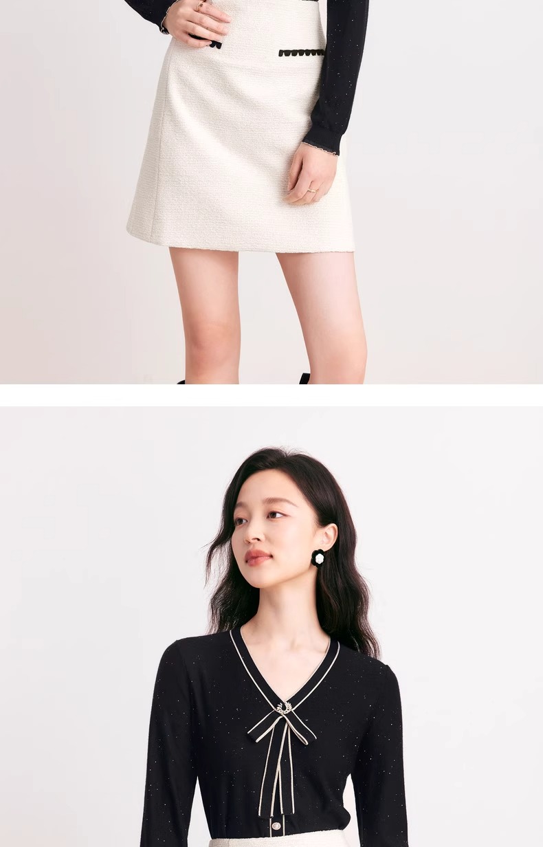 [顺丰包邮]珂莱蒂尔同款22510秋季修身V领套头绵羊毛拼接针织衫上衣171