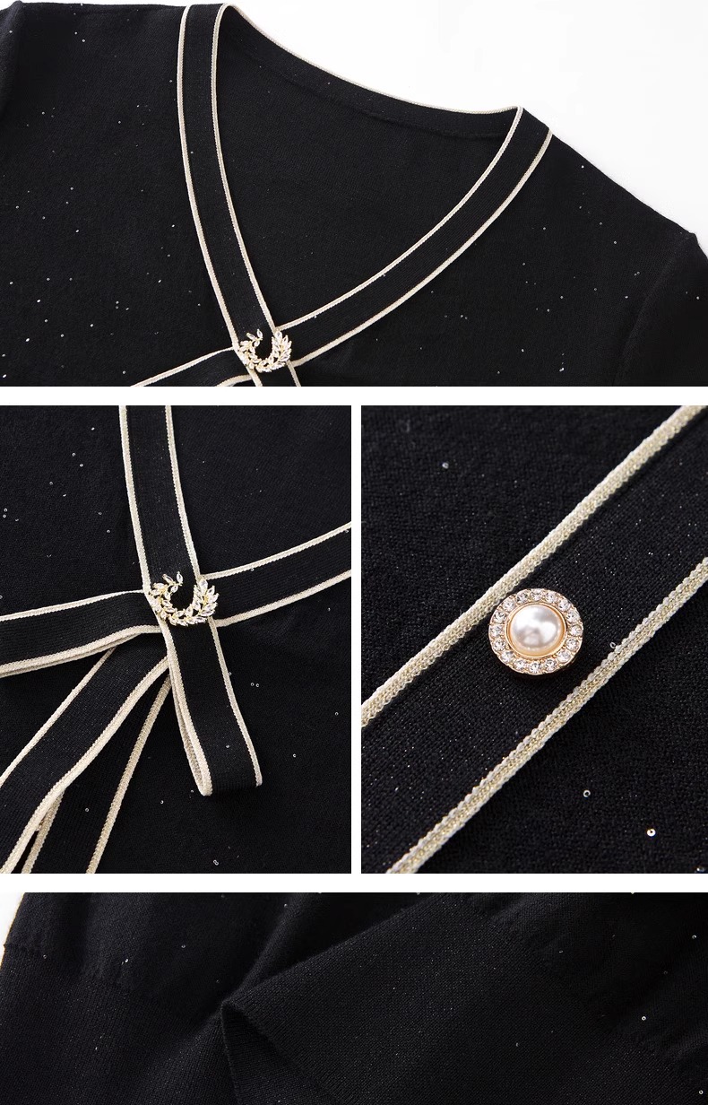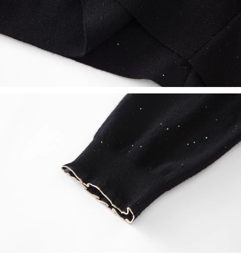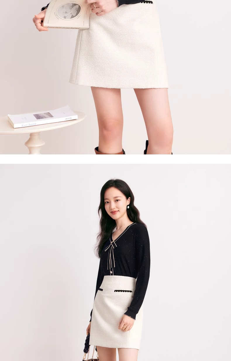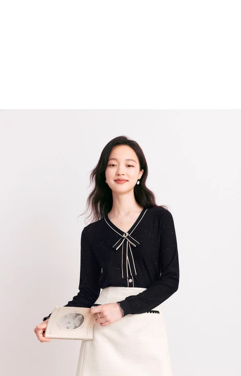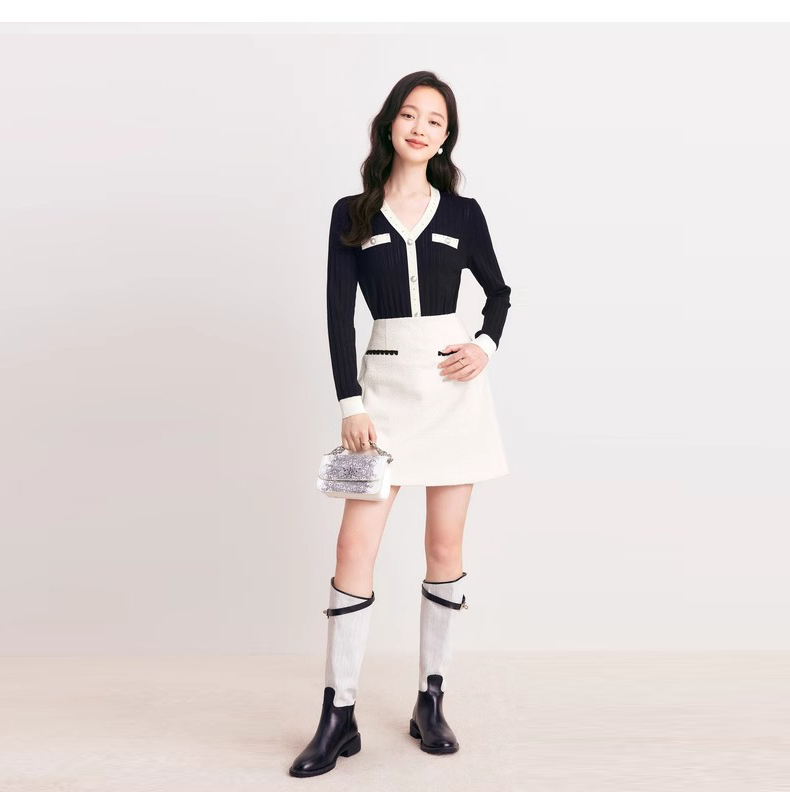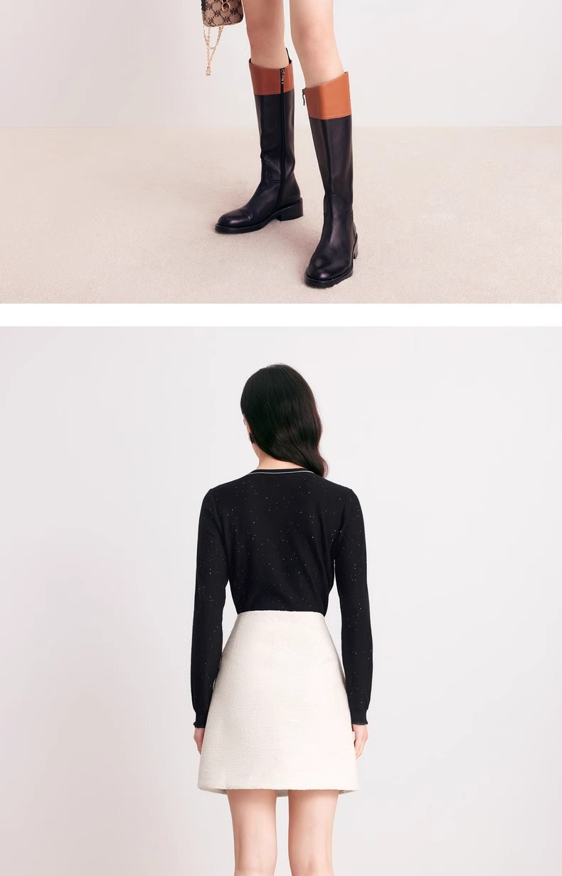 [顺丰包邮]珂莱蒂尔同款22510秋季修身V领套头绵羊毛拼接针织衫上衣171