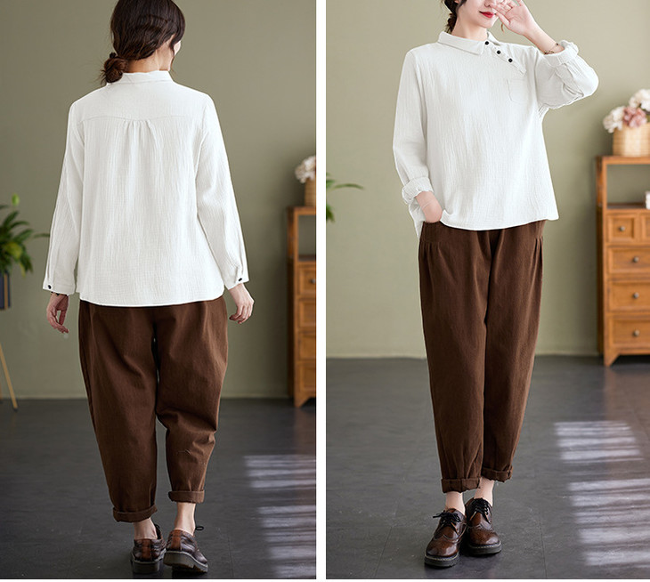 GYH 6163复古斜襟套头上衣宽松双层棉纱衬衫外套