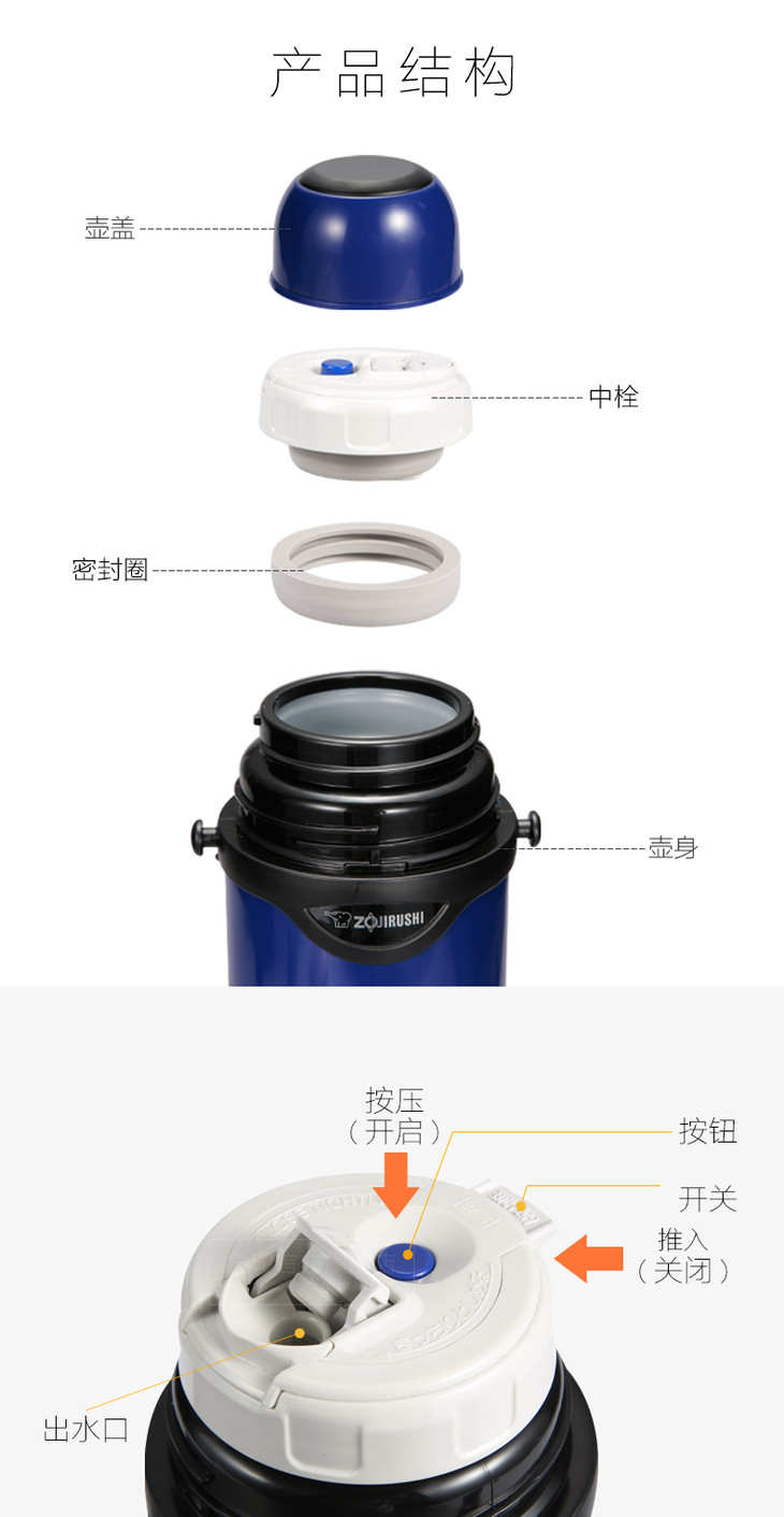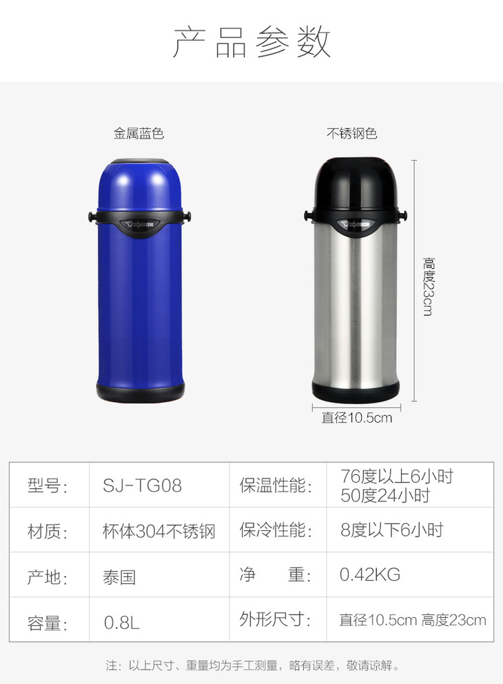 象印/ZOJIRUSHI 保温水壶TG08不锈钢大容量家用户外运动旅行壶便携车载保温瓶