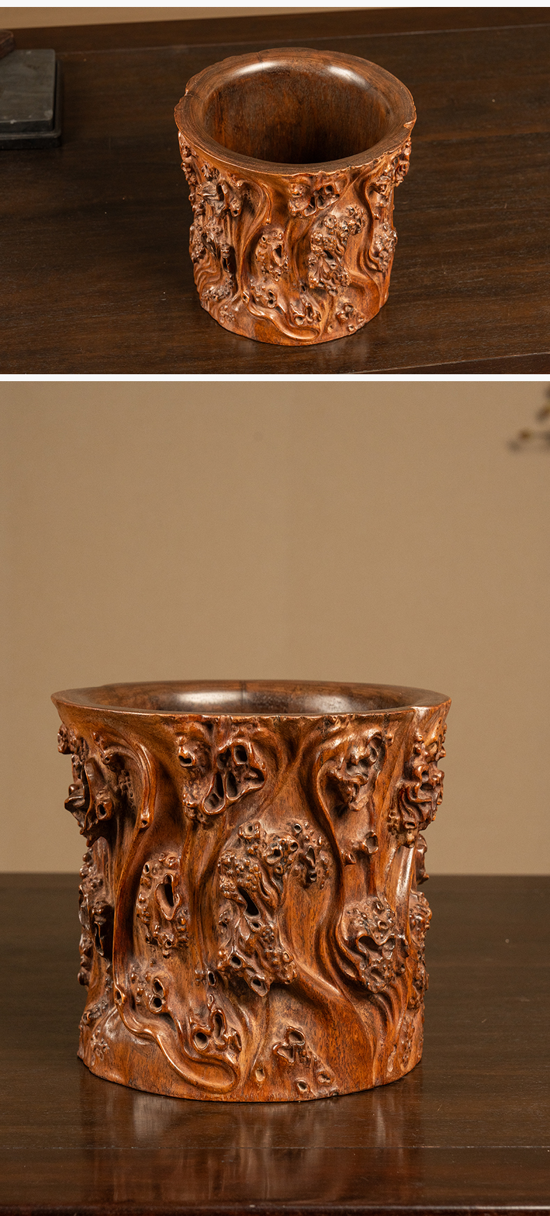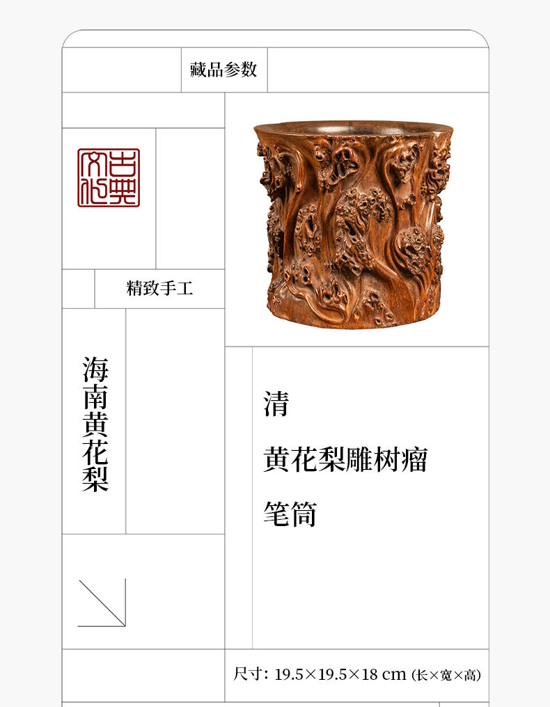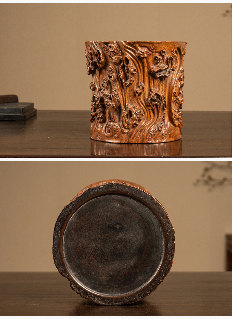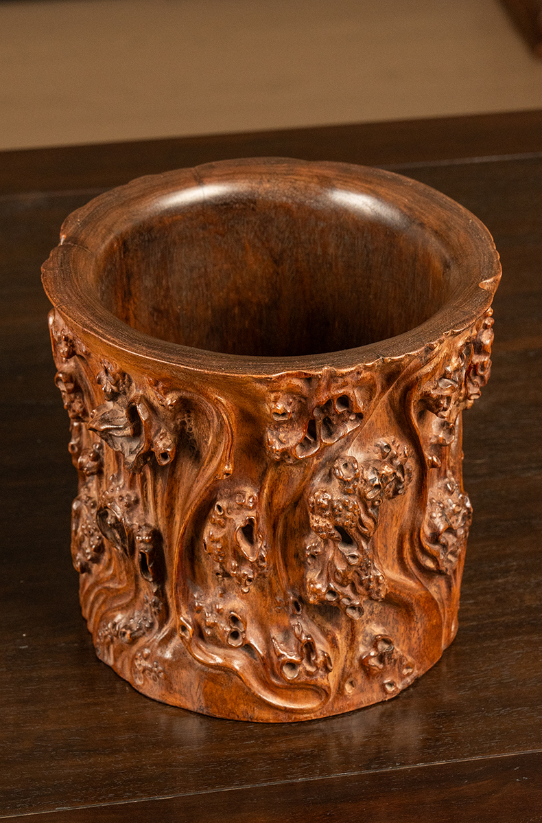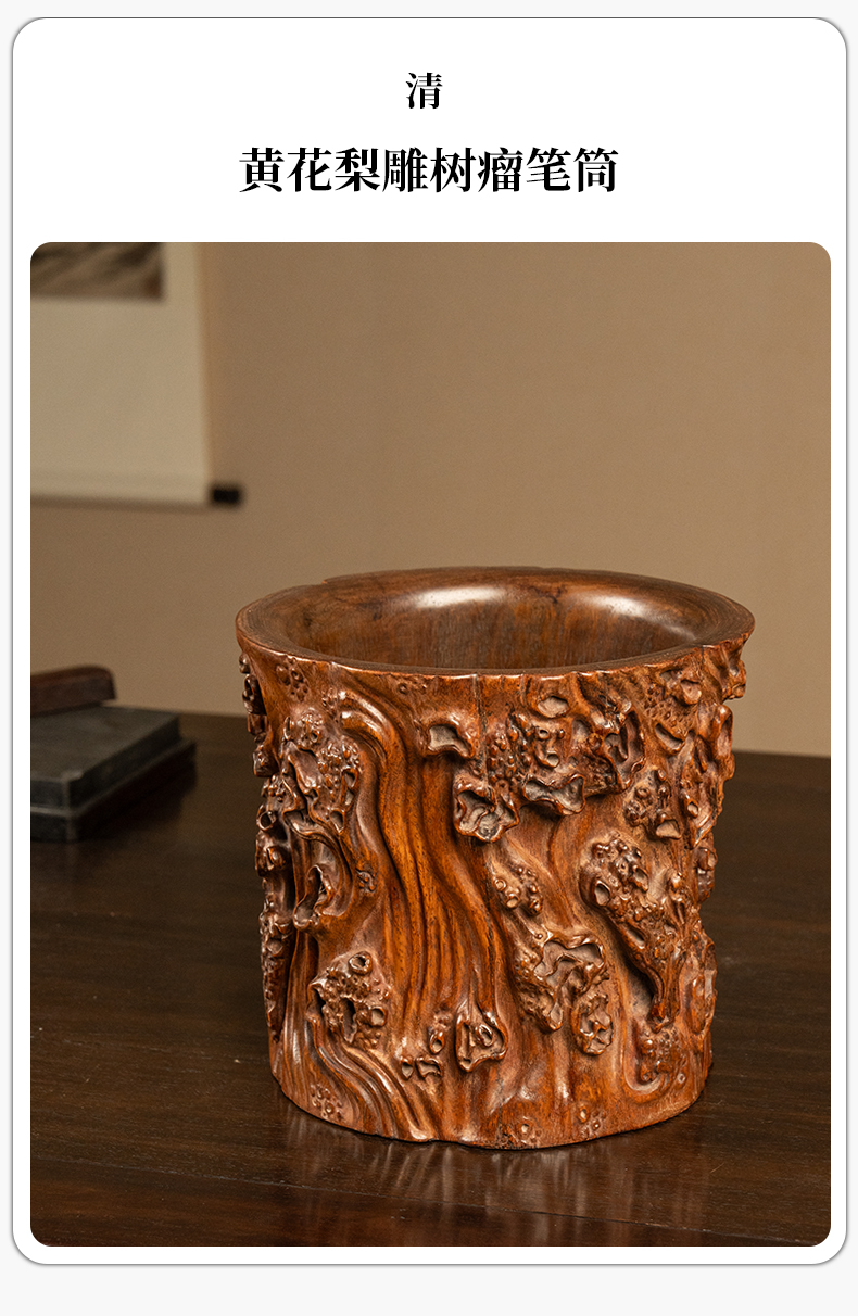 清 黄花梨雕树瘤笔筒