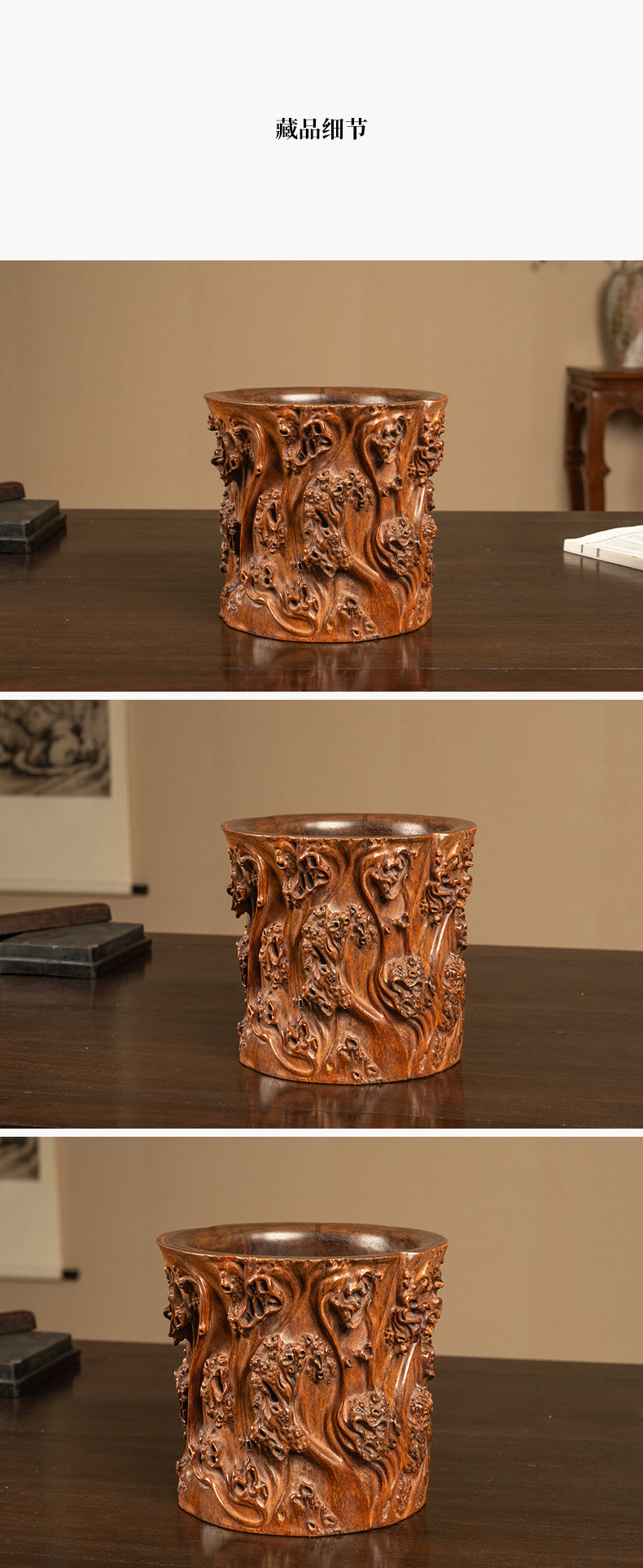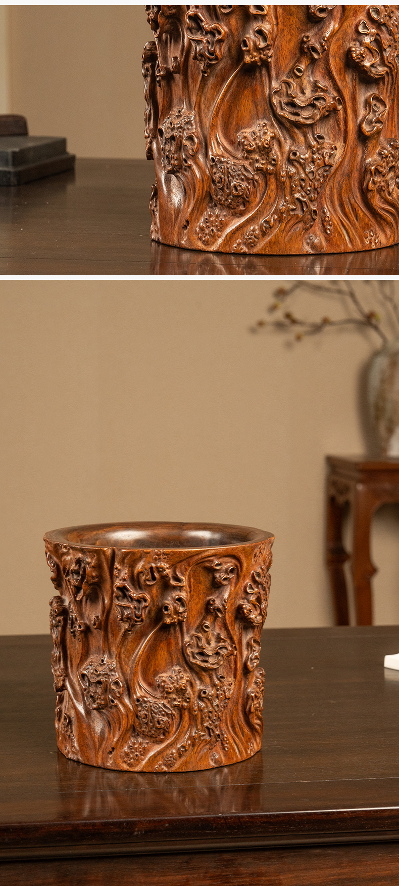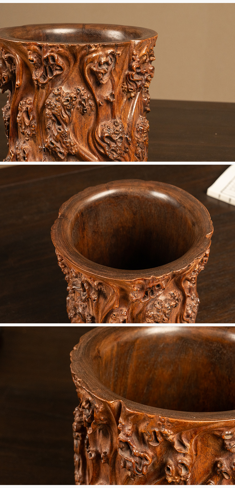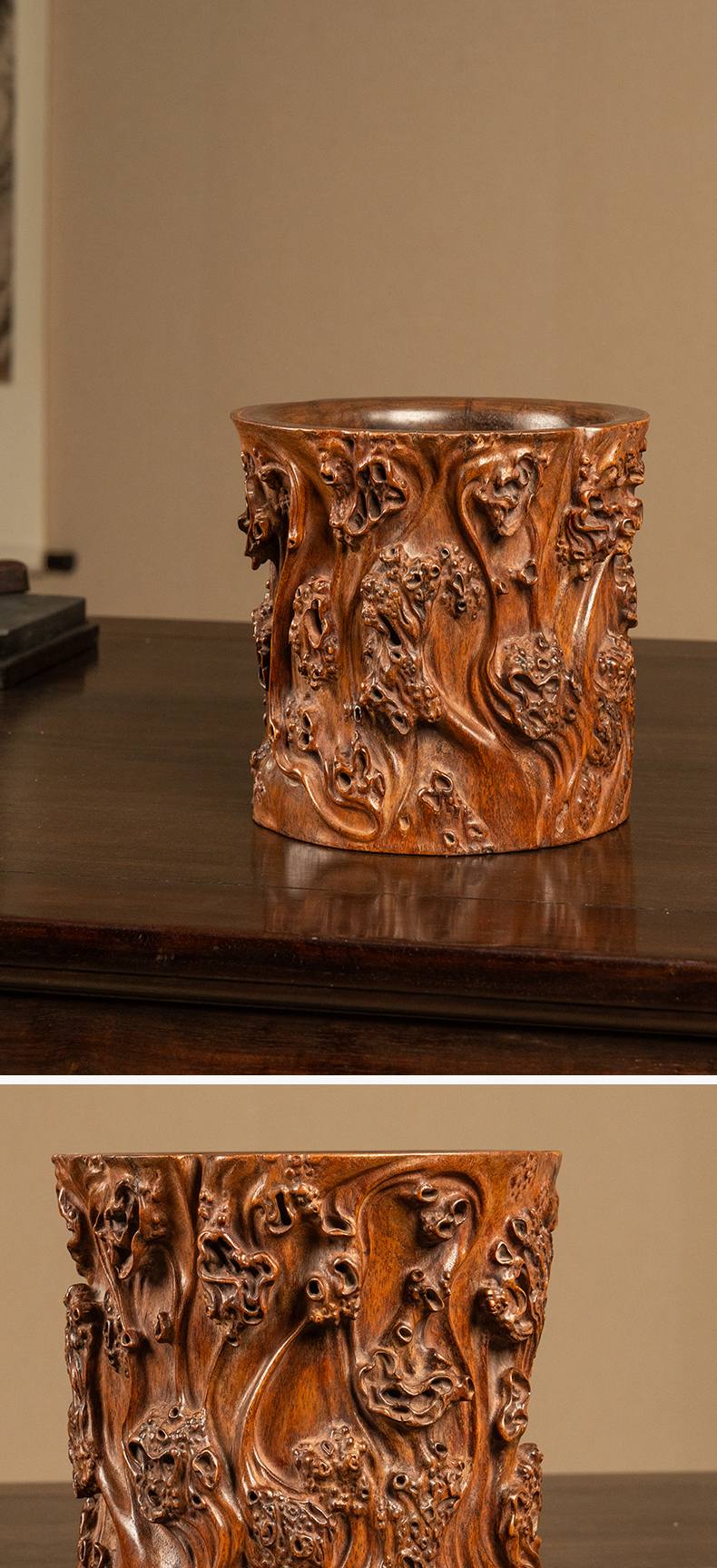 清 黄花梨雕树瘤笔筒