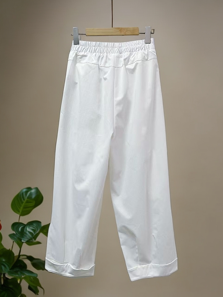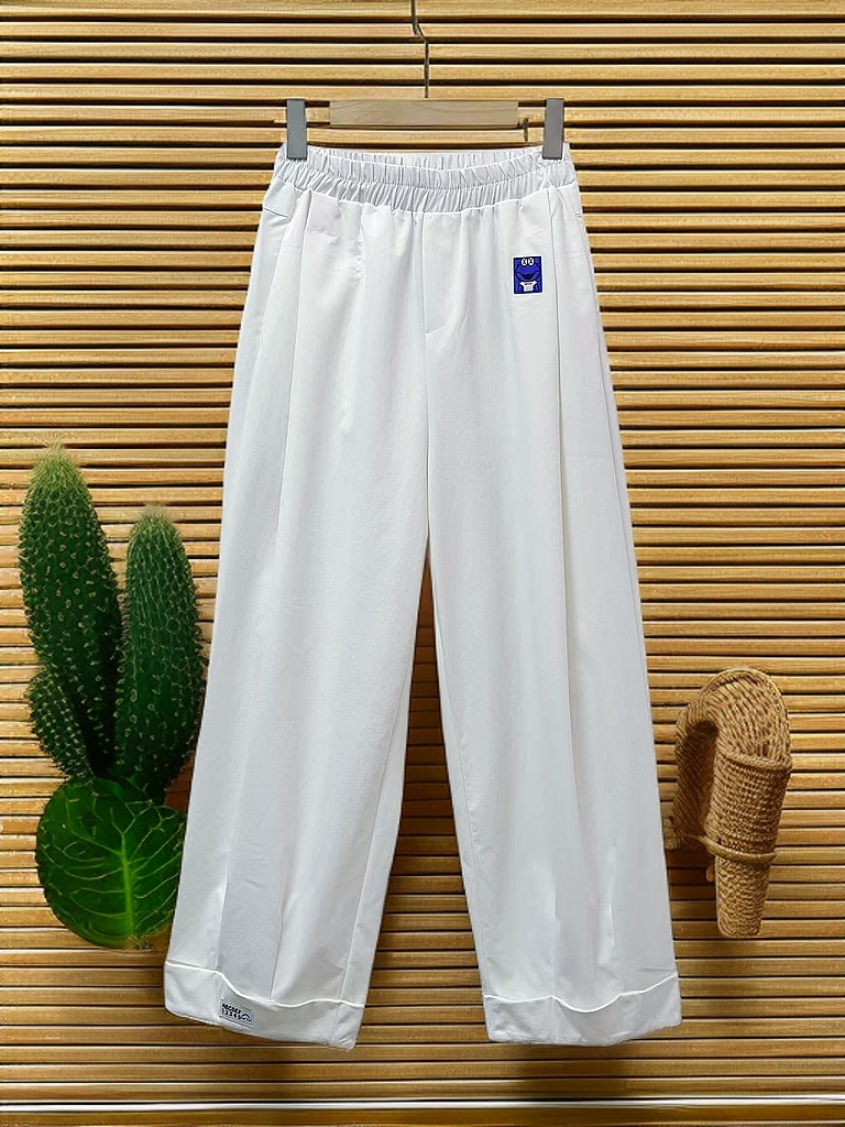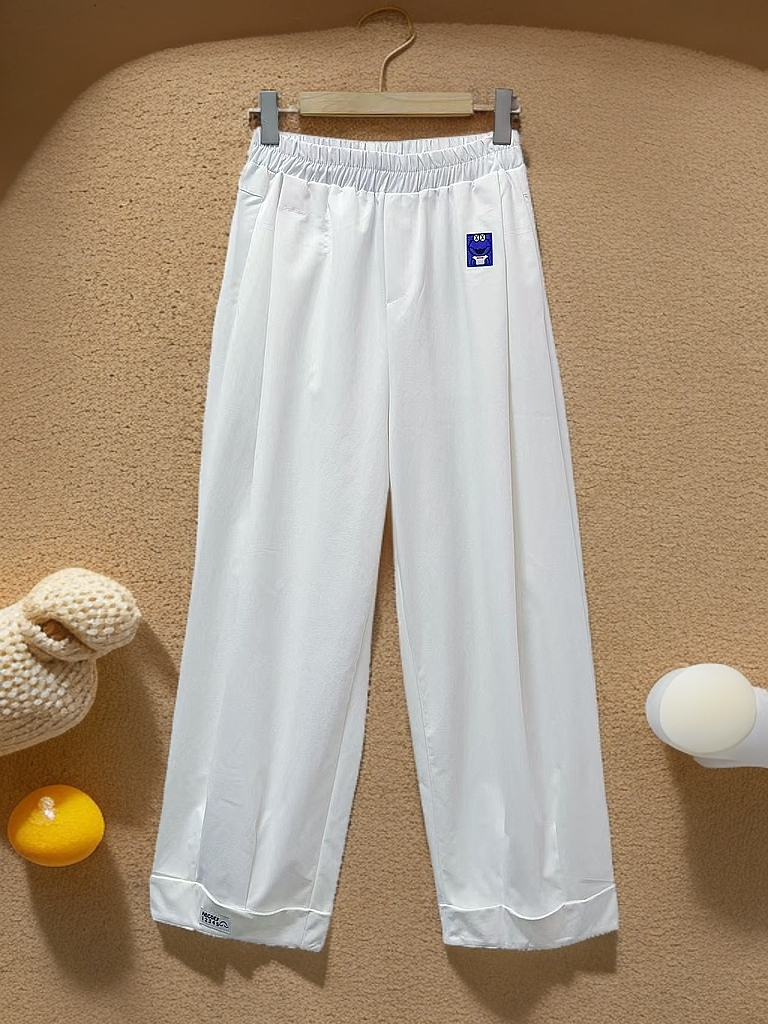 年中清仓-→0020九分卡通松紧腰卷边直筒裤-喜出