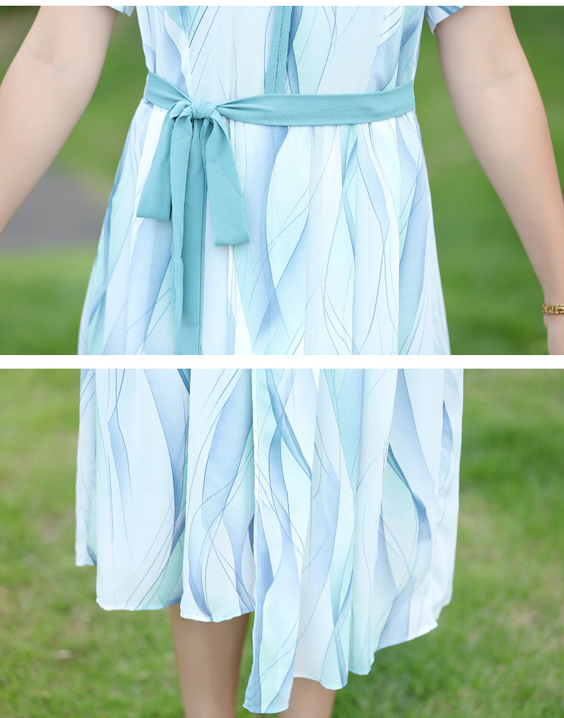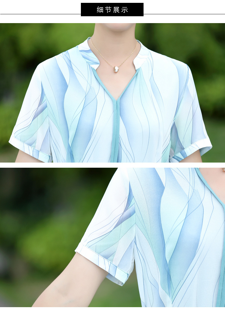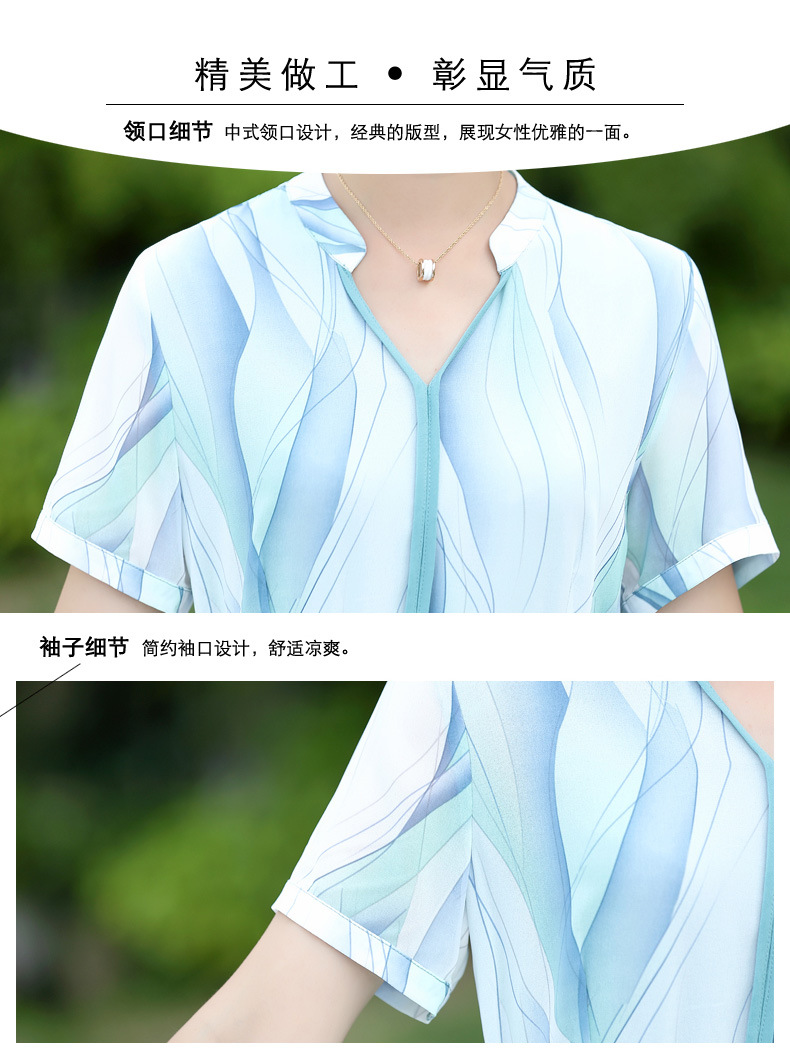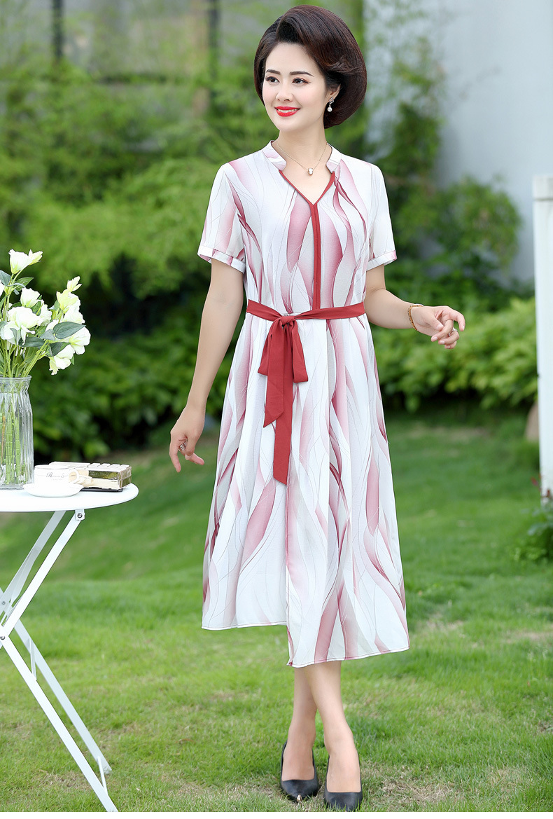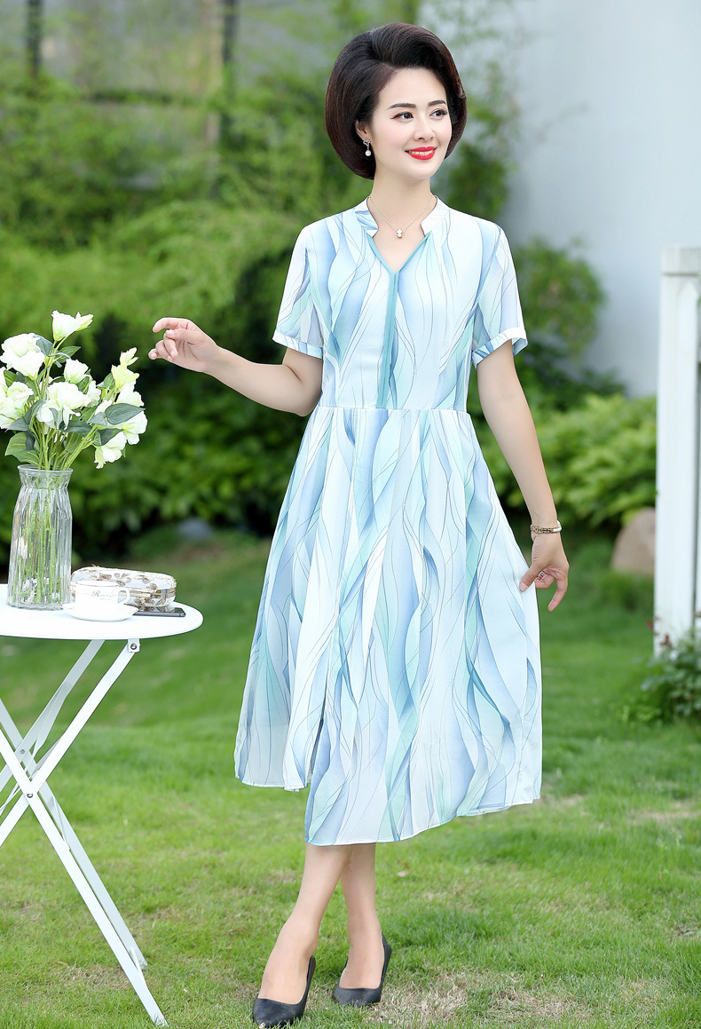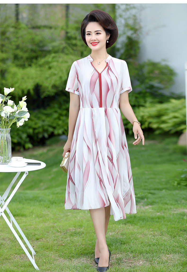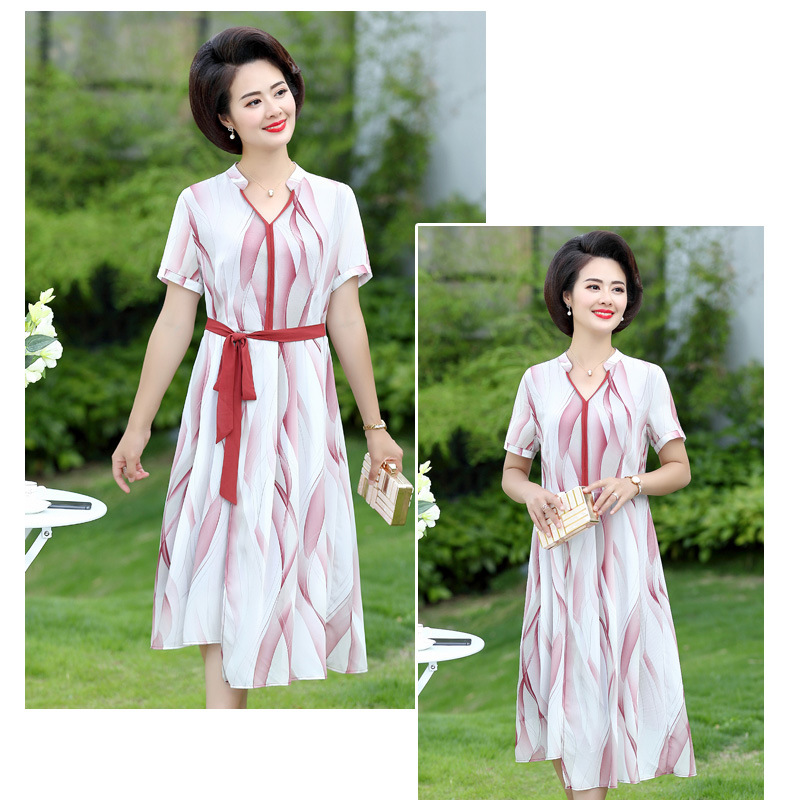 YMS-NAF9201妈妈雪纺洋气连衣裙新款中老年气质收腰过膝裙子