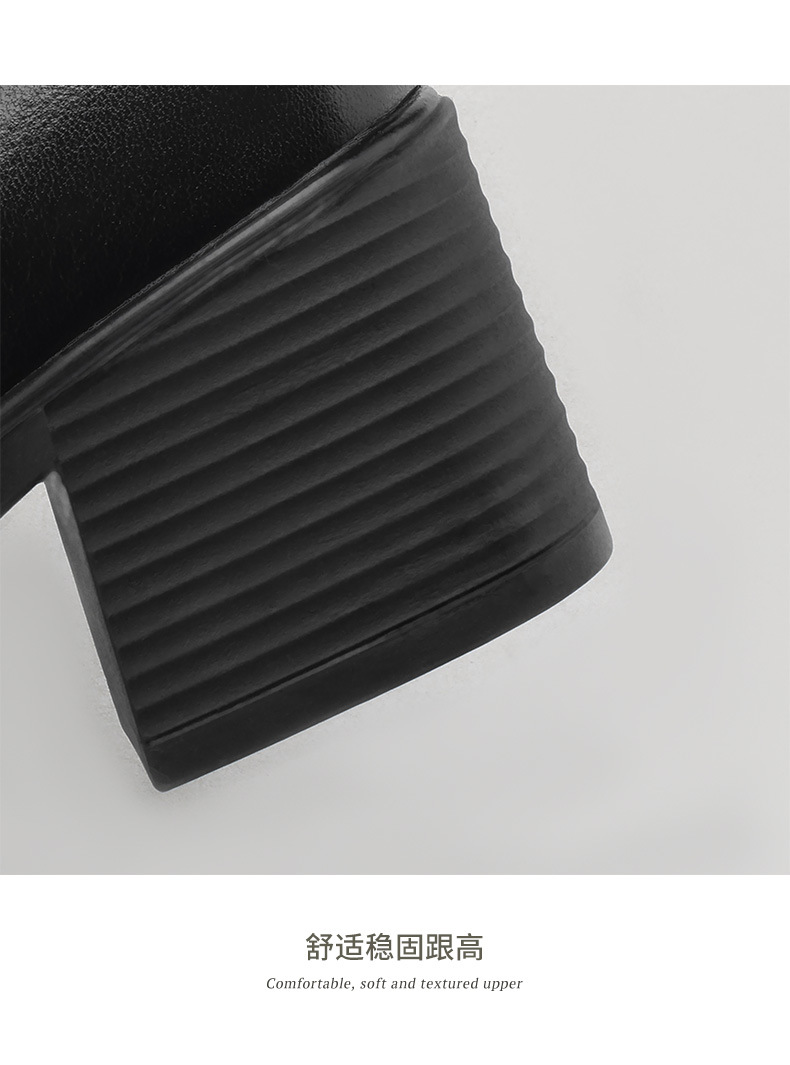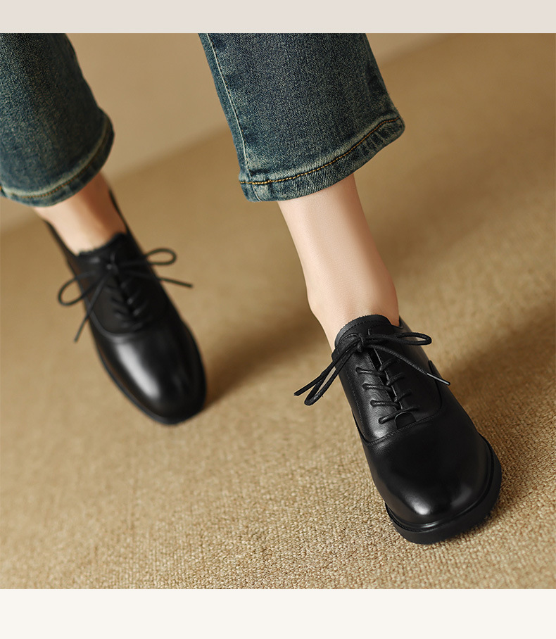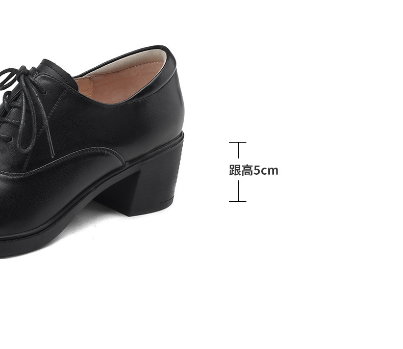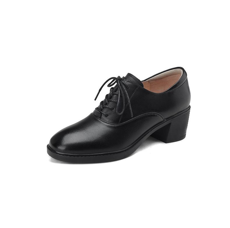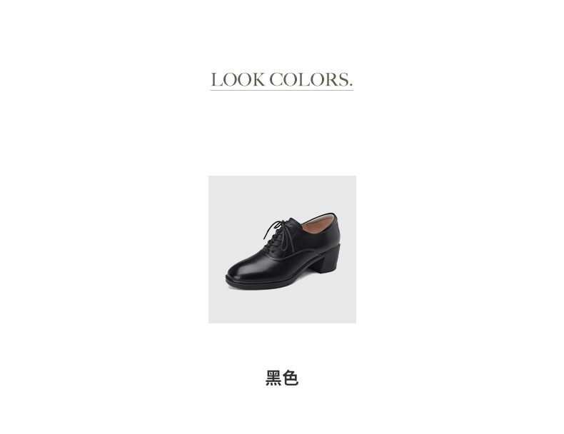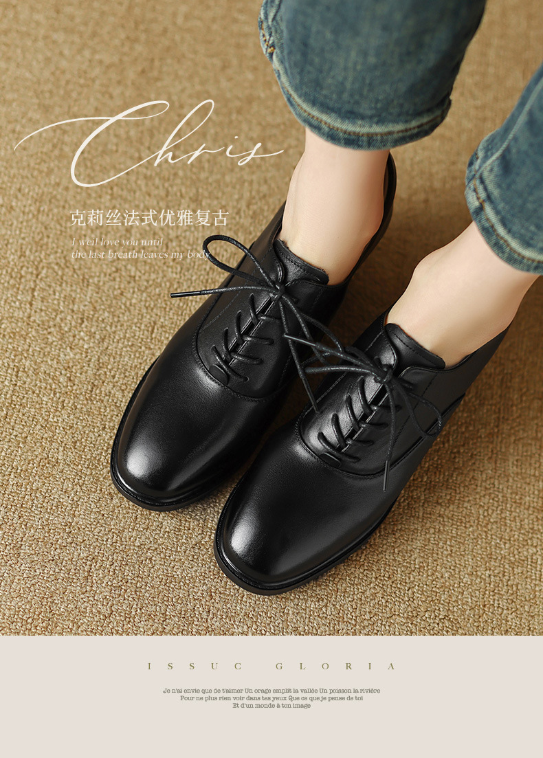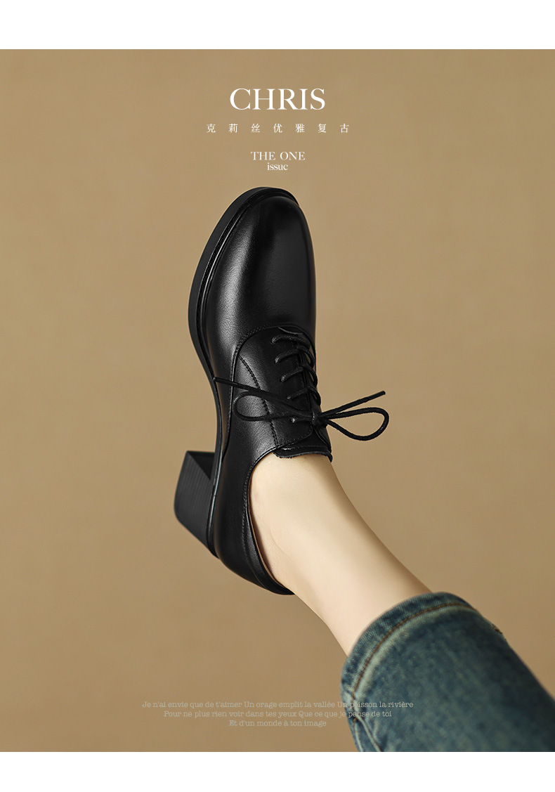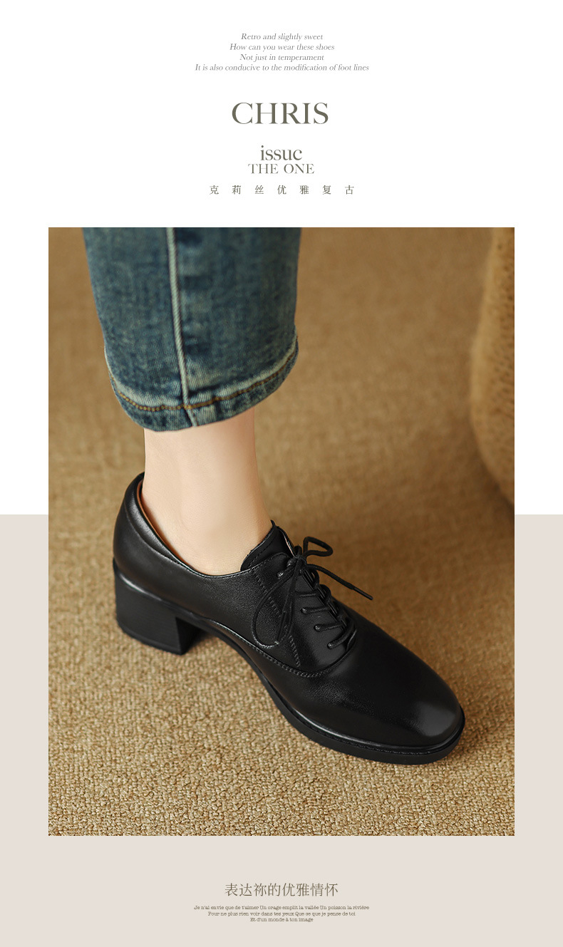 雀说 头层牛皮休闲单鞋软皮中粗跟方头女鞋18030