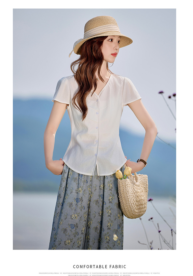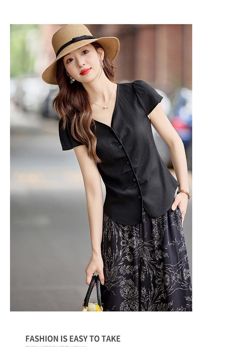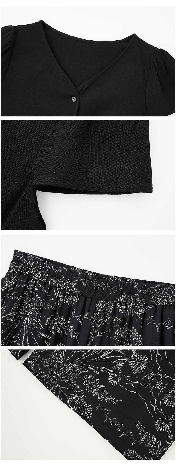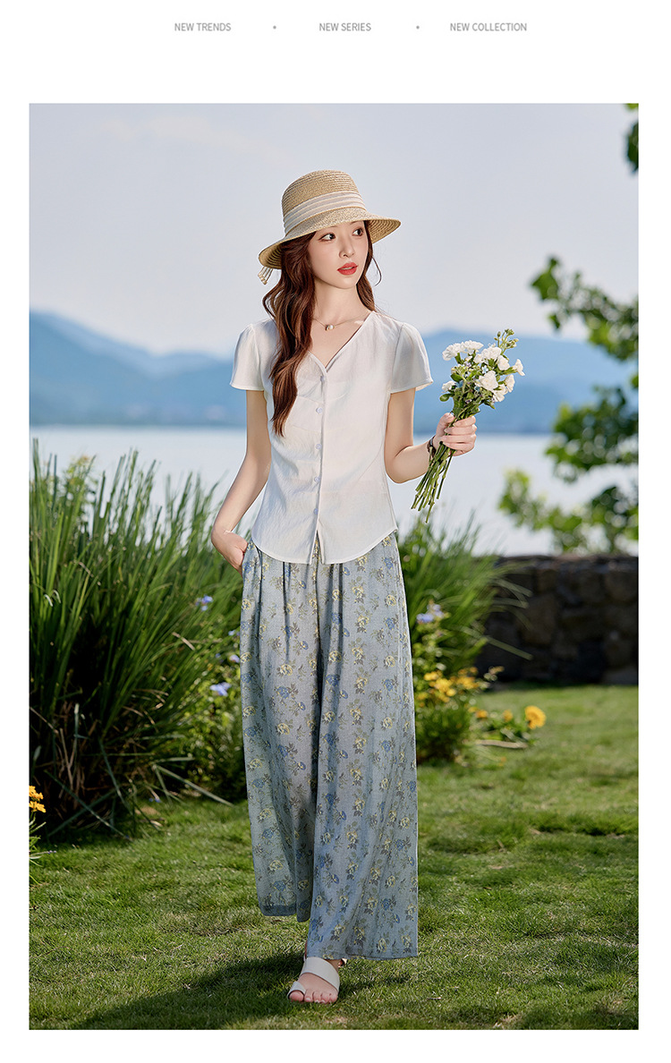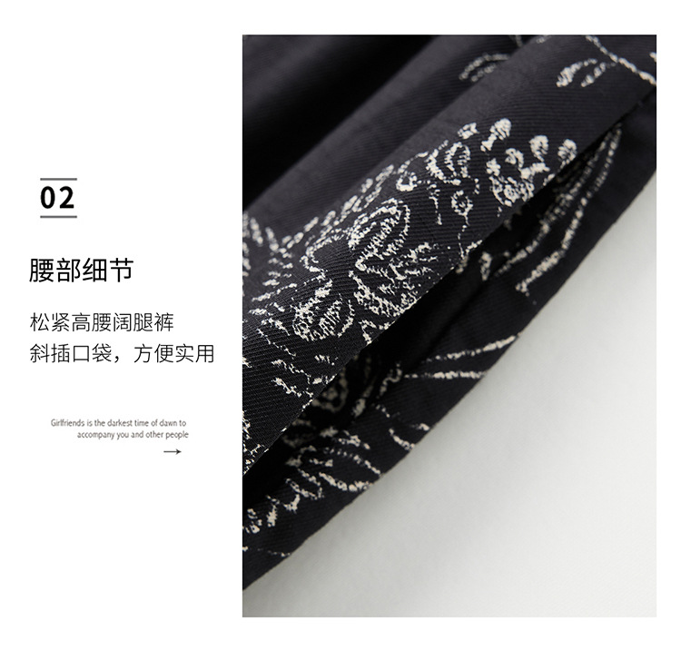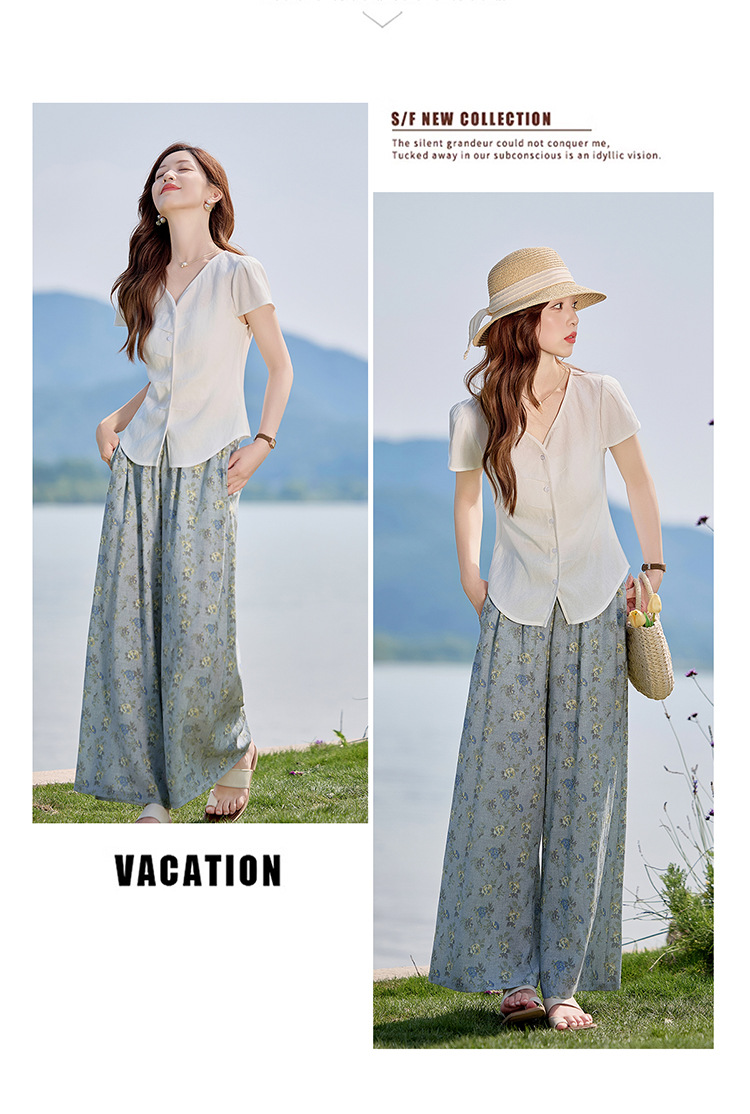 【预售3天】时尚休闲套装2025年夏季新款V领短袖上衣+花色阔腿裤两件套WWYG2532B