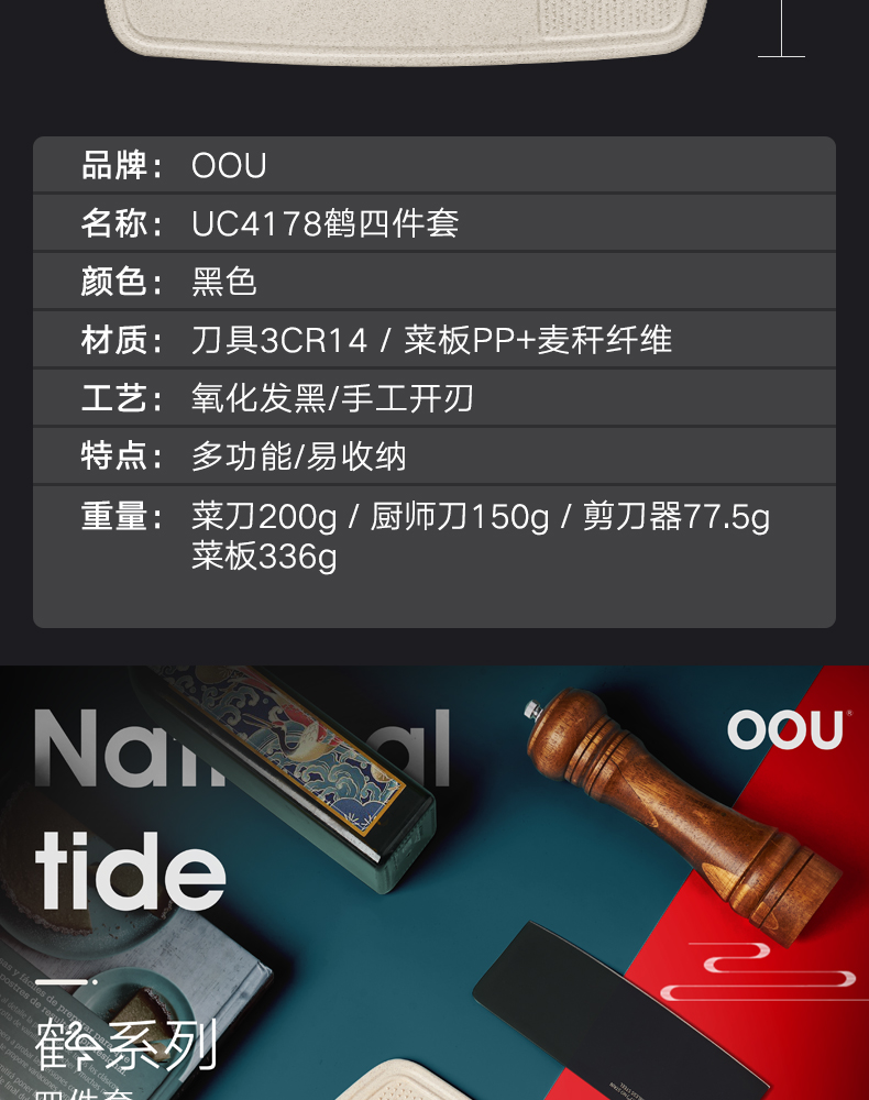 【新品上新】中国OOU鹤系列四件套UC4178 厨房刀具