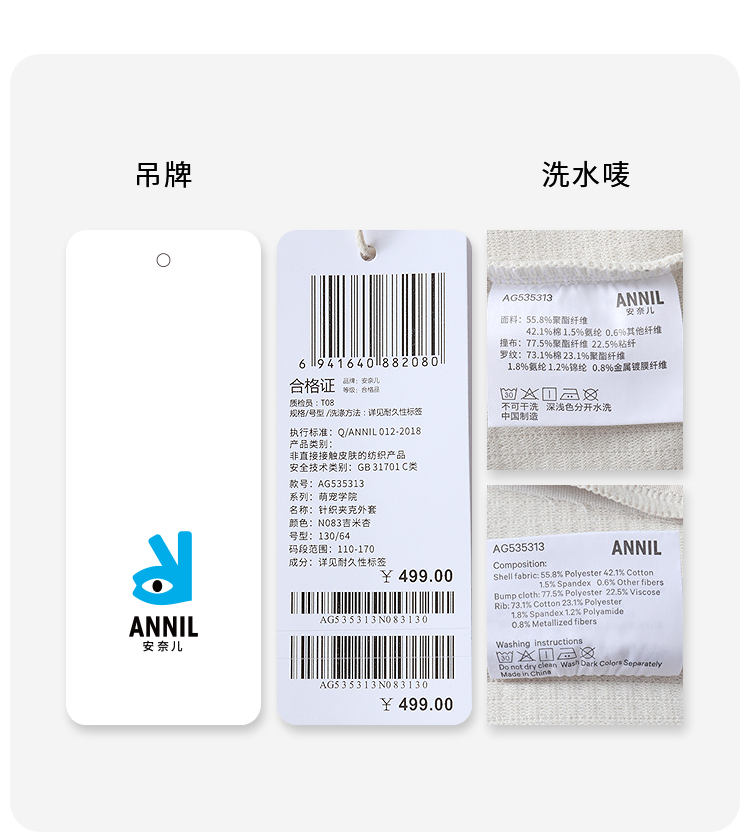 【实体店同款】女童针织夹克外套秋季新款安奈儿童装AG535313