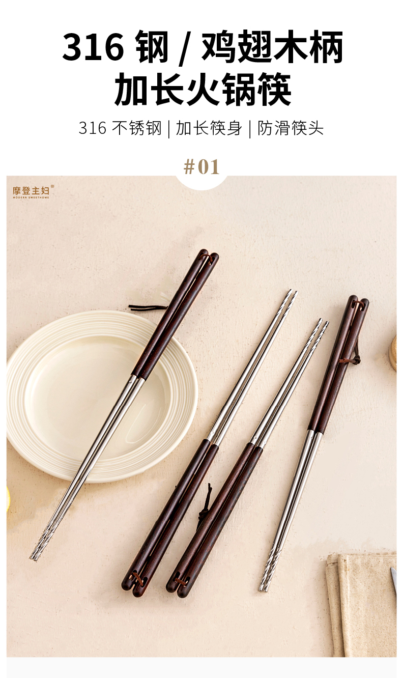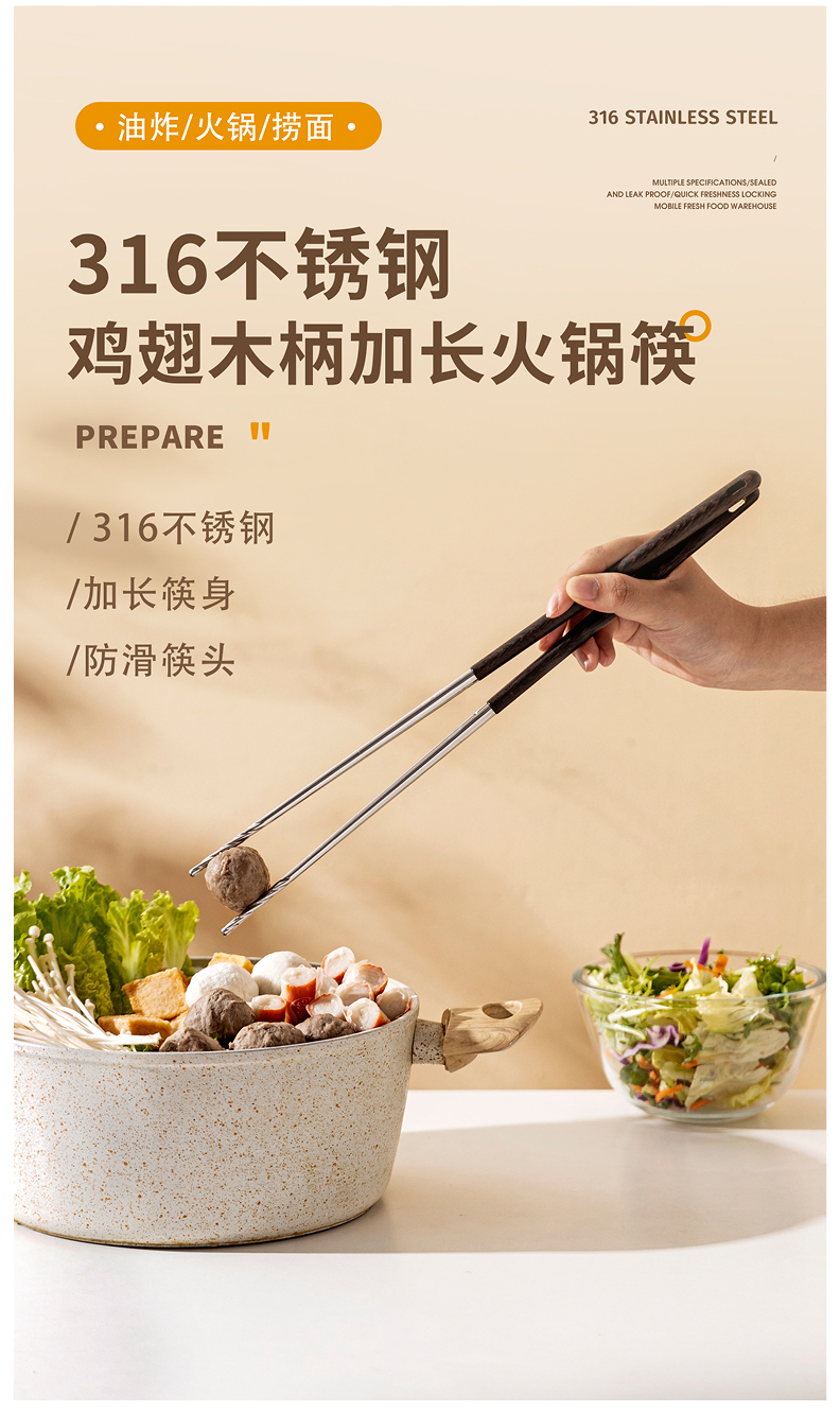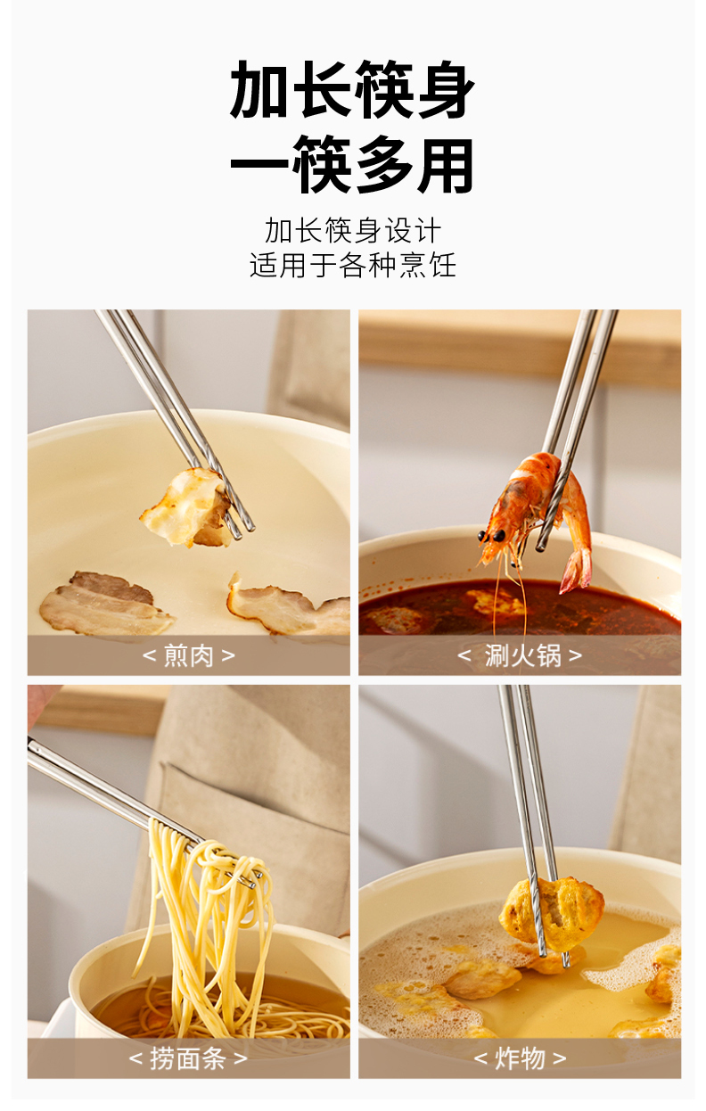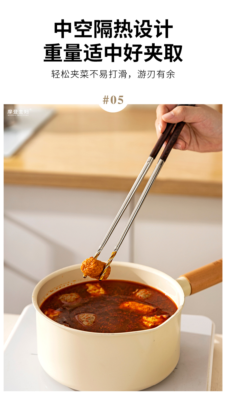 摩登主妇316不锈钢筷子厨房专用炸东西的长筷子油炸耐高温火锅筷