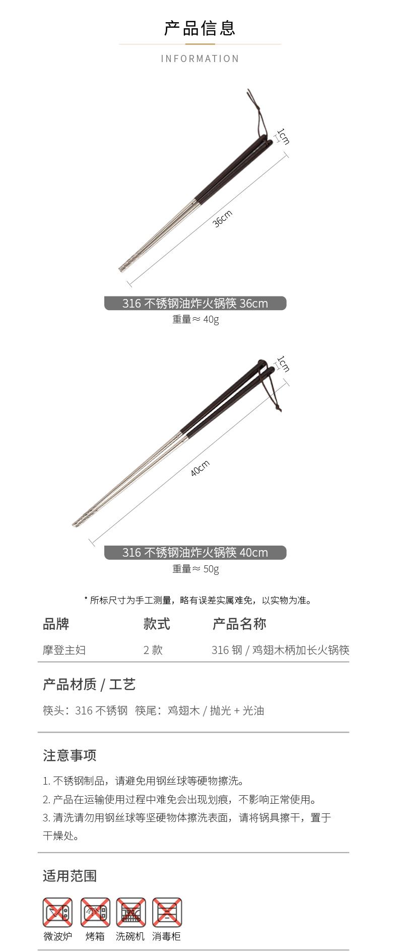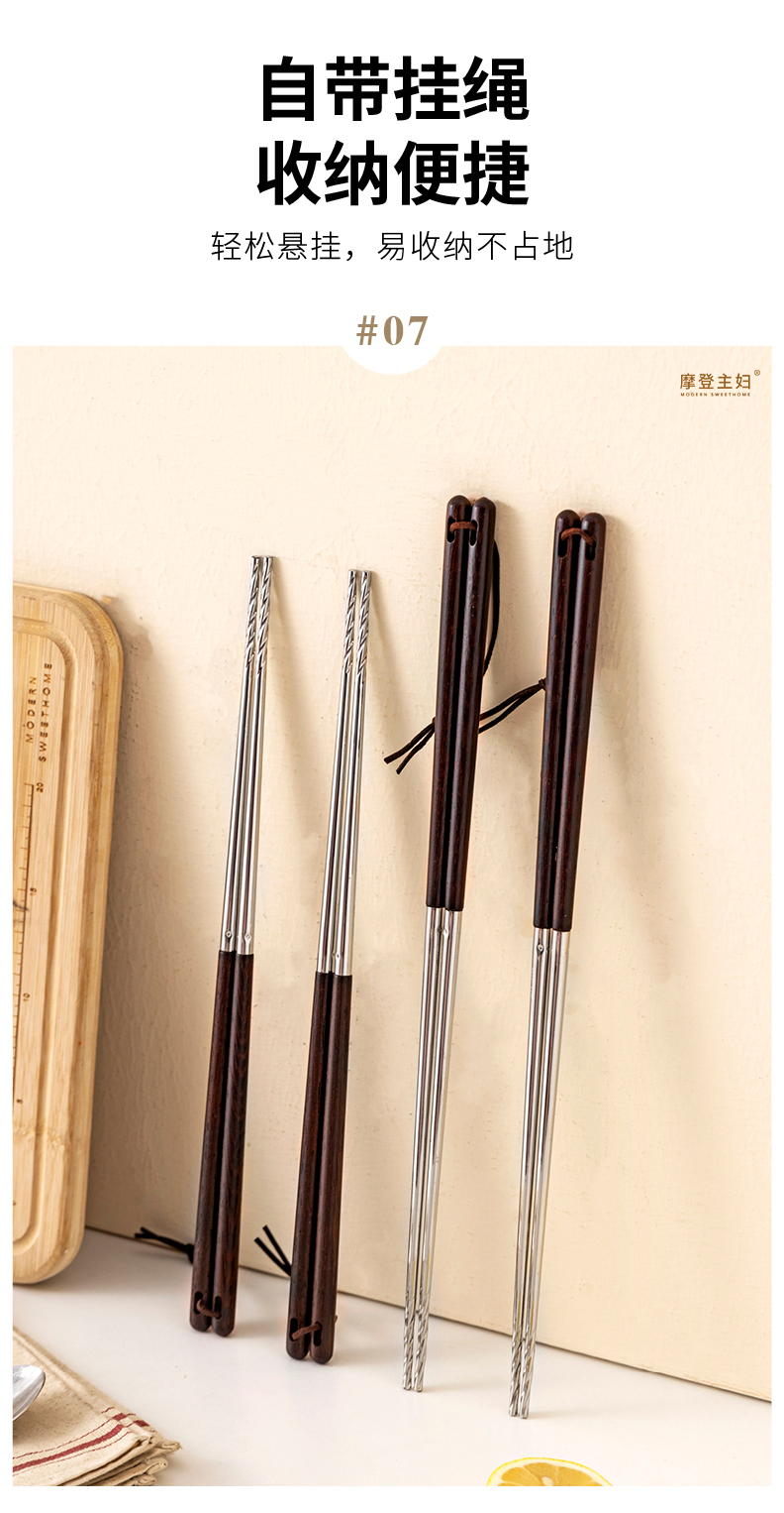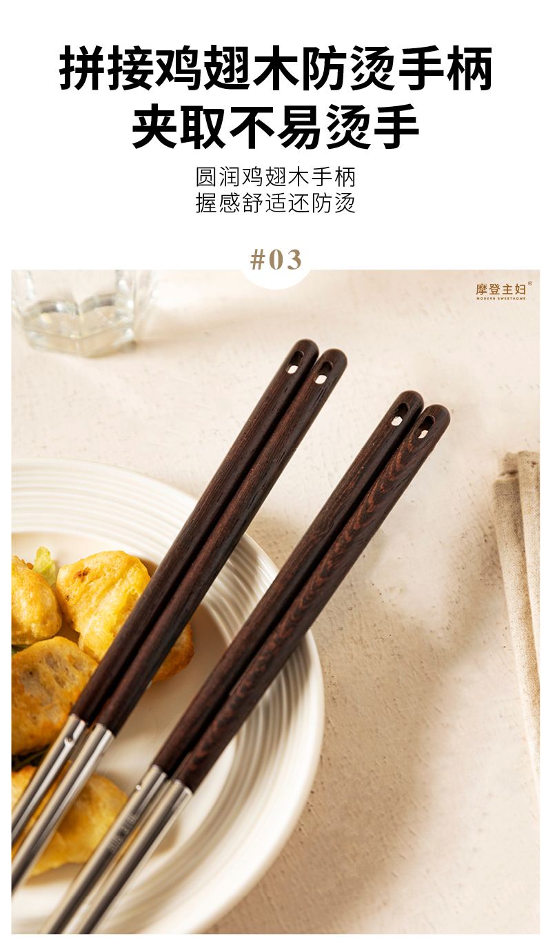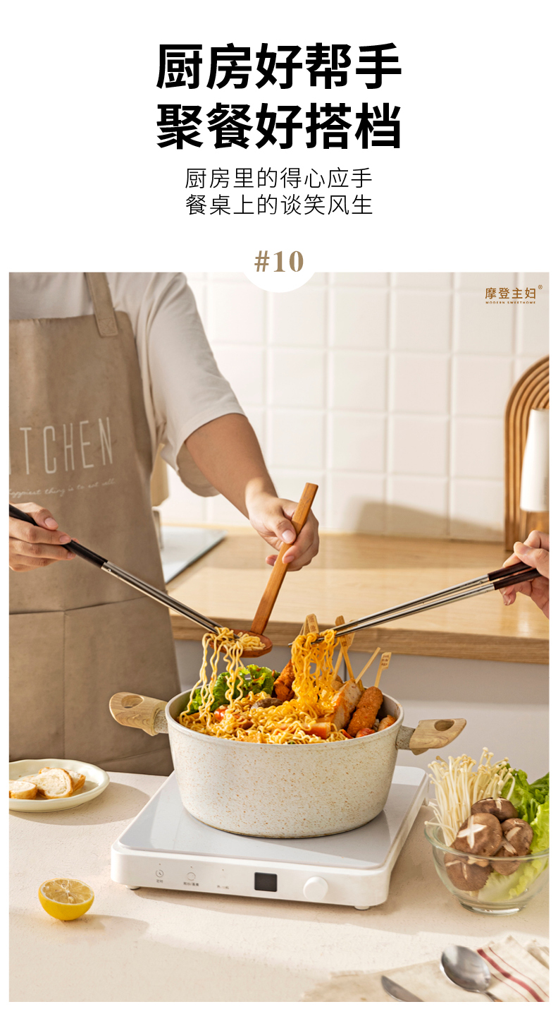 摩登主妇316不锈钢筷子厨房专用炸东西的长筷子油炸耐高温火锅筷