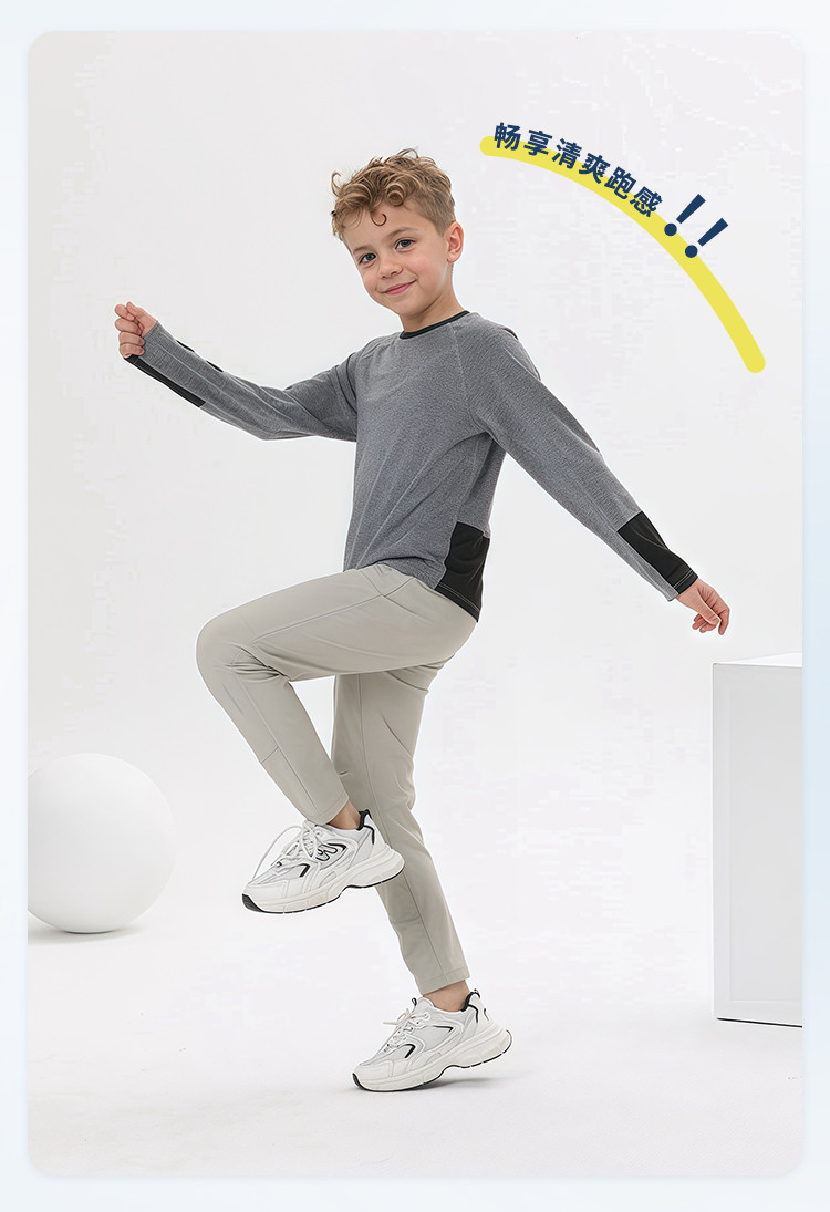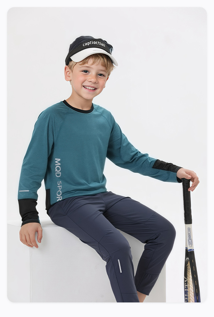 【MQD】童装男女童春夏新款儿童时尚拼接反光字母透气高弹跑步长T恤
