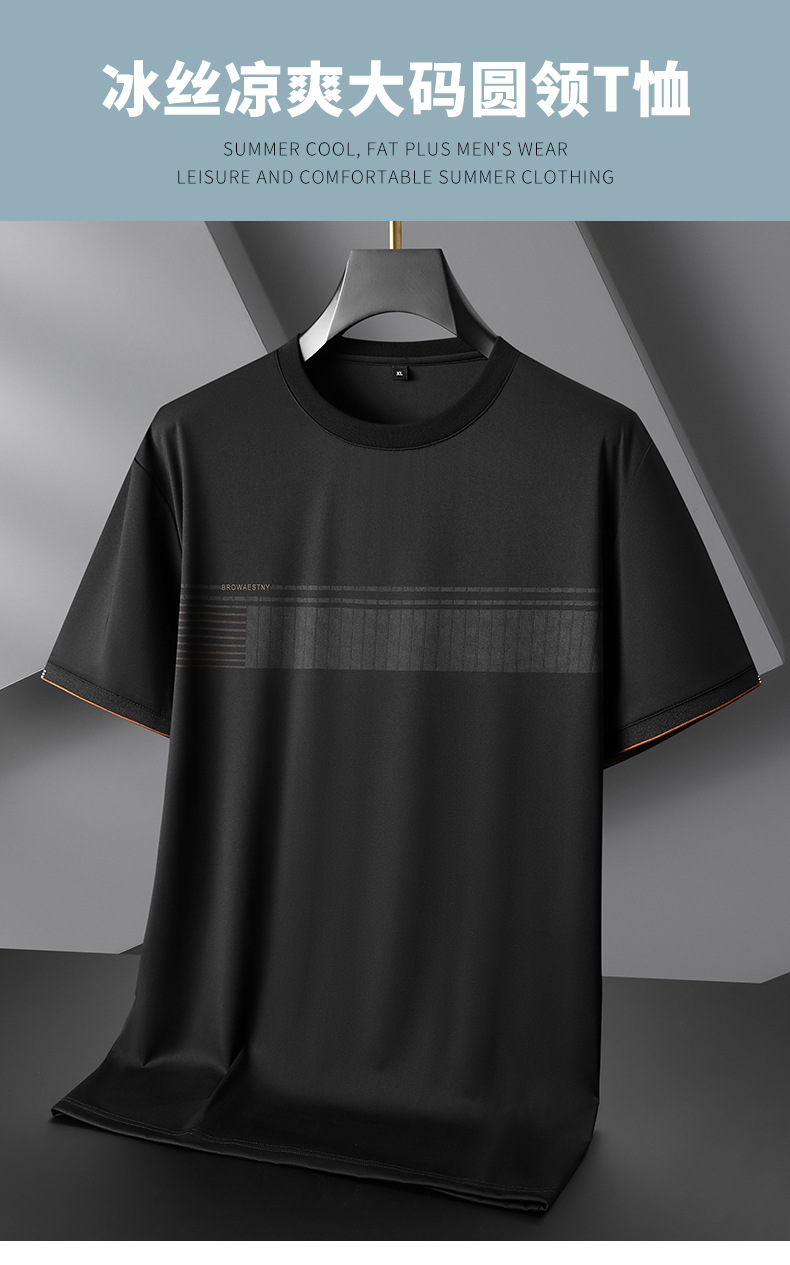 【冰丝】【DPF】大依优型大码短袖T恤运动夏装冰丝凉感半袖体恤衫加肥加大休闲圆领胖子上衣男士
