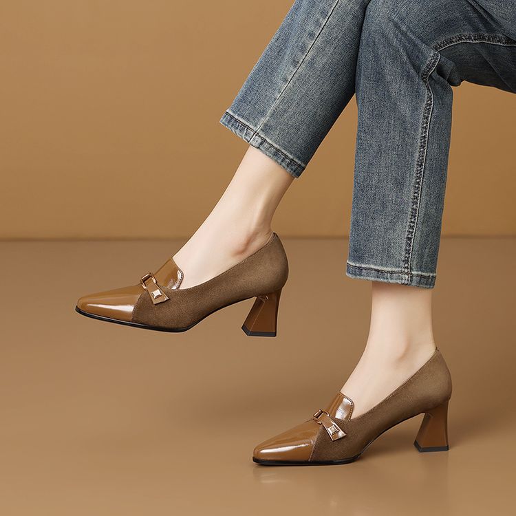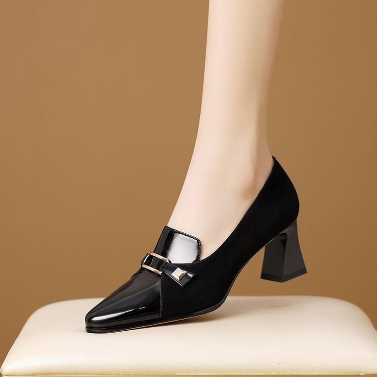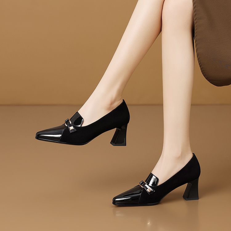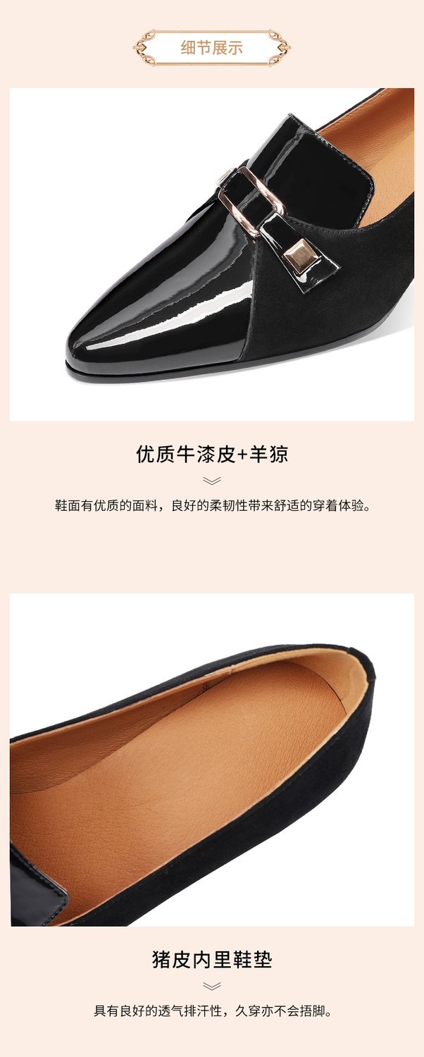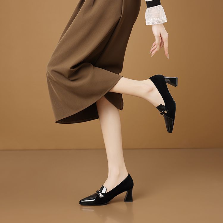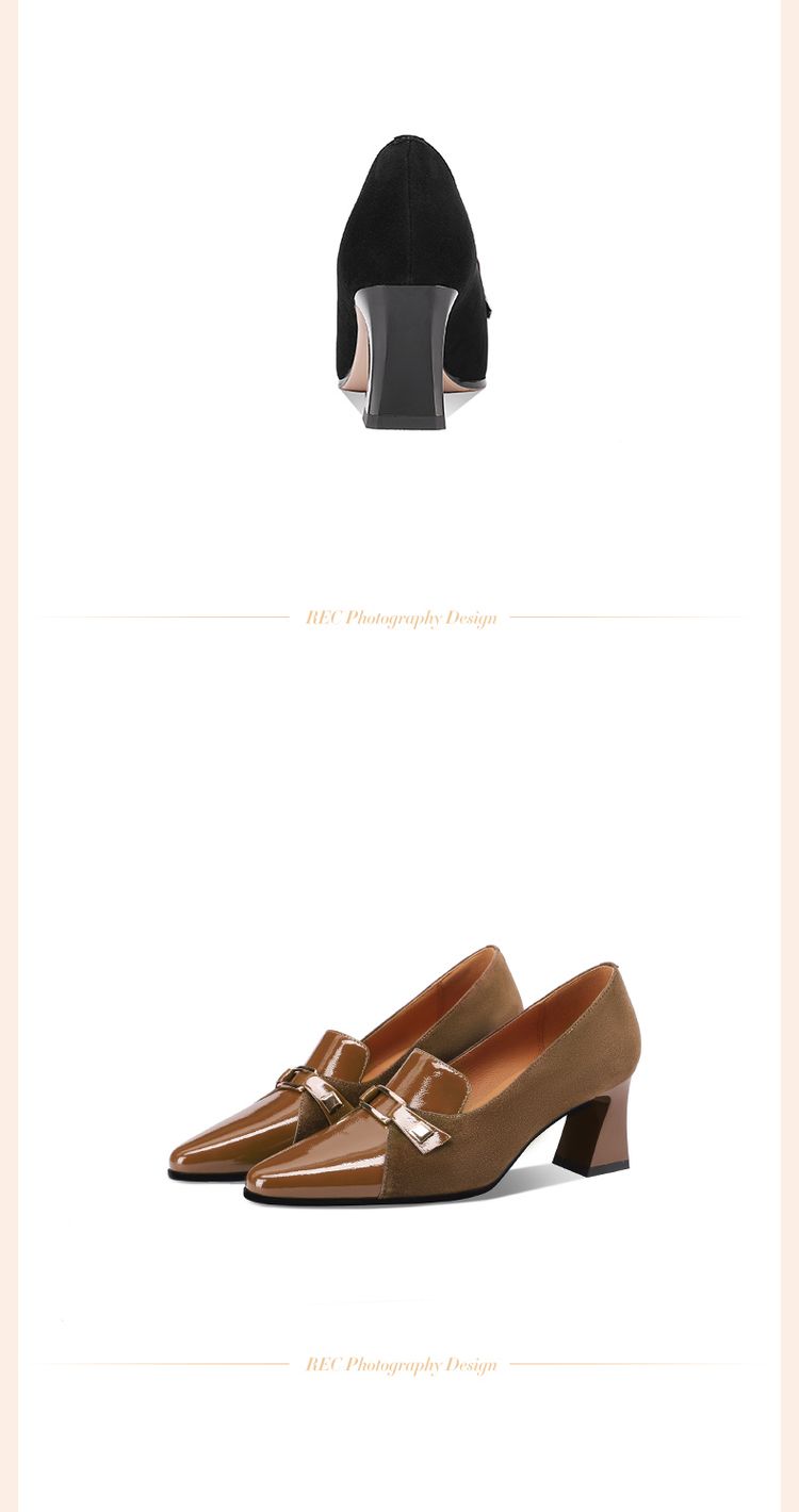 【预售5天】新款磨砂羊皮牛漆皮搭配粗跟中口方圆头高跟单鞋女鞋子HY&H3570