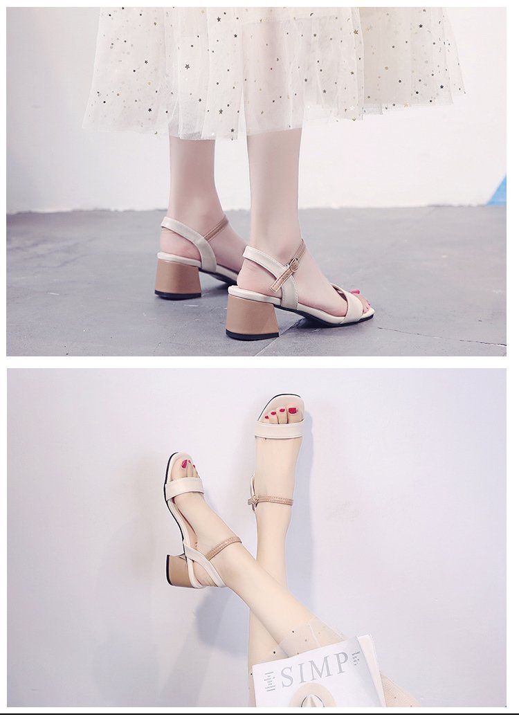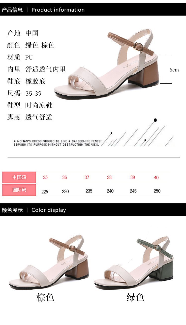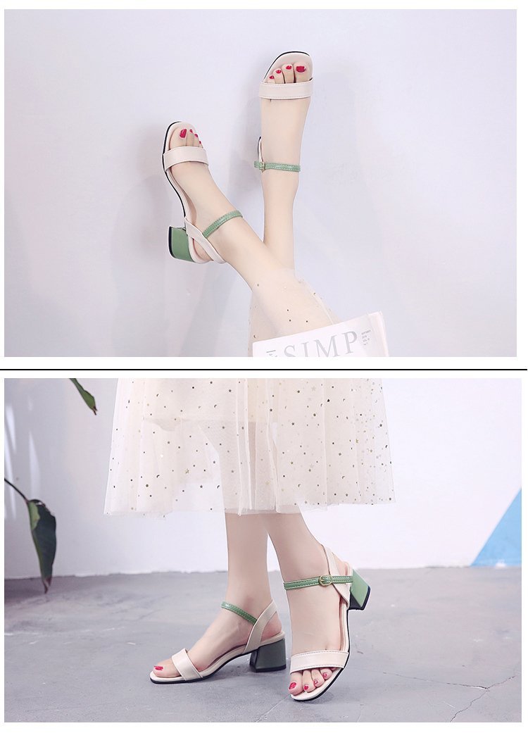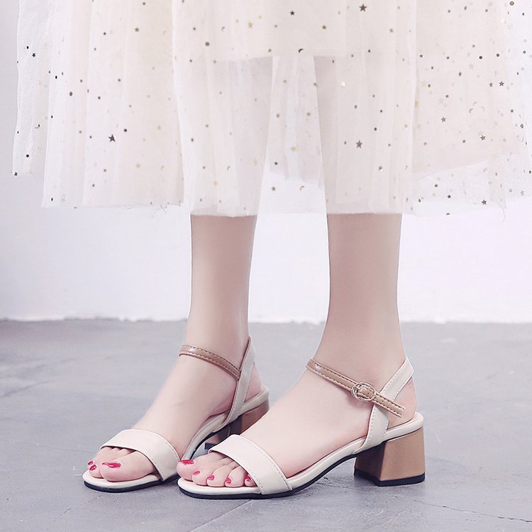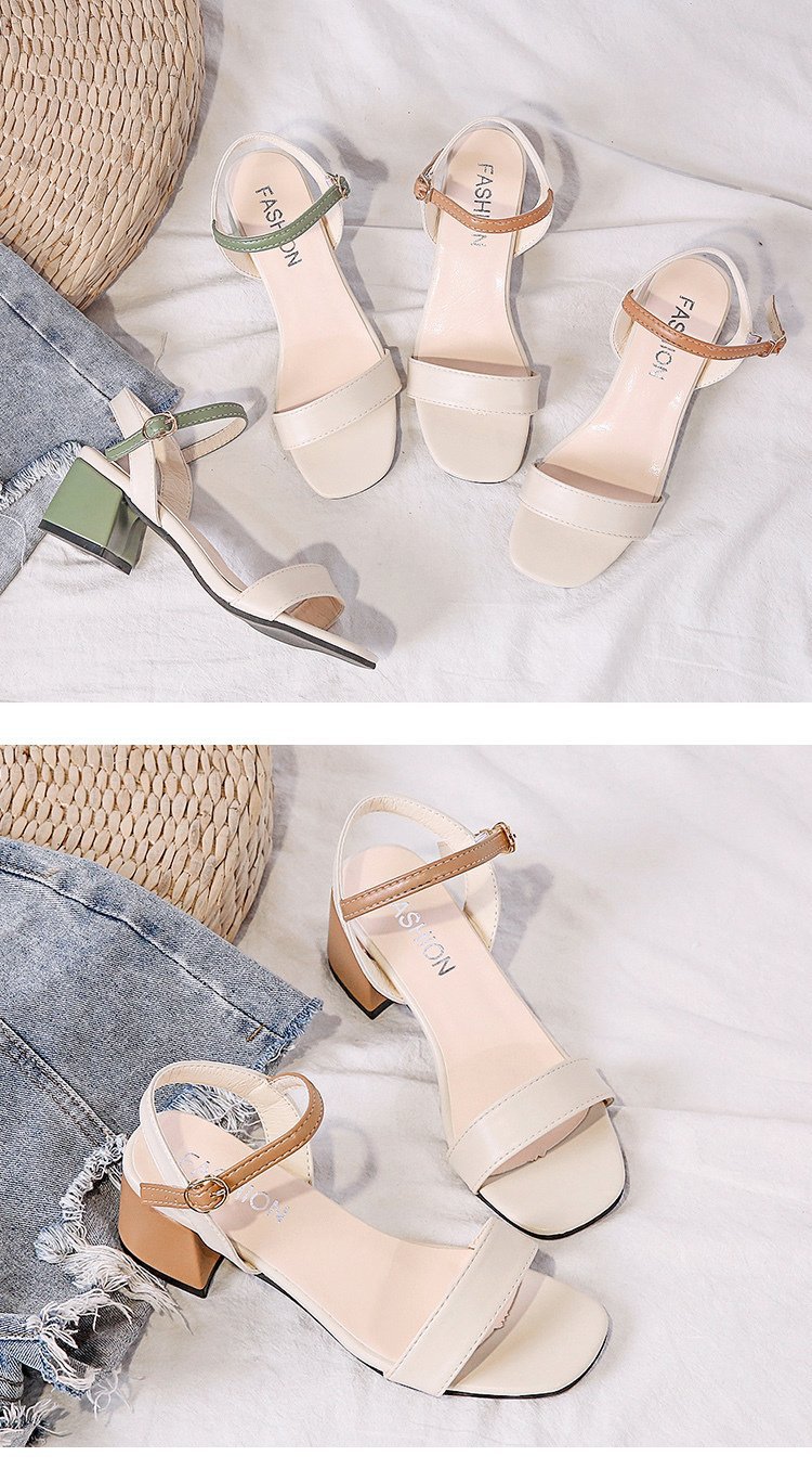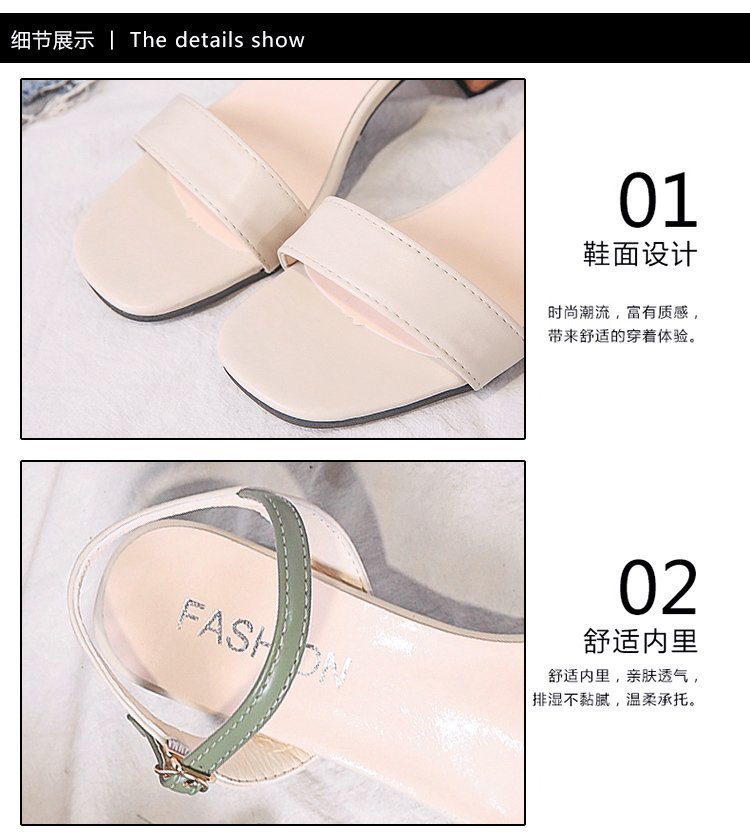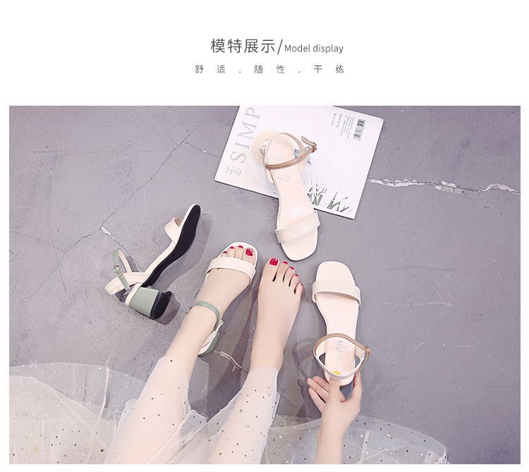 HCJ-K1919简约一字带扣凉鞋女2020新款夏季百搭仙女风粗跟凉鞋