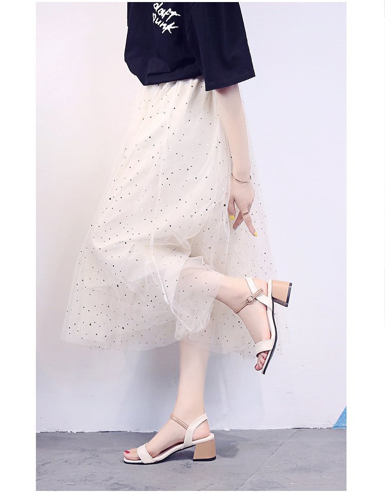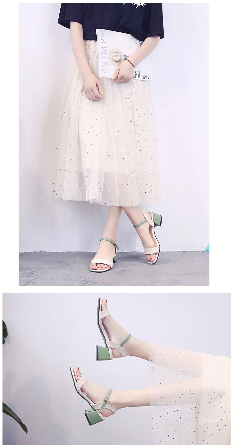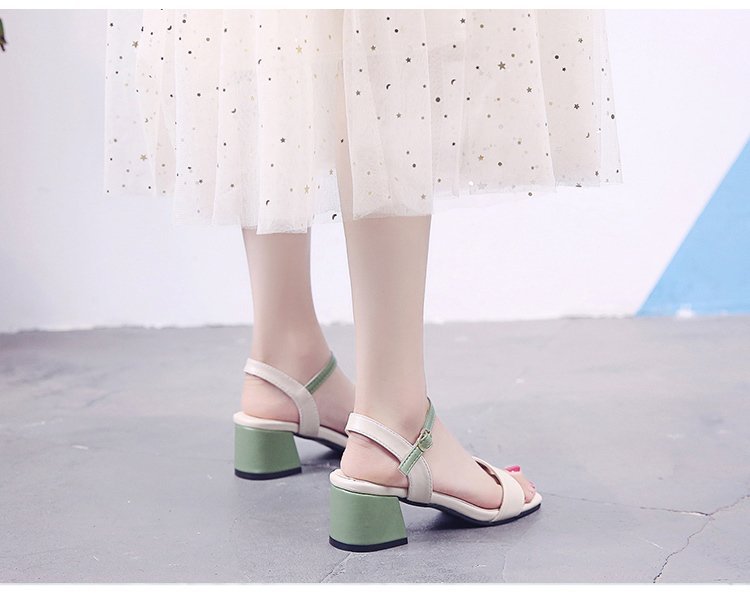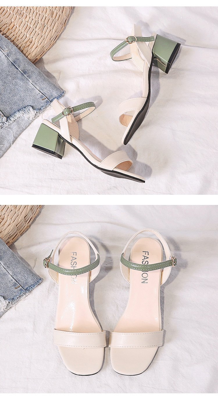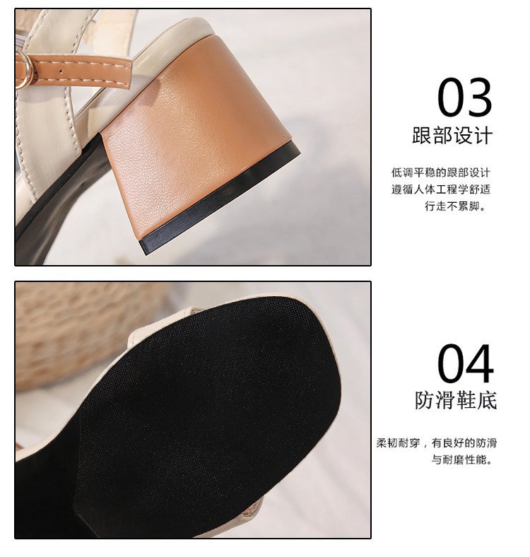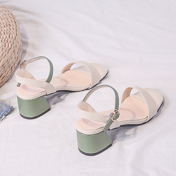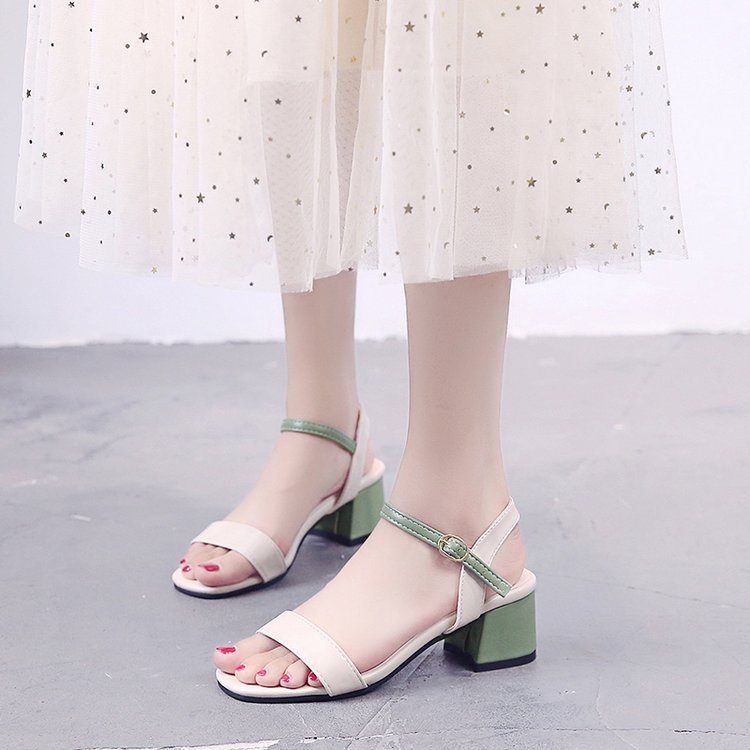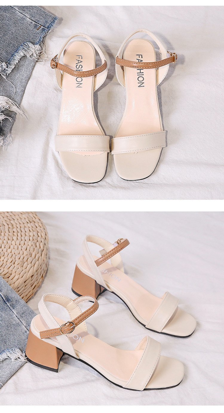 HCJ-K1919简约一字带扣凉鞋女2020新款夏季百搭仙女风粗跟凉鞋