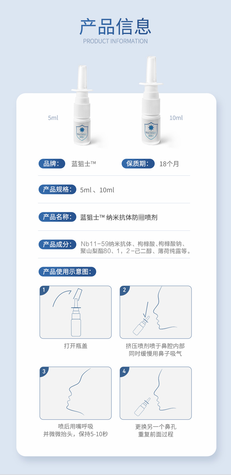 【品牌直发】蓝狙士生物液体口罩纳米抗体防冠喷剂