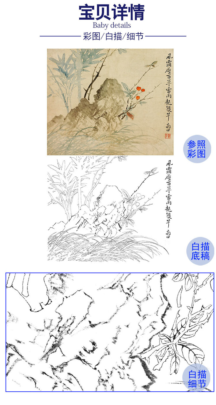四尺六尺竖幅工笔花鸟白描底稿-王庆升锦鸡-RT09
