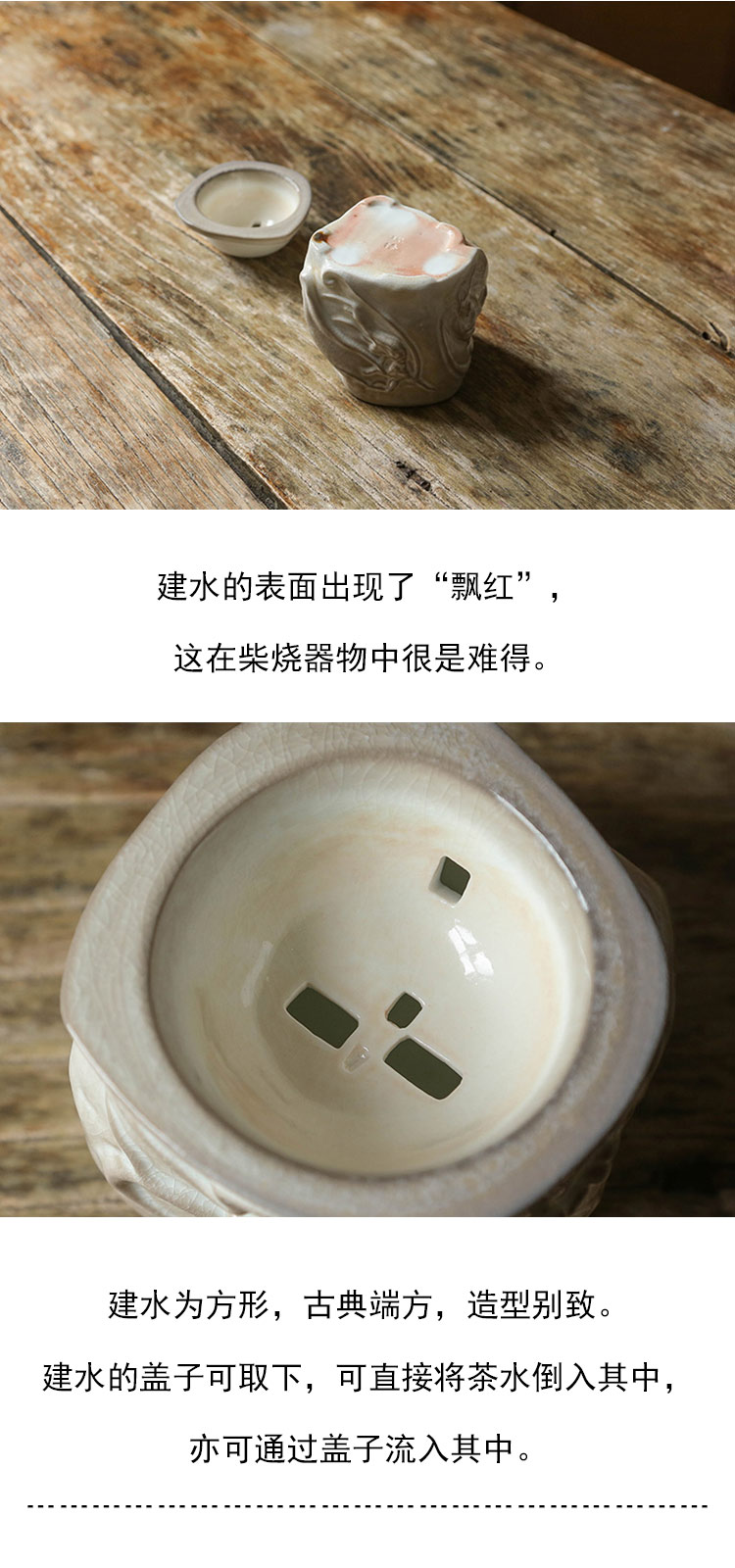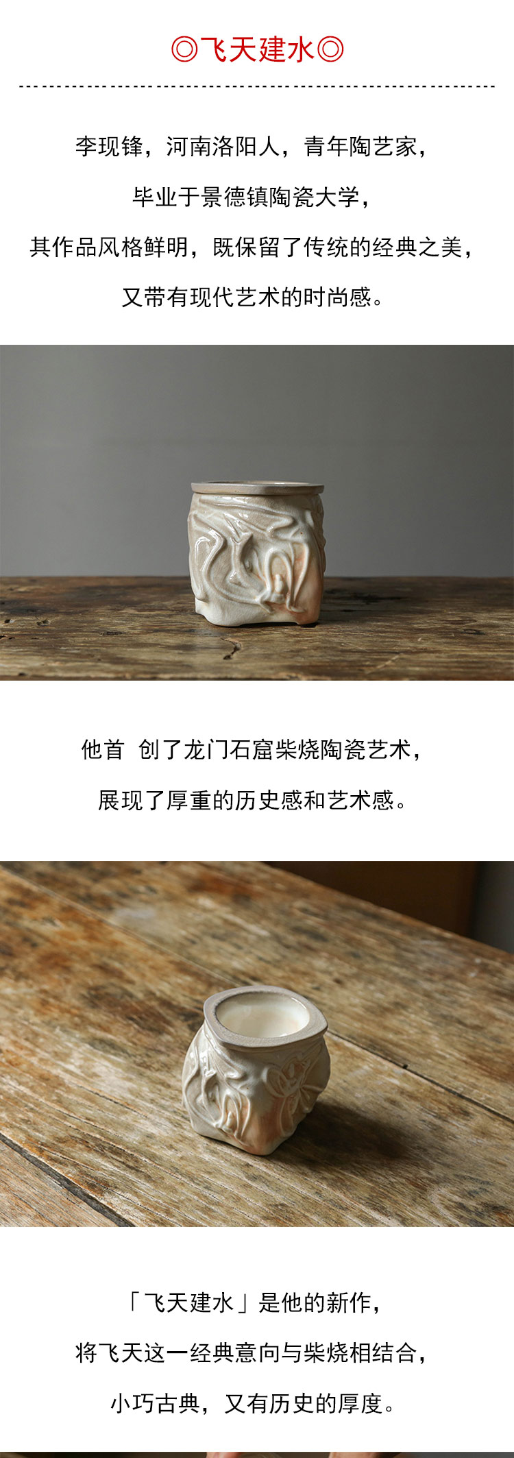 茶香记 李现锋柴烧飞天建水230ml景德镇陶瓷水盂堆塑雕刻小巧灵动