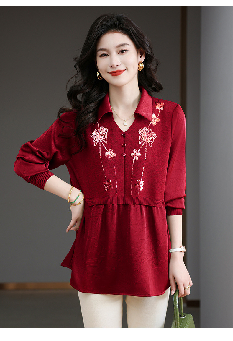 CC-BSM-725polo领假两件衬衫女士宽松针织上衣2025春秋季新款雪纺拼接衬衣