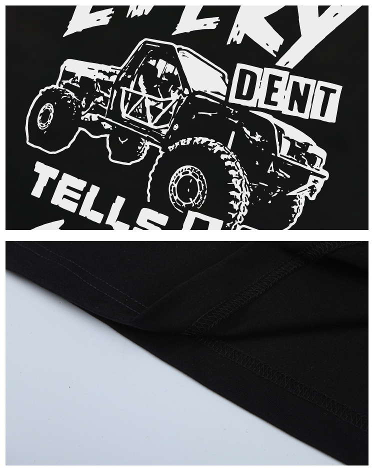 自由基地简约黑白越野车图案印花春夏新款团队队服户外休闲短袖T NMT-1986