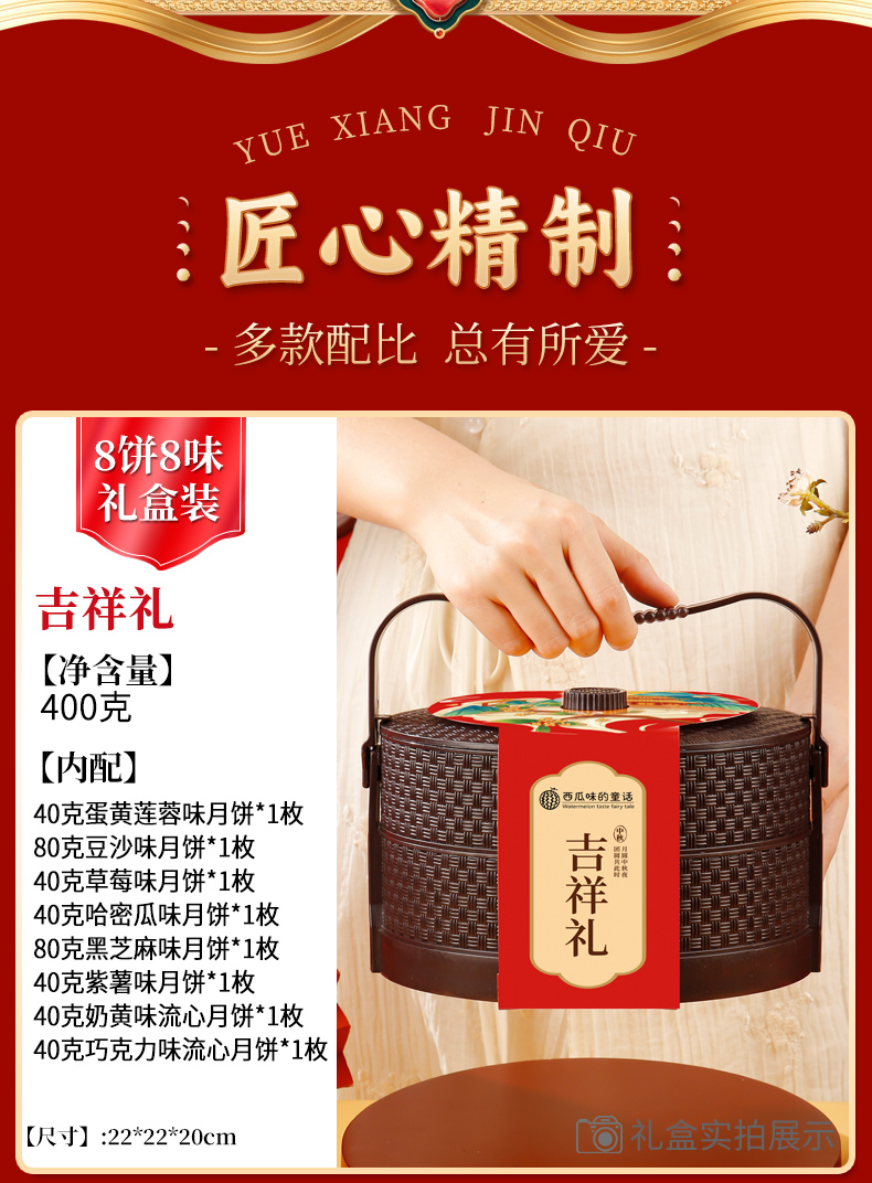 【西瓜味的童话】吉祥礼 月饼礼盒 (2层提篮 腰封款)8饼8味400克