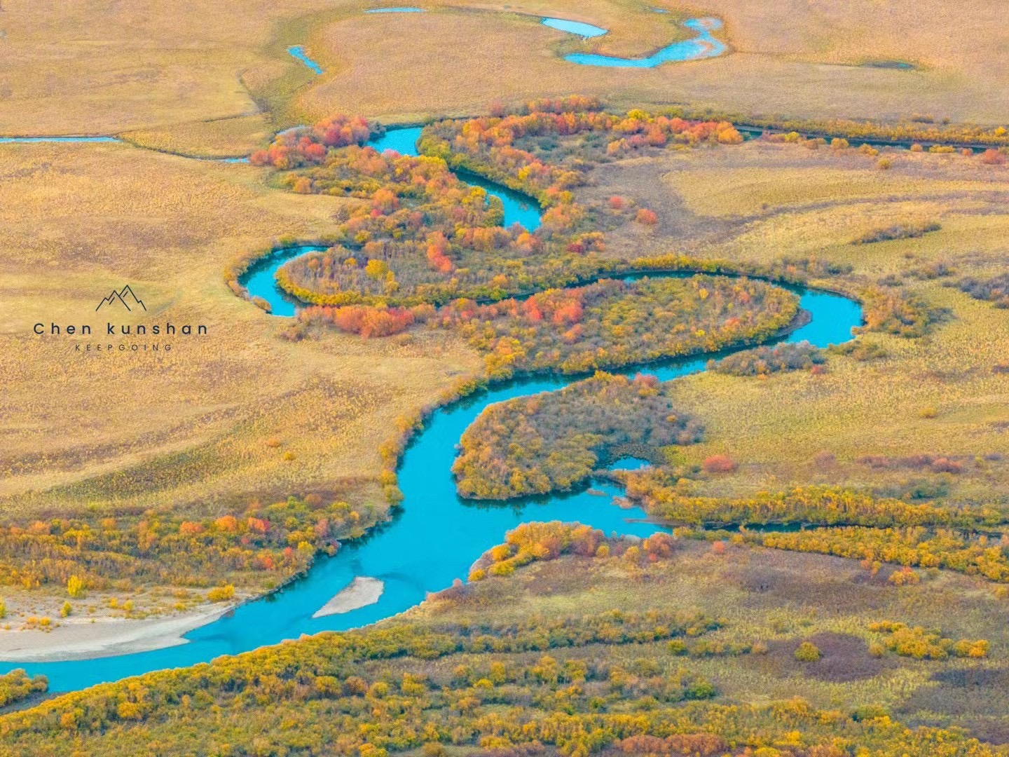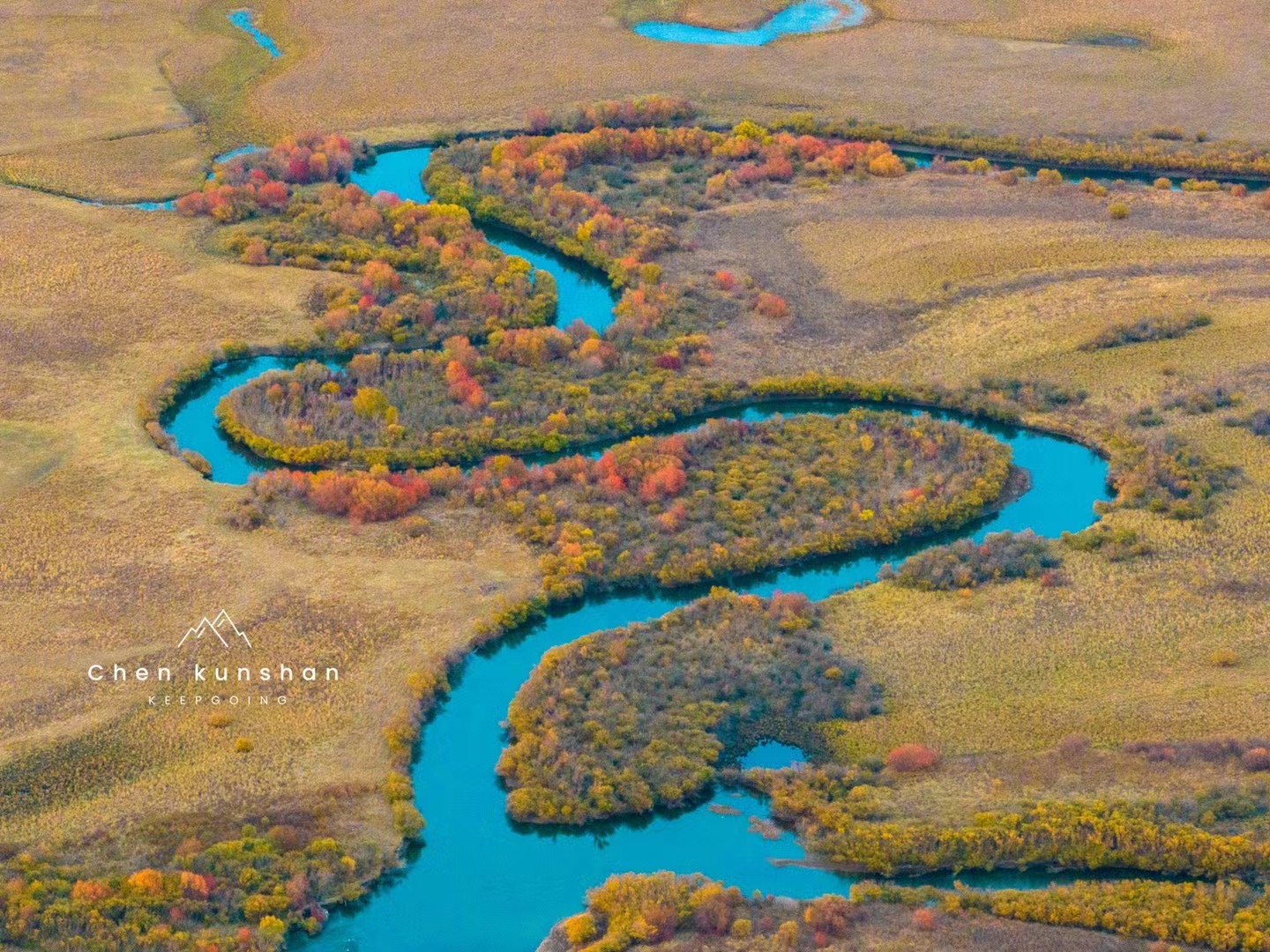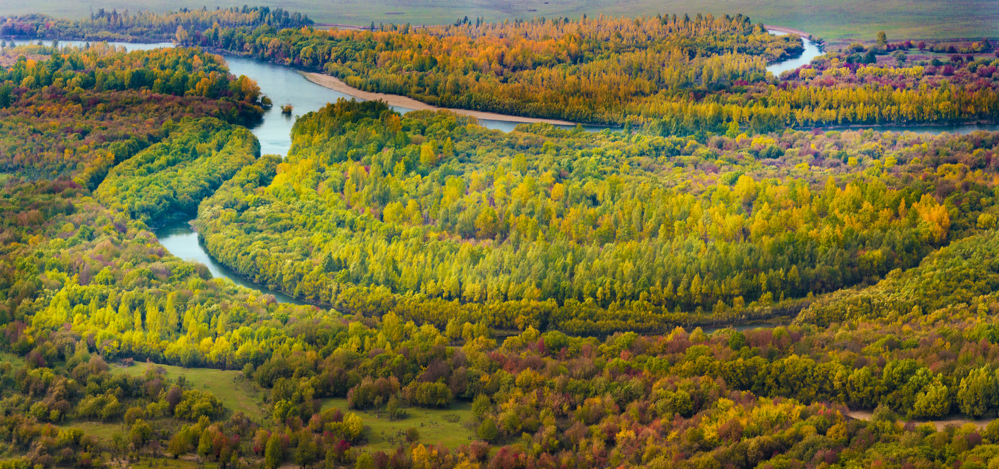 7.龙江第一湾:黑龙江绕岛形成的 Ω 形弯道,山水相依,秋日色彩层次丰富。