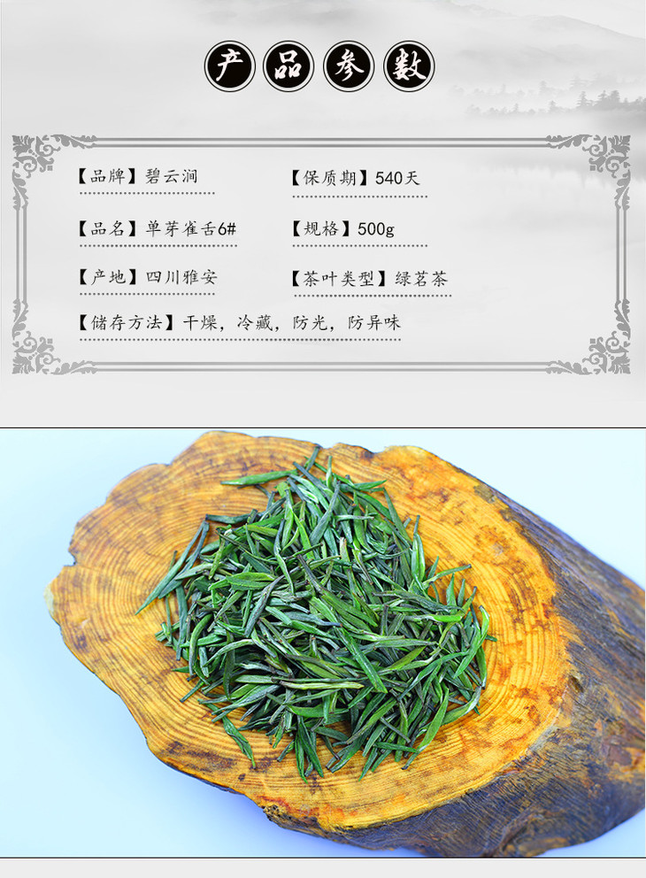 峨眉山云雾绿茶 特级青针 雨前嫩芽 竹叶型青茶 单芽雀舌