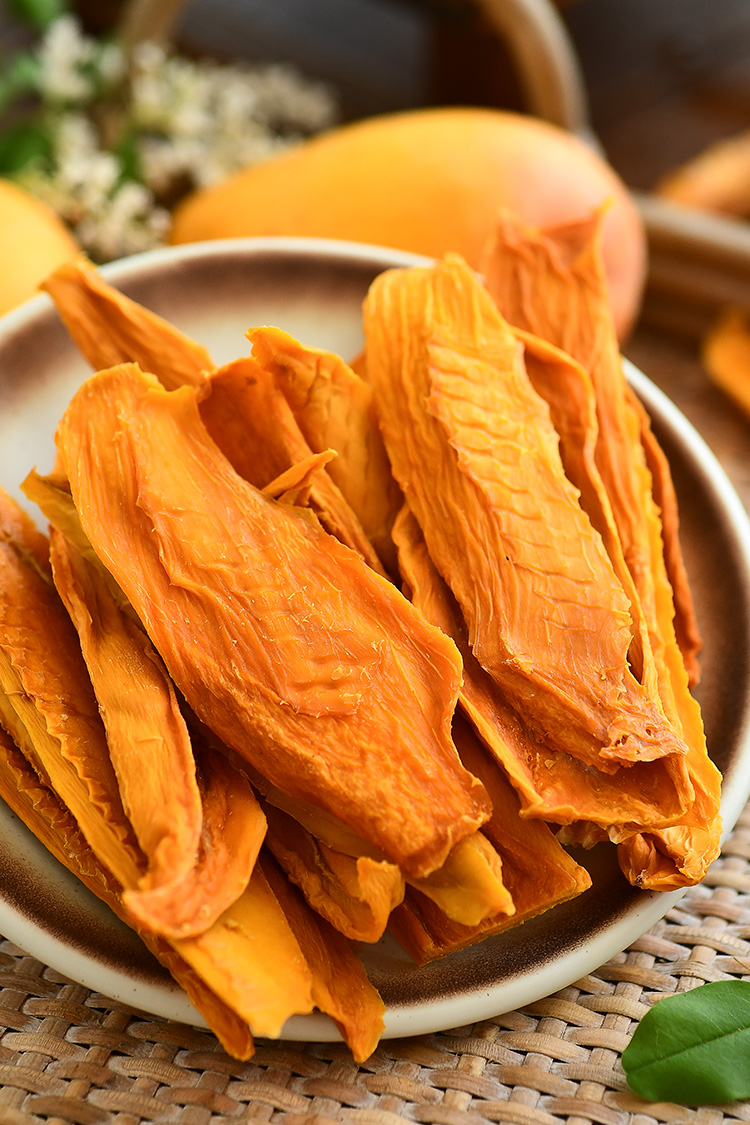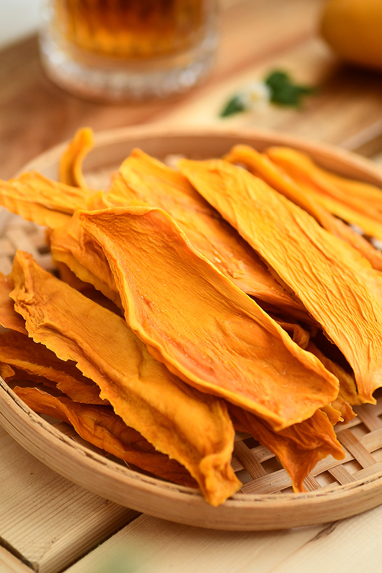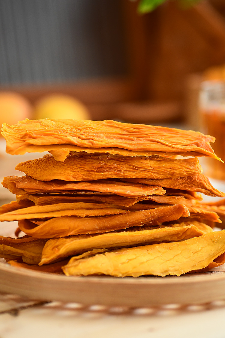 非糖渍。低温脱水慢烘工艺。让芒果肉慢慢控干水分,皱缩成软糯柔韧的芒果干。同时大程度保留原果风味和营养!