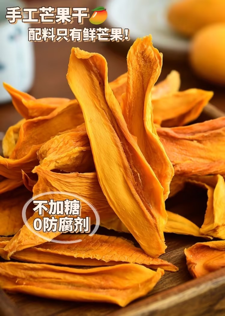 不得不夸❗不加糖的「手工芒果干」!配料只有鲜芒果🥭!「一方云拾」新品!当季自然熟品种!拒绝糖精、香精、色素、防腐剂!大大块厚切果干!酸甜软糯有嚼劲!芒果脑袋小心炫上瘾🥰