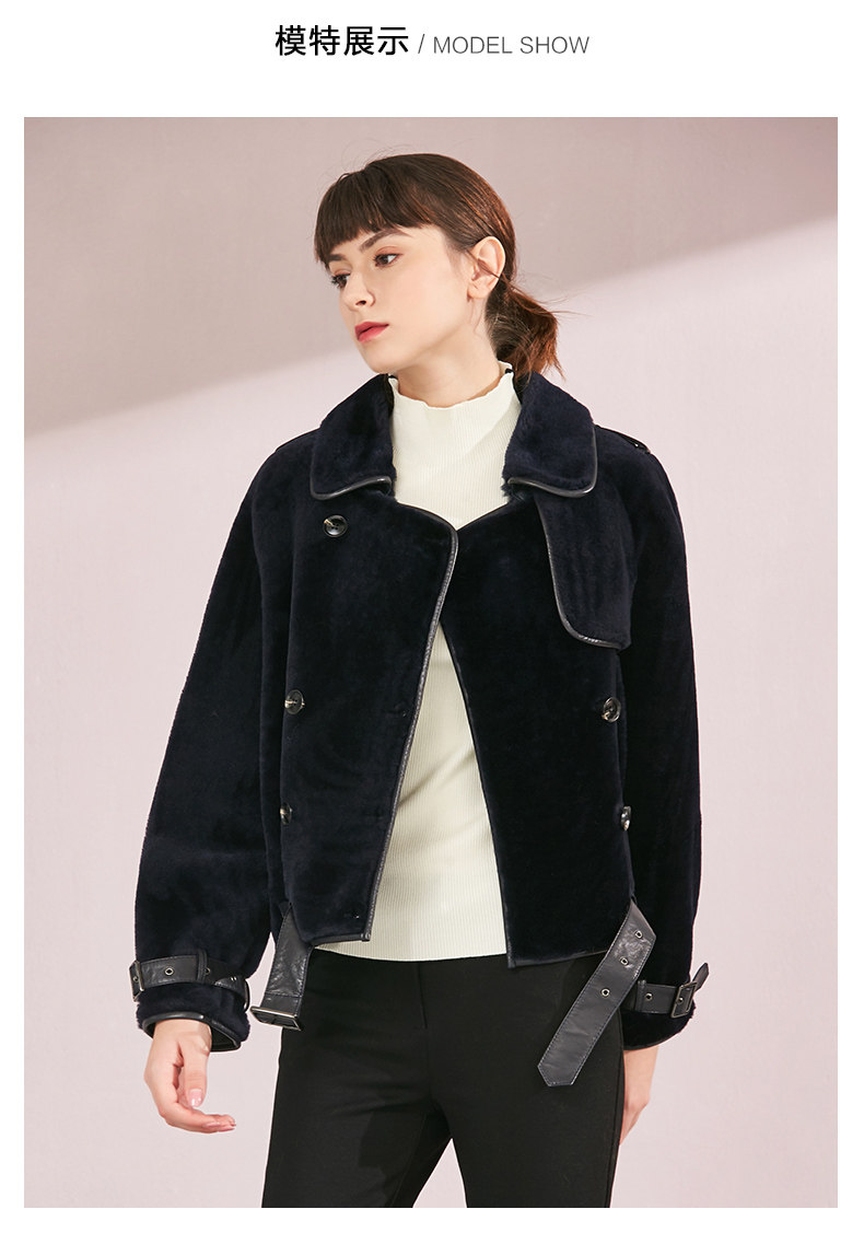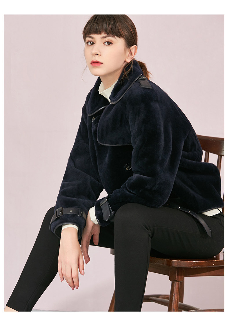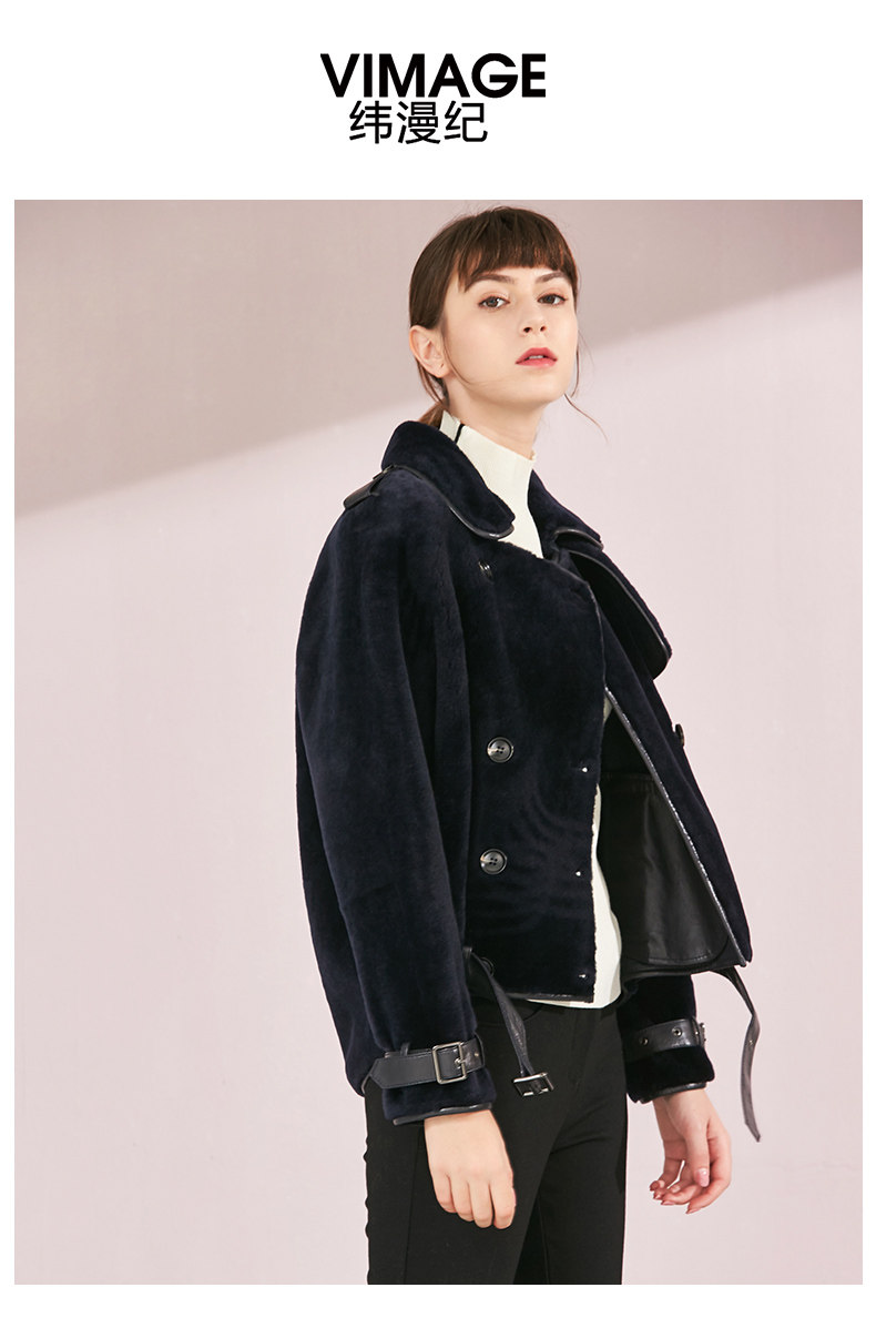 VIMAGE纬漫纪品牌女装冬季新款时尚方领绵羊皮保暖皮衣女V1093601