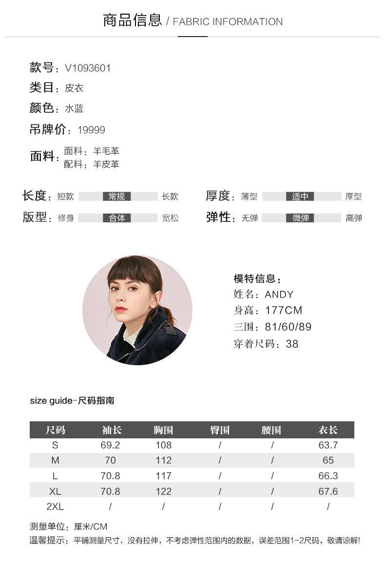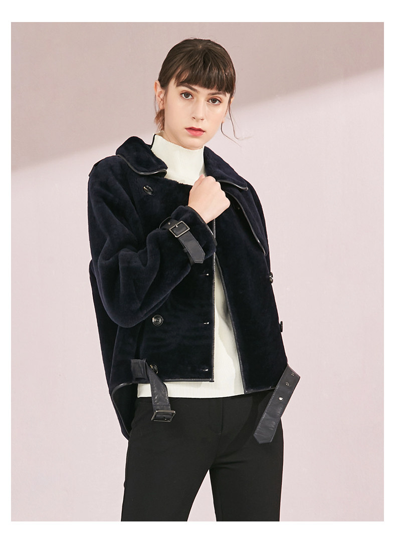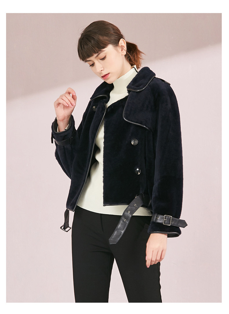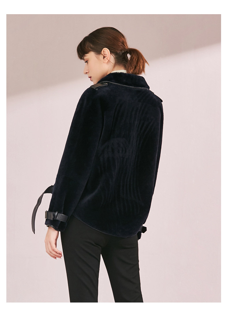 VIMAGE纬漫纪品牌女装冬季新款时尚方领绵羊皮保暖皮衣女V1093601