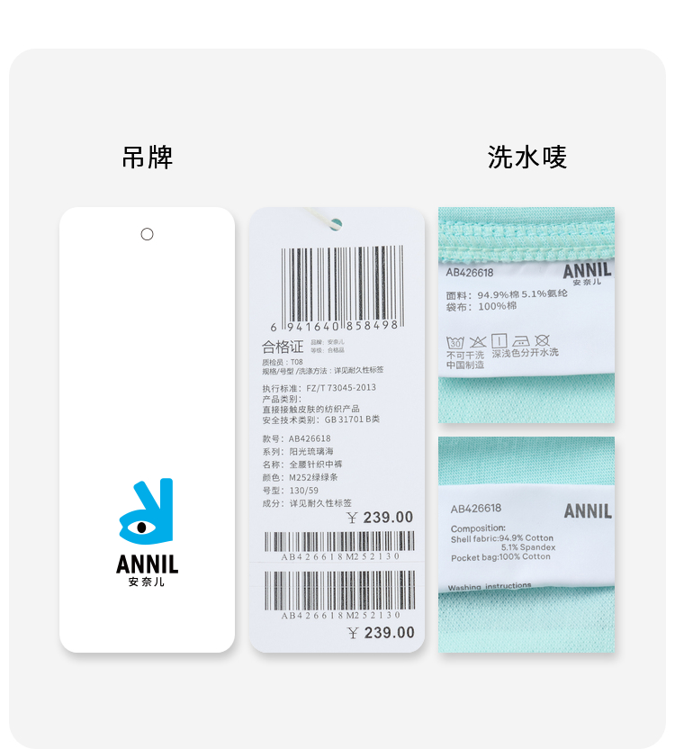 男童清凉透气中裤运动裤裤子新款安奈儿童装实体店同款AB426618
