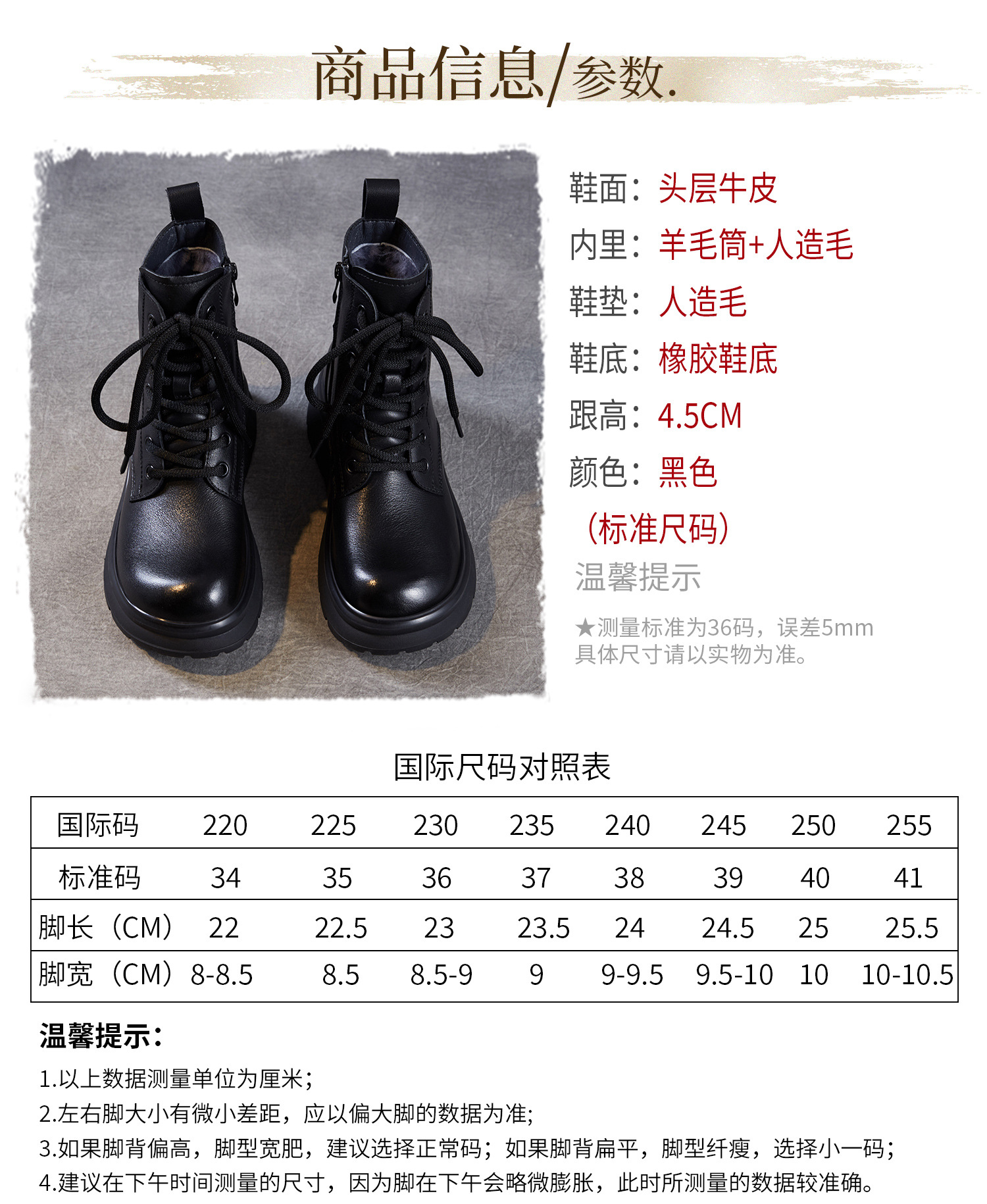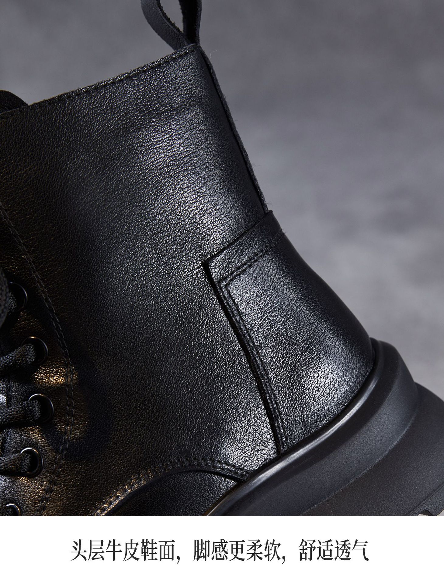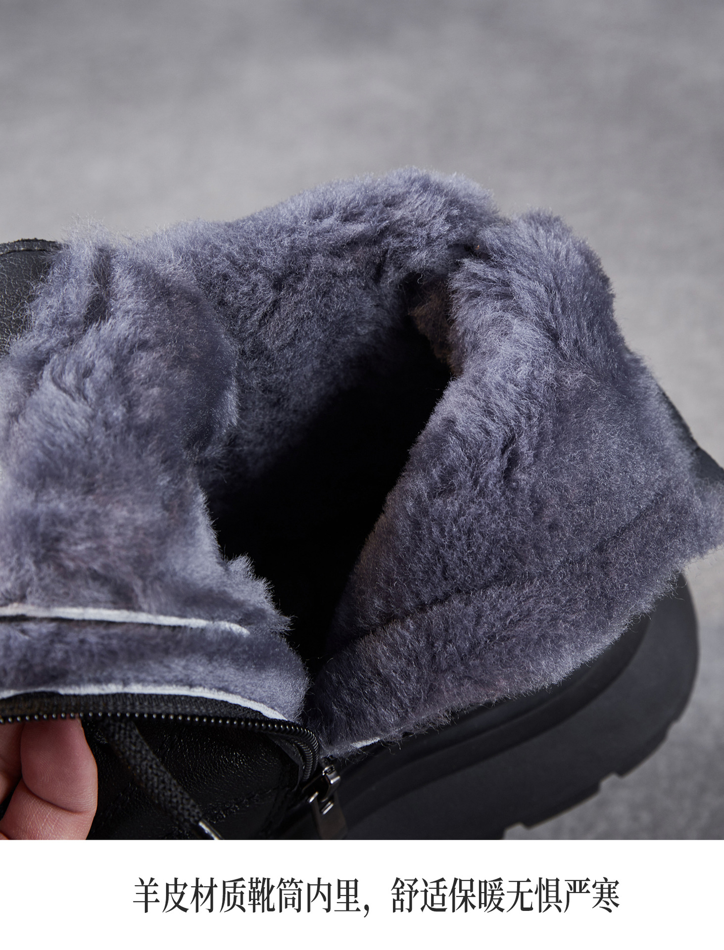 羊毛加绒厚底保暖马丁靴,英伦真皮短靴复古牛皮棉靴ZM258765
