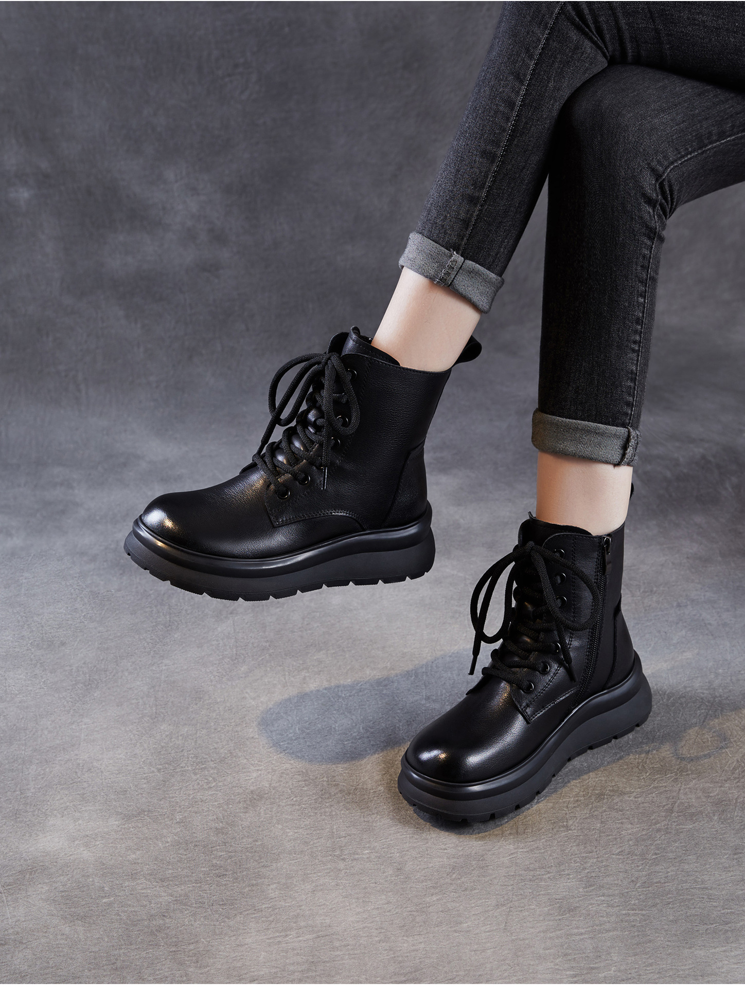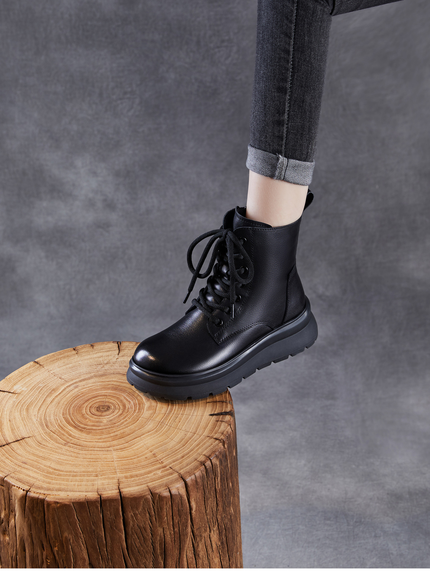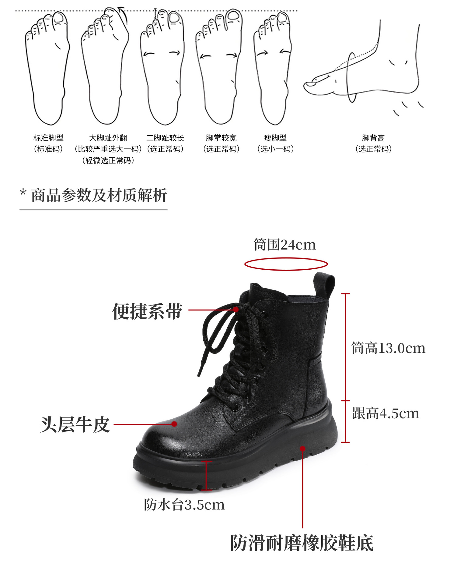 羊毛加绒厚底保暖马丁靴,英伦真皮短靴复古牛皮棉靴ZM258765