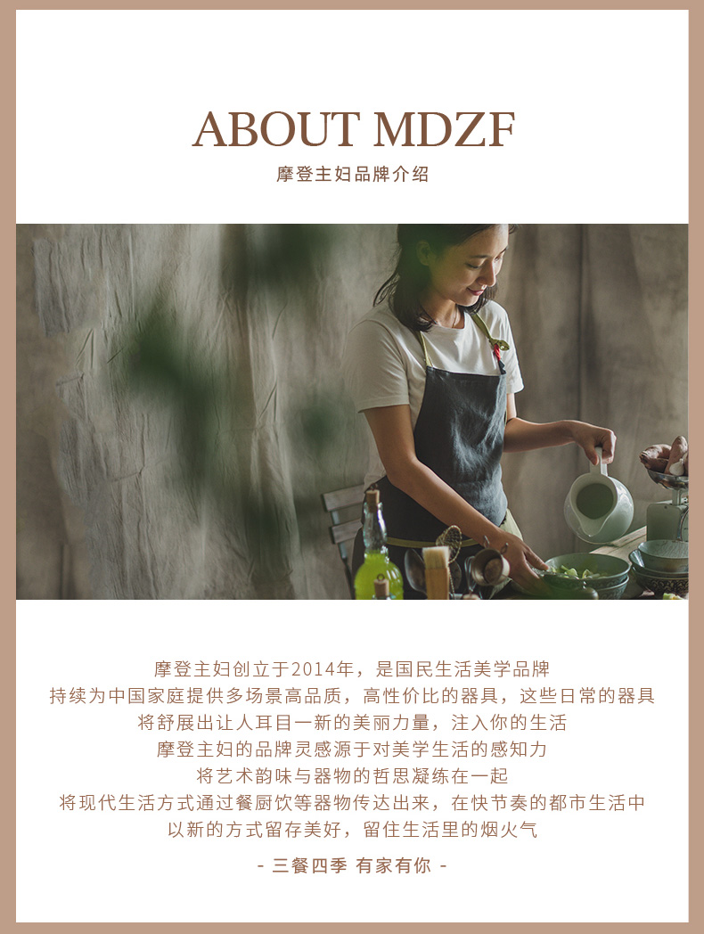 - 摩登主妇的创始人娜娜,是一个普通的80后妈妈,因为一个简单而执着的想法,要让“中国制造”的优质商品走进国内主妇们的生活,摩登主妇的品牌页由此而来。
