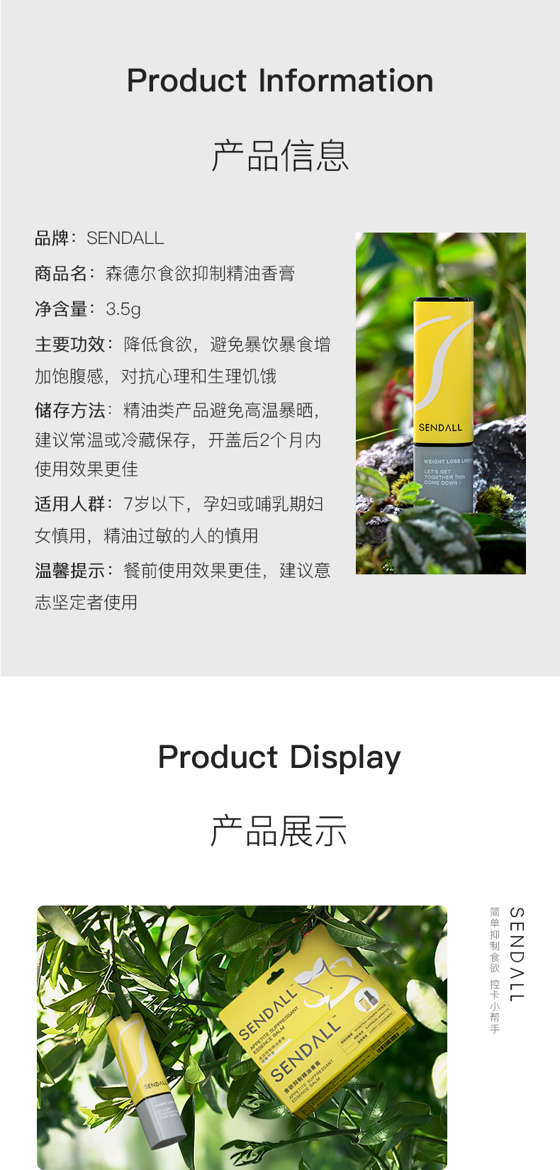 【瘦瘦膏,第3支0元】SENDALL森德尔节食香膏食欲抑制精油涂抹香膏